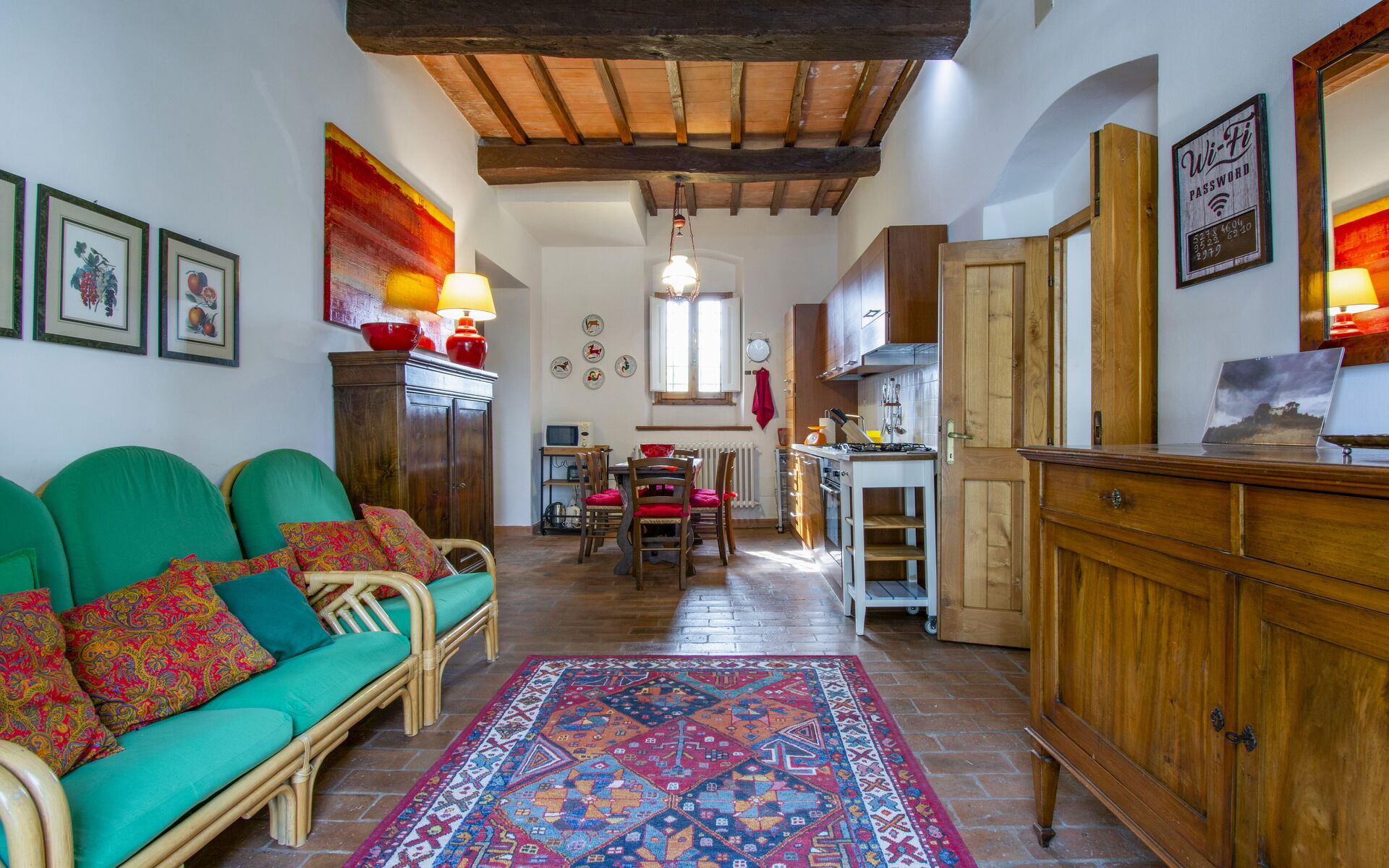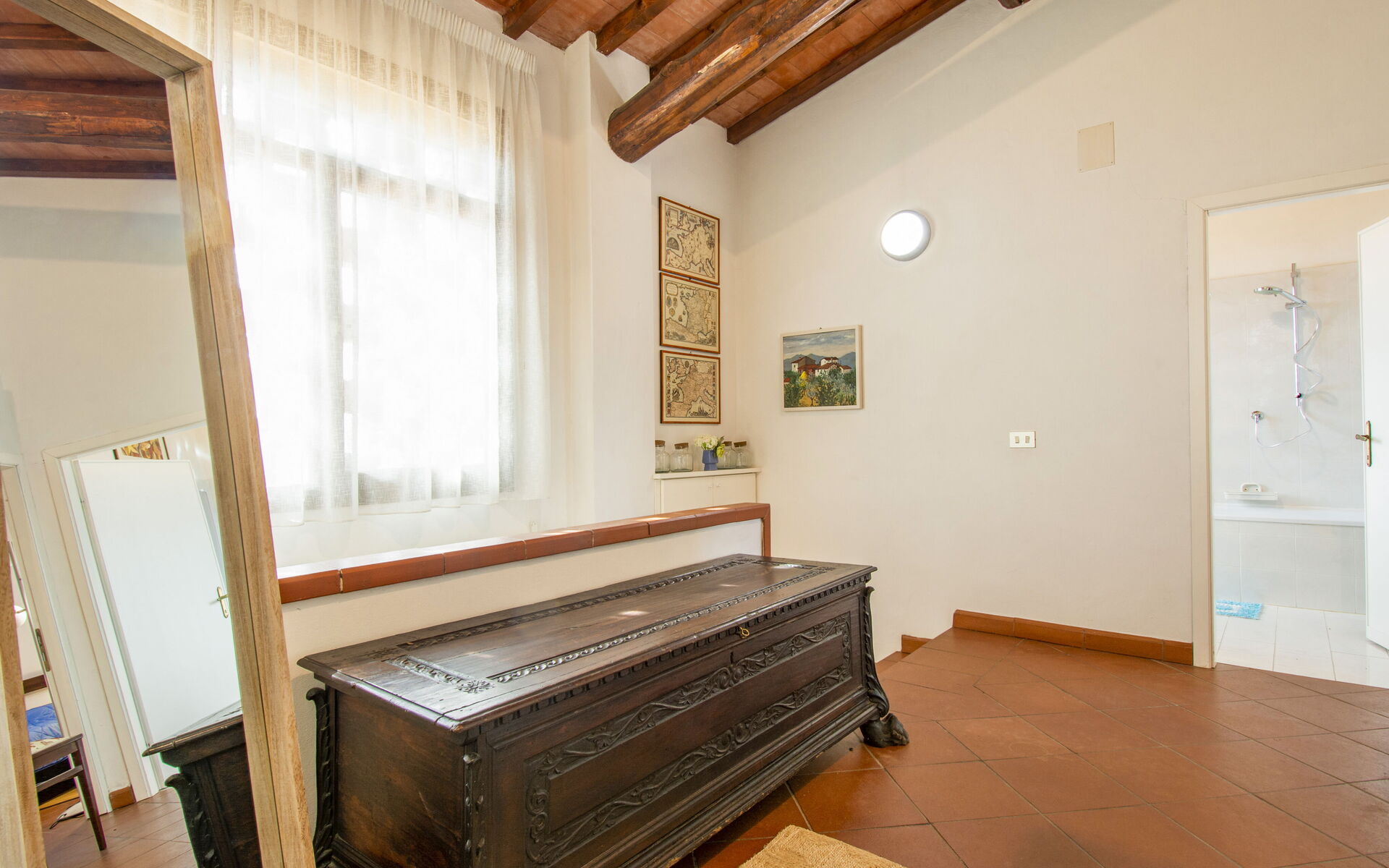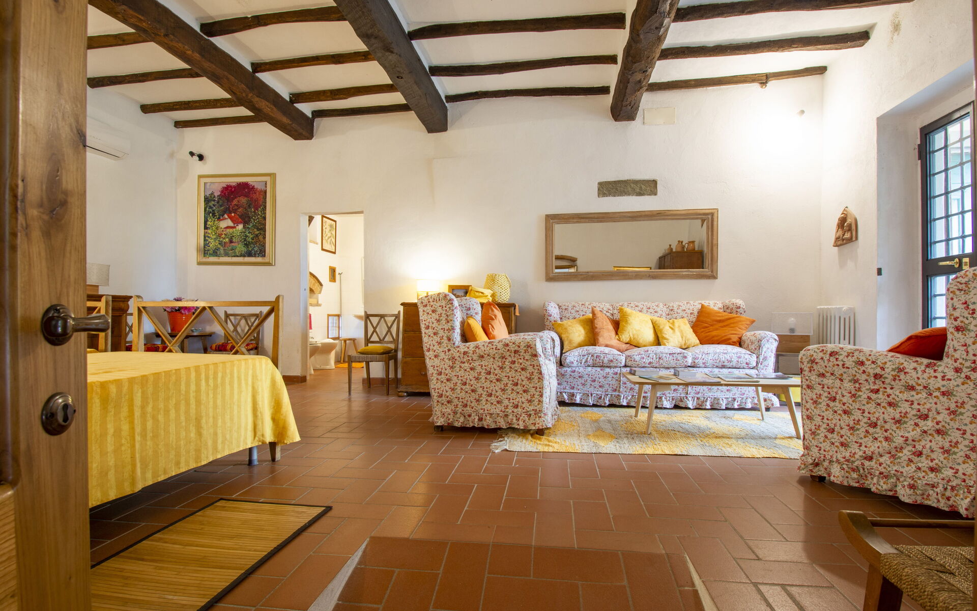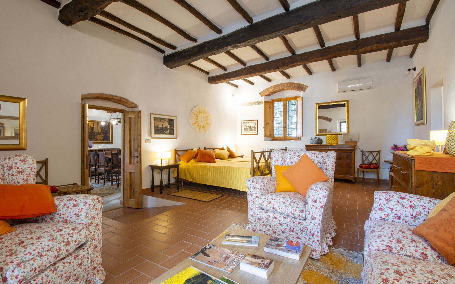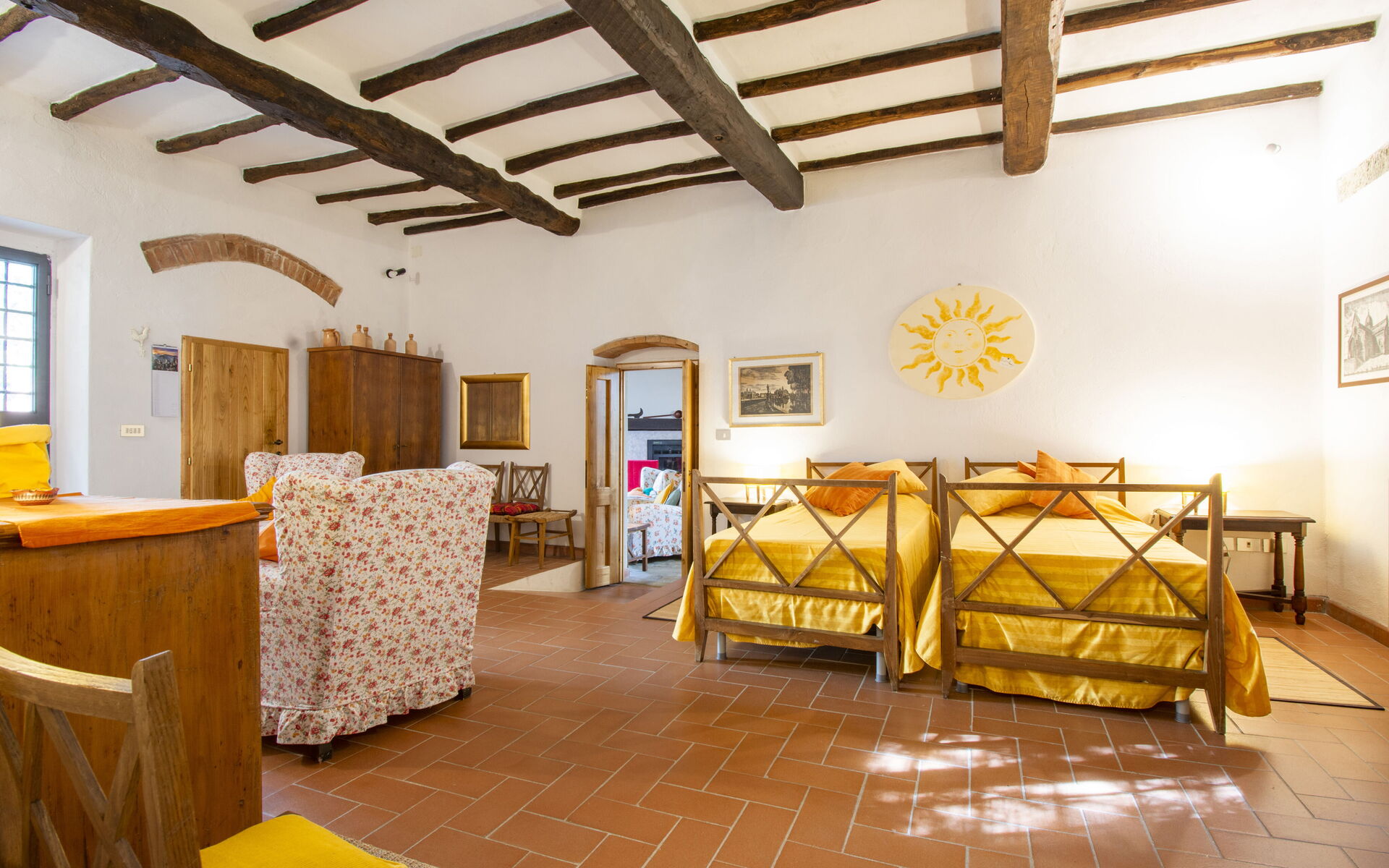 Designed for comfort and authentic Italian living, the villa accommodates up to 10 guests across multiple floors, offering generous living spaces, traditional Tuscan interiors with terracotta floors and wooden beam ceilings, and a warm, welcoming atmosphere. Whether you're traveling with family or a group of friends, the layout ensures both privacy and shared spaces for memorable moments.