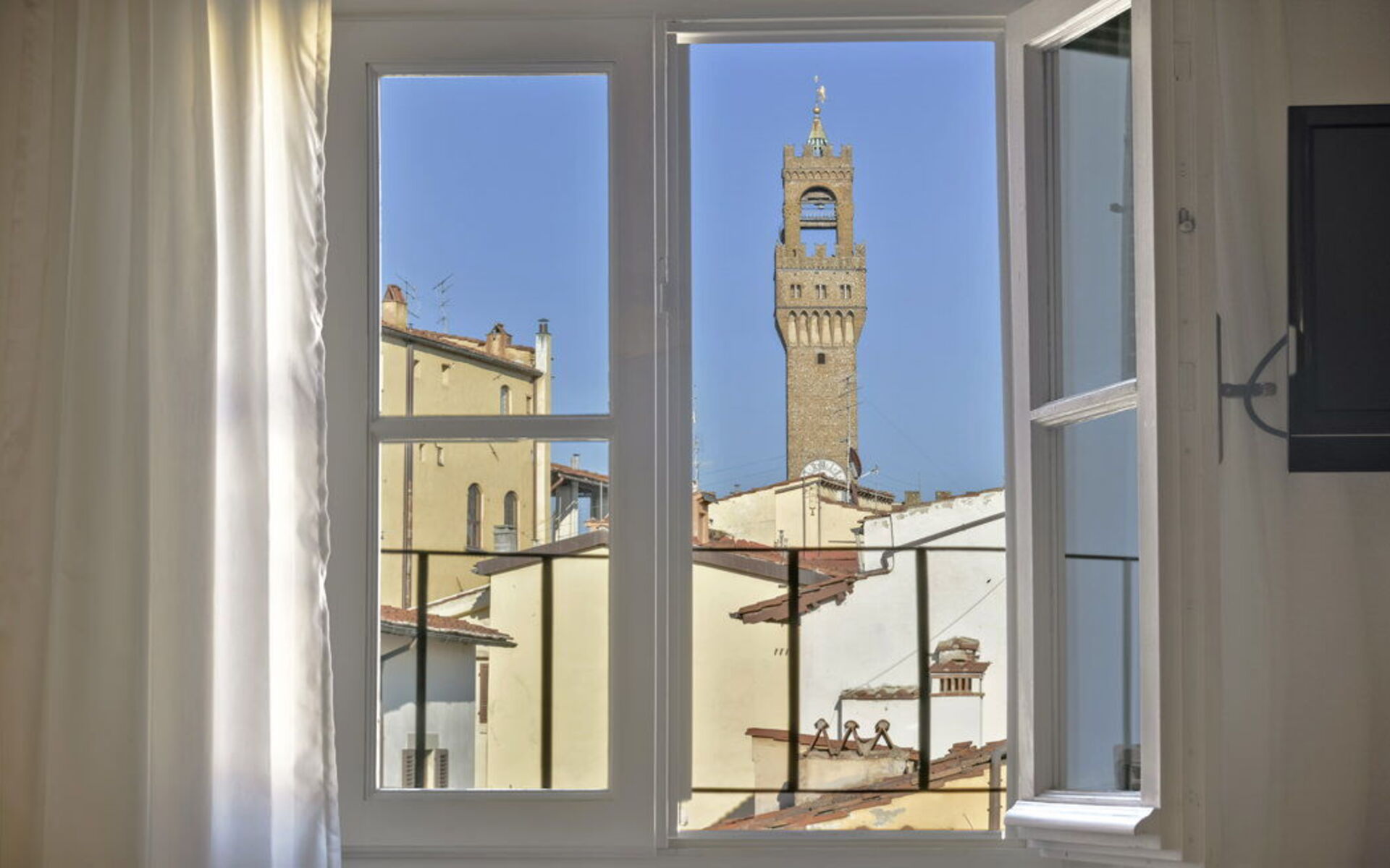 Windows offer beautiful views of the Arnolfo Tower, adding a unique touch to your stay in Florence.