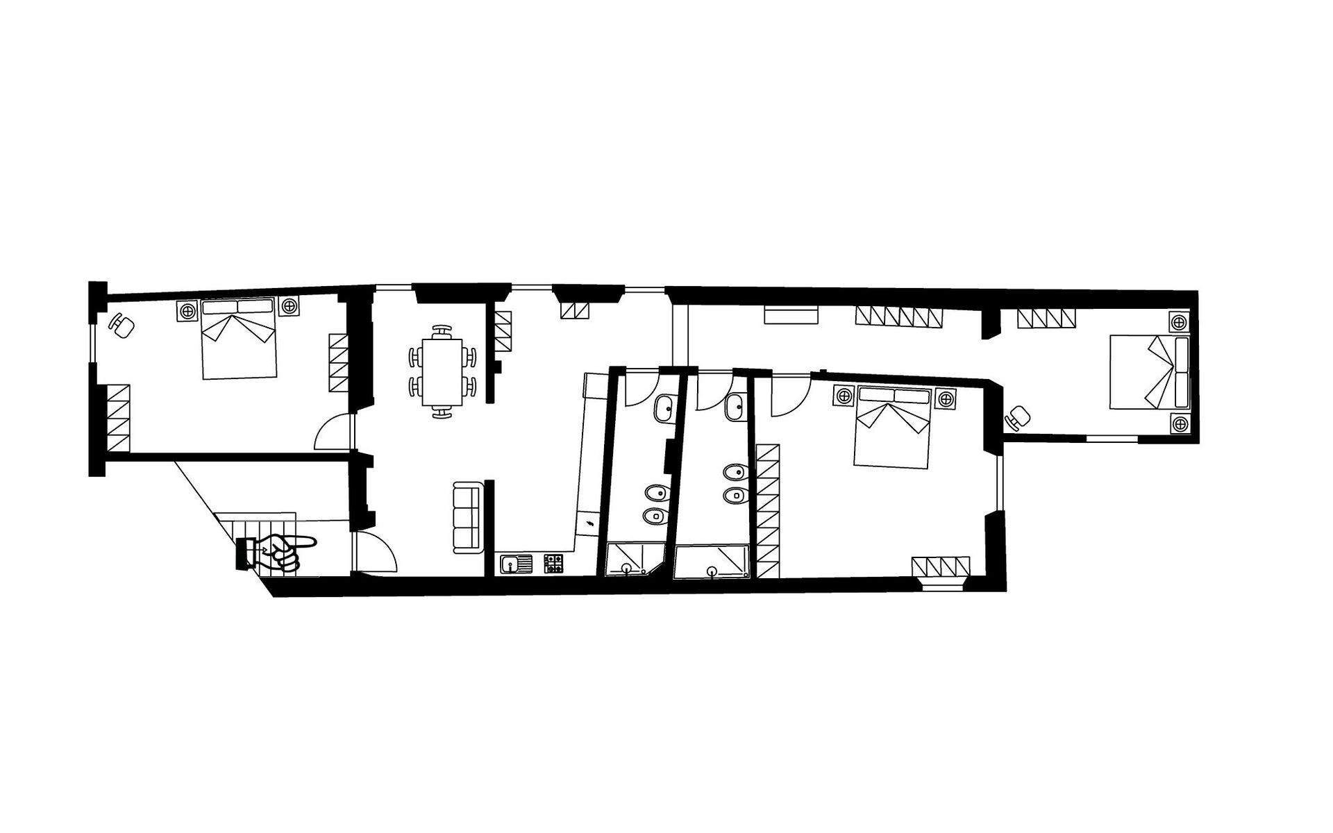 It's very convenient appartment for a larger group. Three bedrooms and two bathrooms! Wonderfull! It was very clean. and the check-in and check-out procedure was very easy. The only minor detail, were the chairs around the table; they didn't sit well ;-)