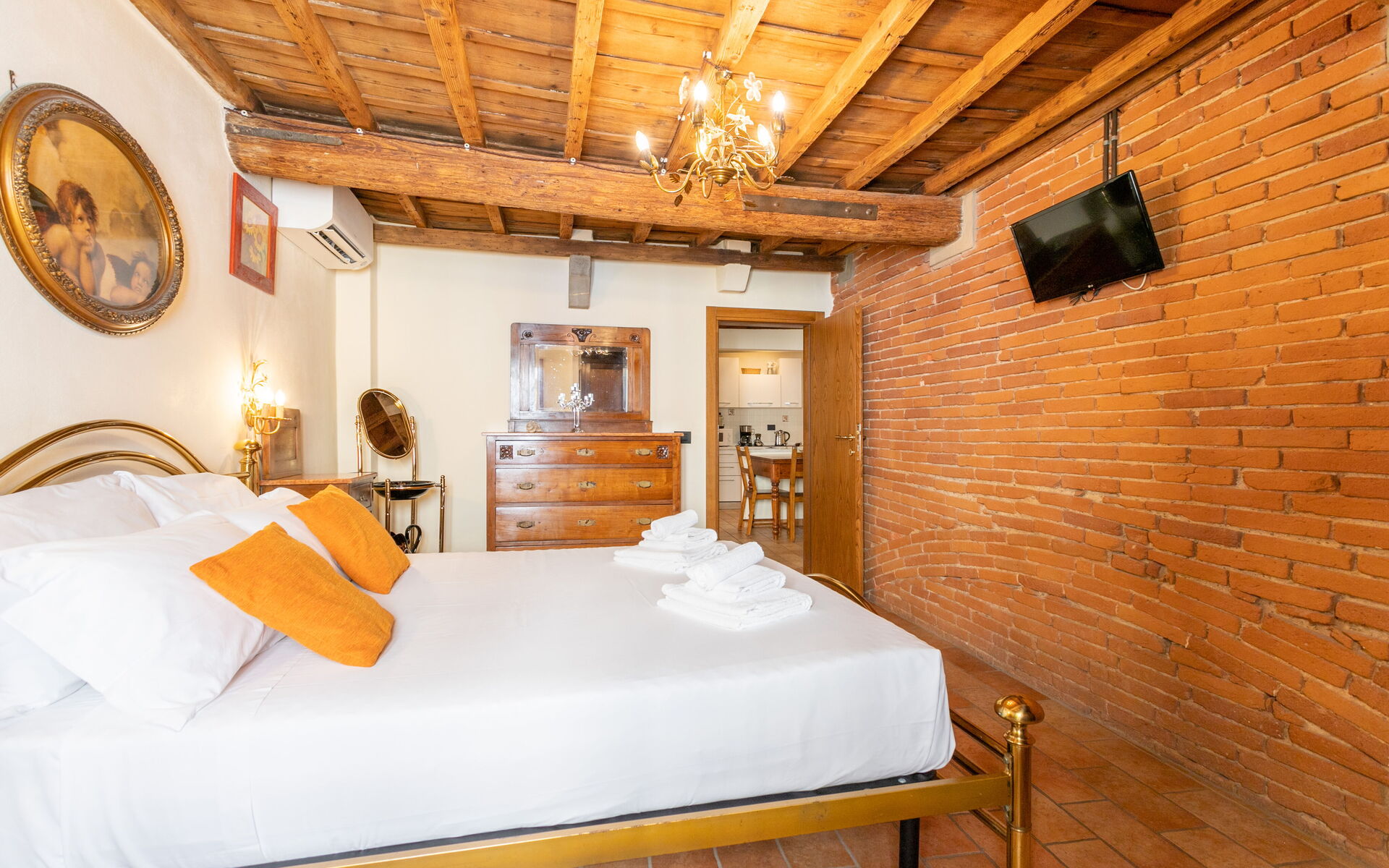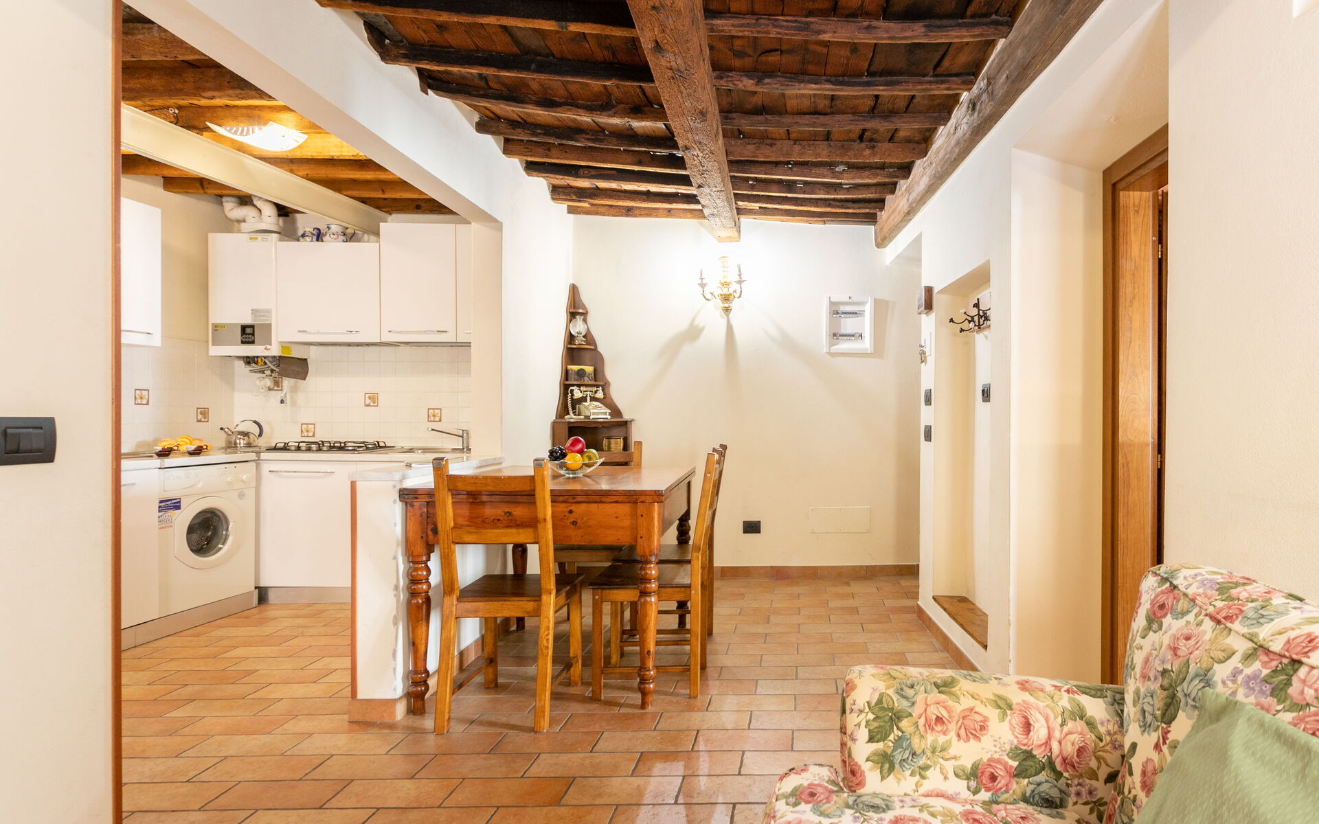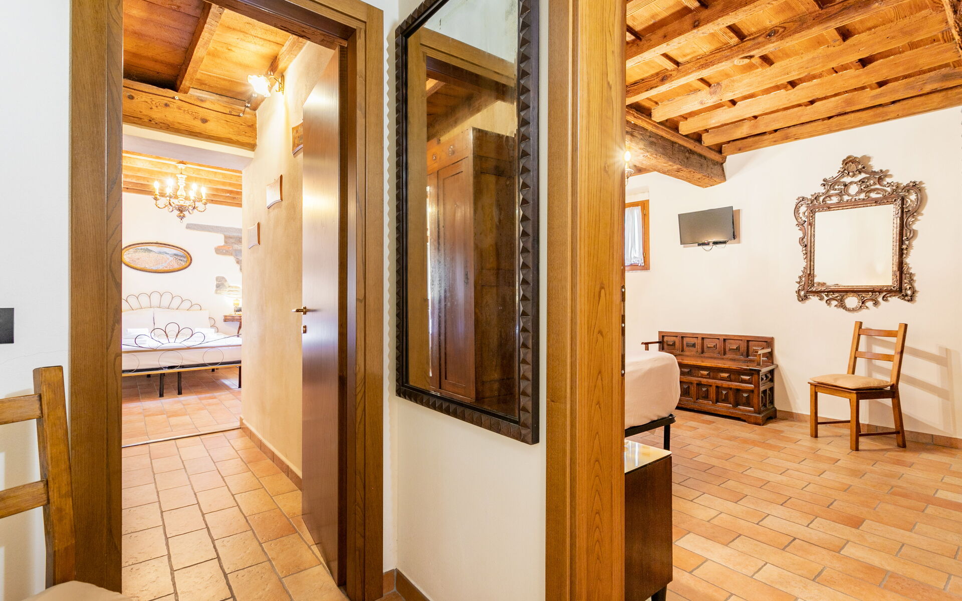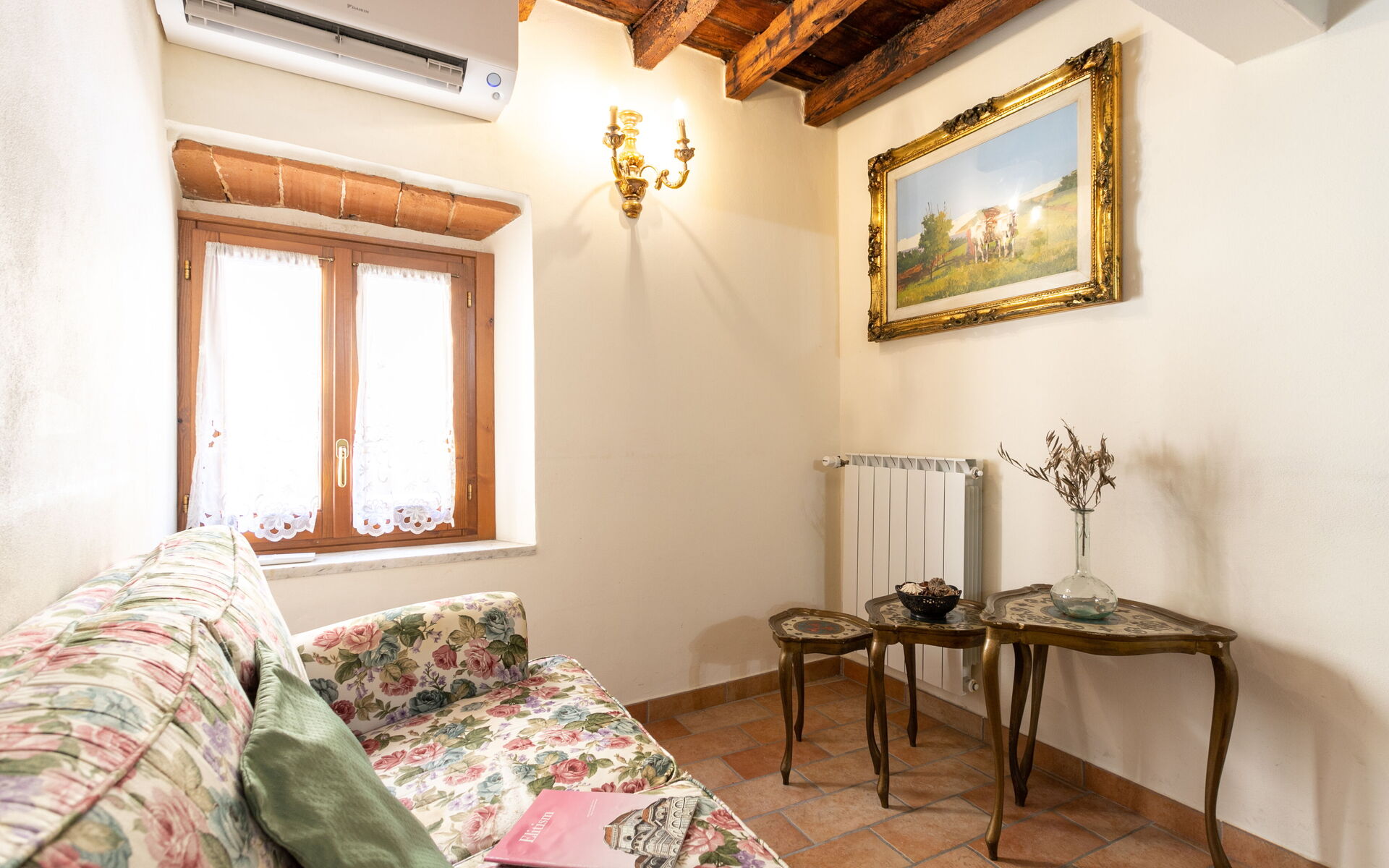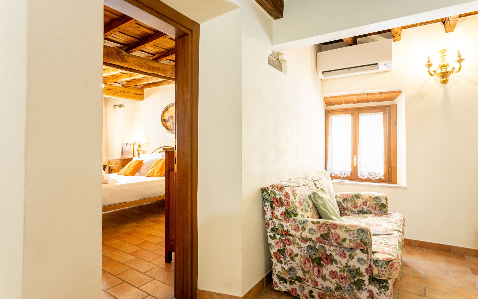 The apartment accommodates up to 6 guests and features 3 double bedrooms and 2 full bathrooms with shower. It is beautifully furnished in an 19th-century style, with exposed wooden ceiling beams and traditional terracotta floors, creating a warm and elegant atmosphere.