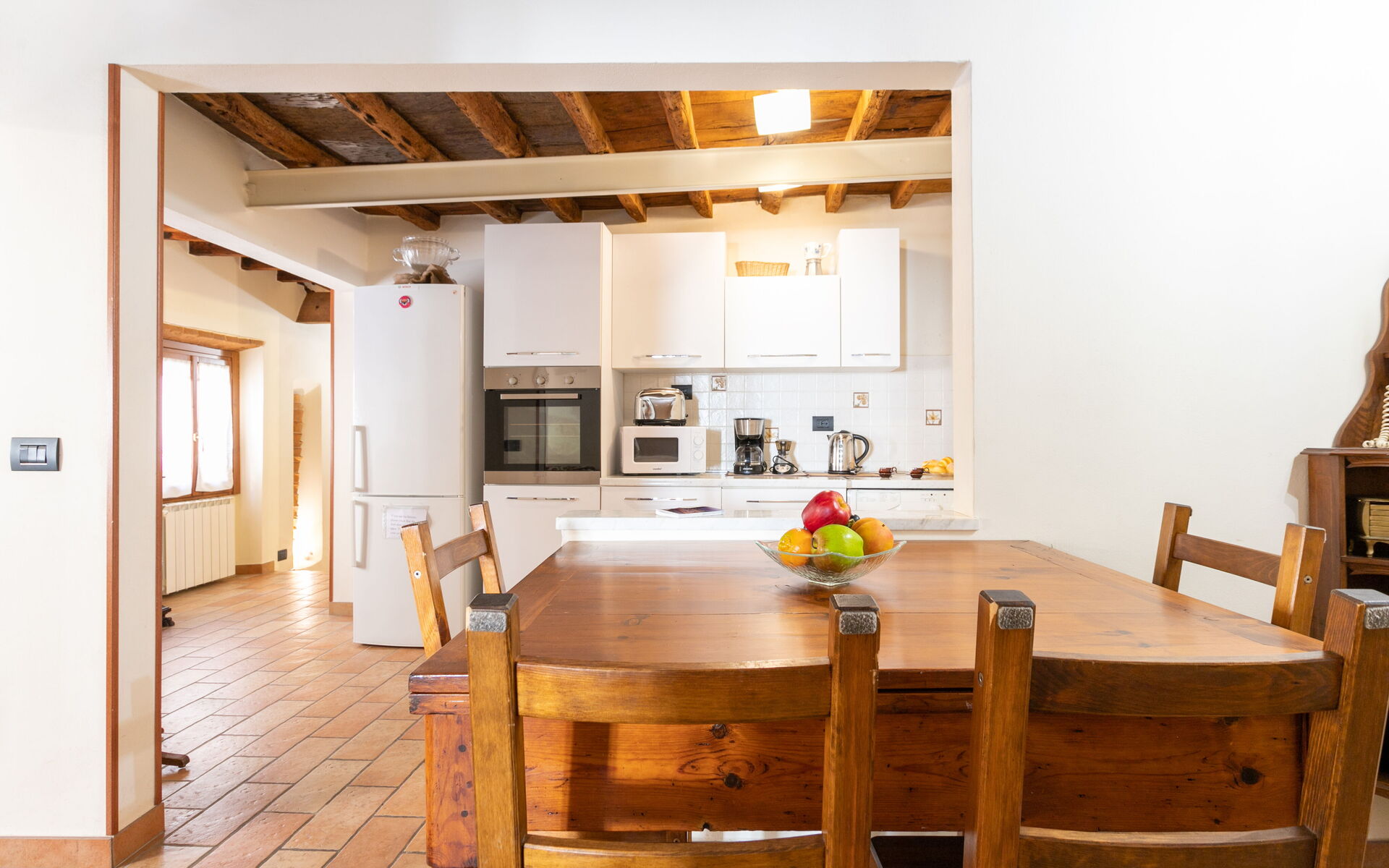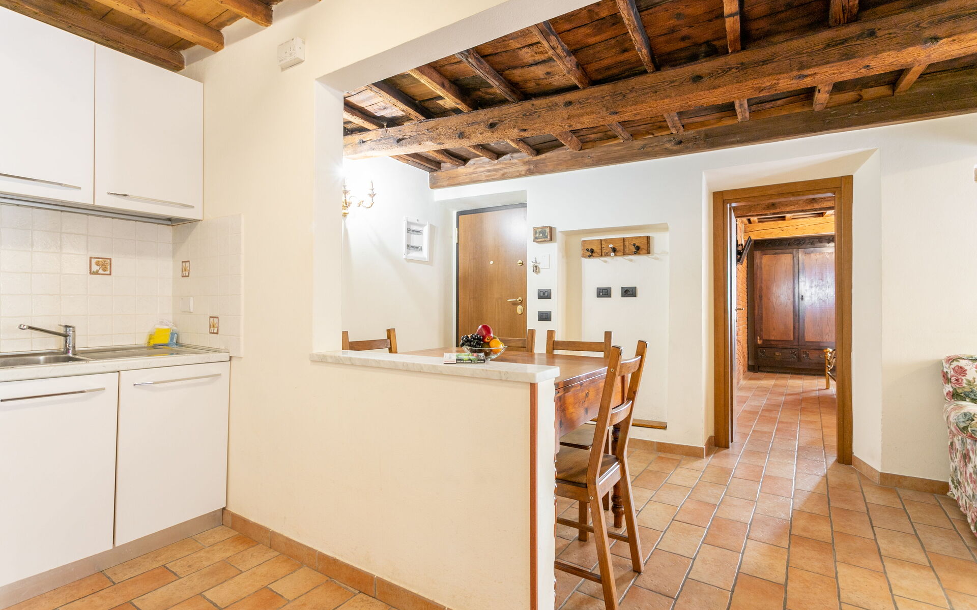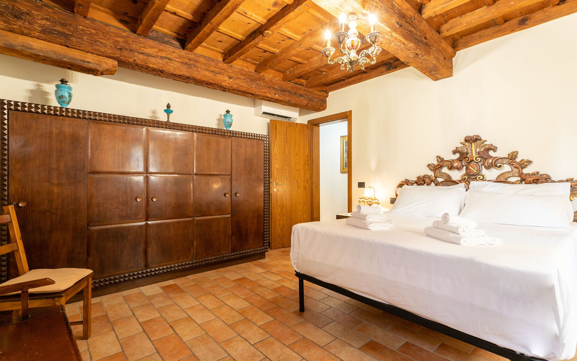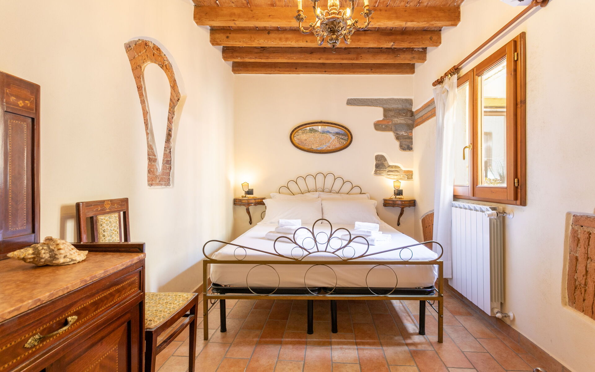 The apartment accommodates up to 6 guests and features 3 double bedrooms and 2 full bathrooms with shower. It is beautifully furnished in an 19th-century style, with exposed wooden ceiling beams and traditional terracotta floors, creating a warm and elegant atmosphere.