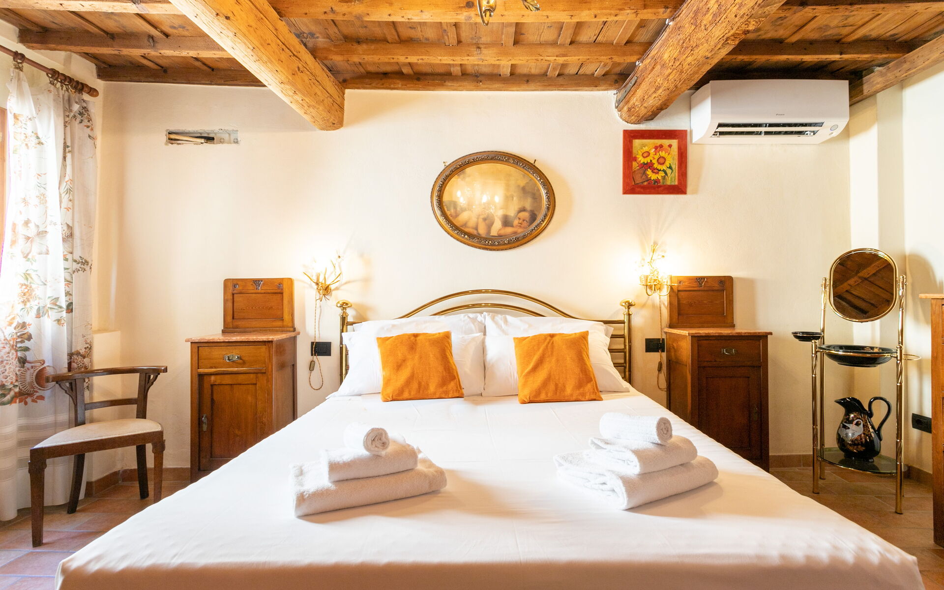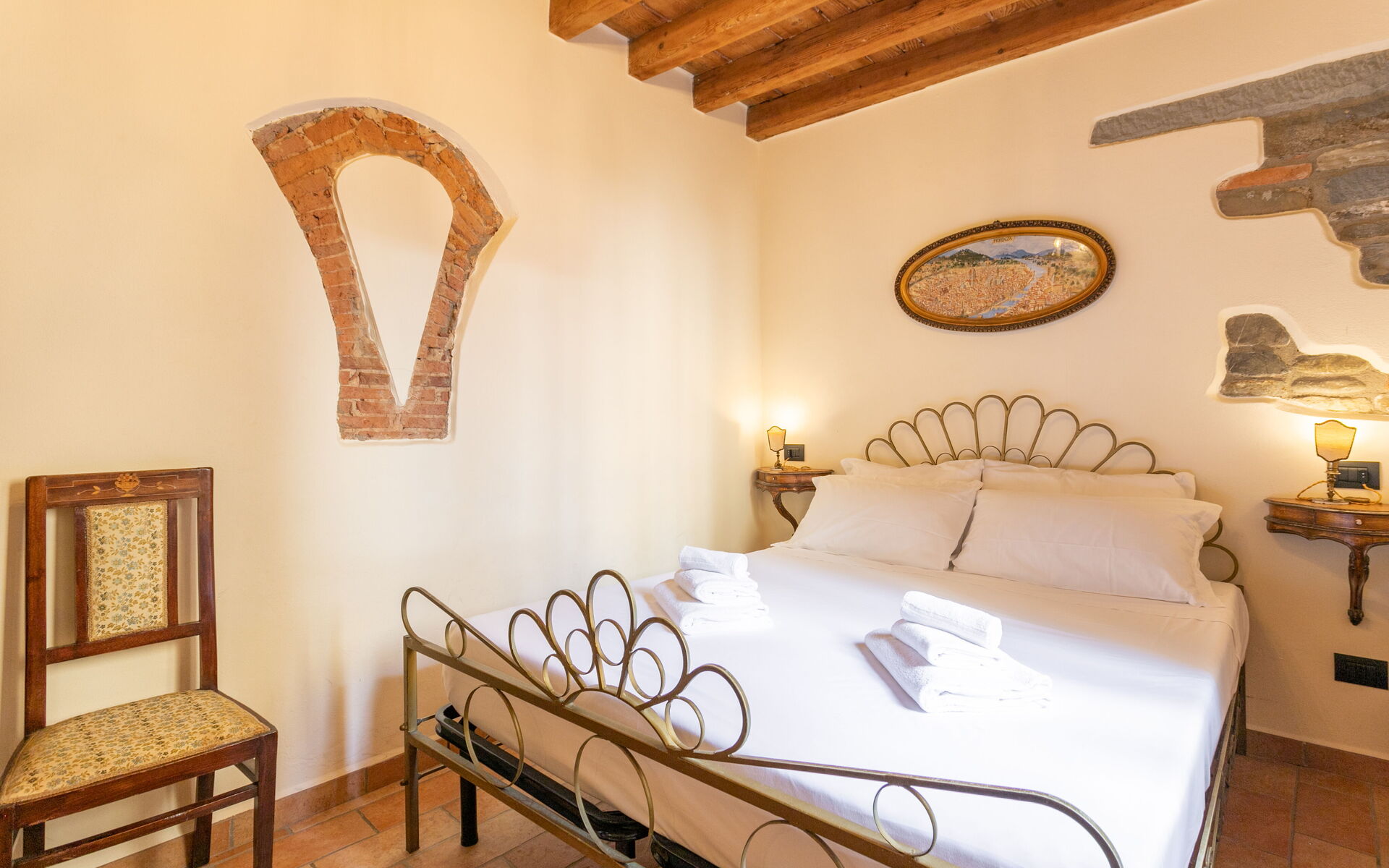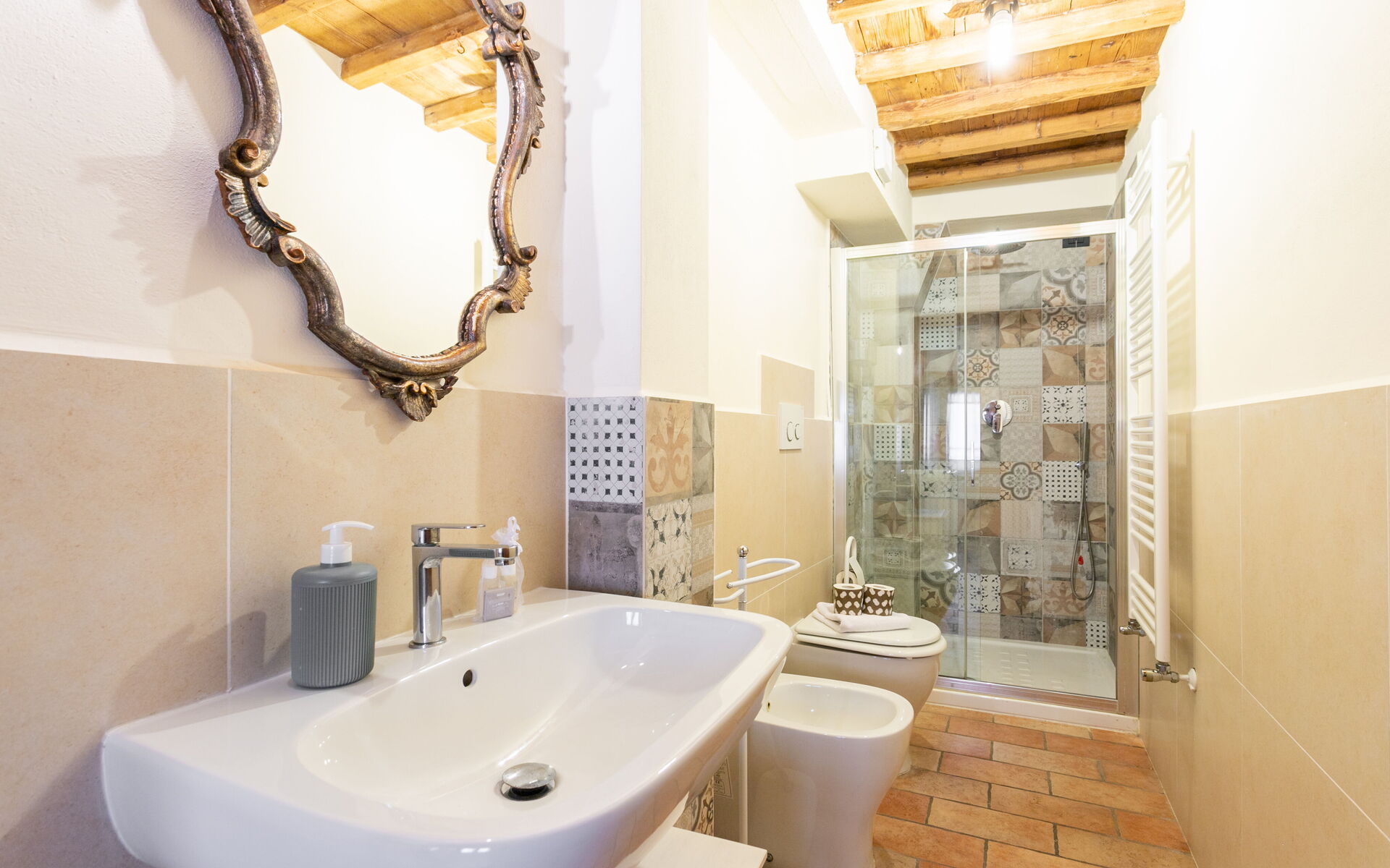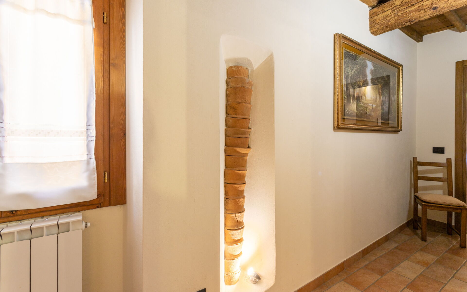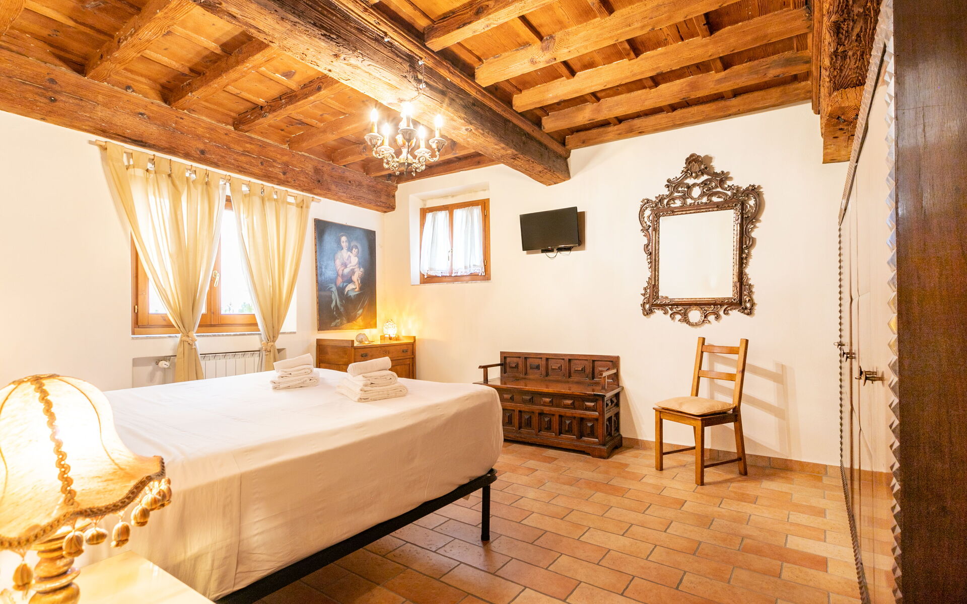 The apartment accommodates up to 6 guests and features 3 double bedrooms and 2 full bathrooms with shower. It is beautifully furnished in an 19th-century style, with exposed wooden ceiling beams and traditional terracotta floors, creating a warm and elegant atmosphere.