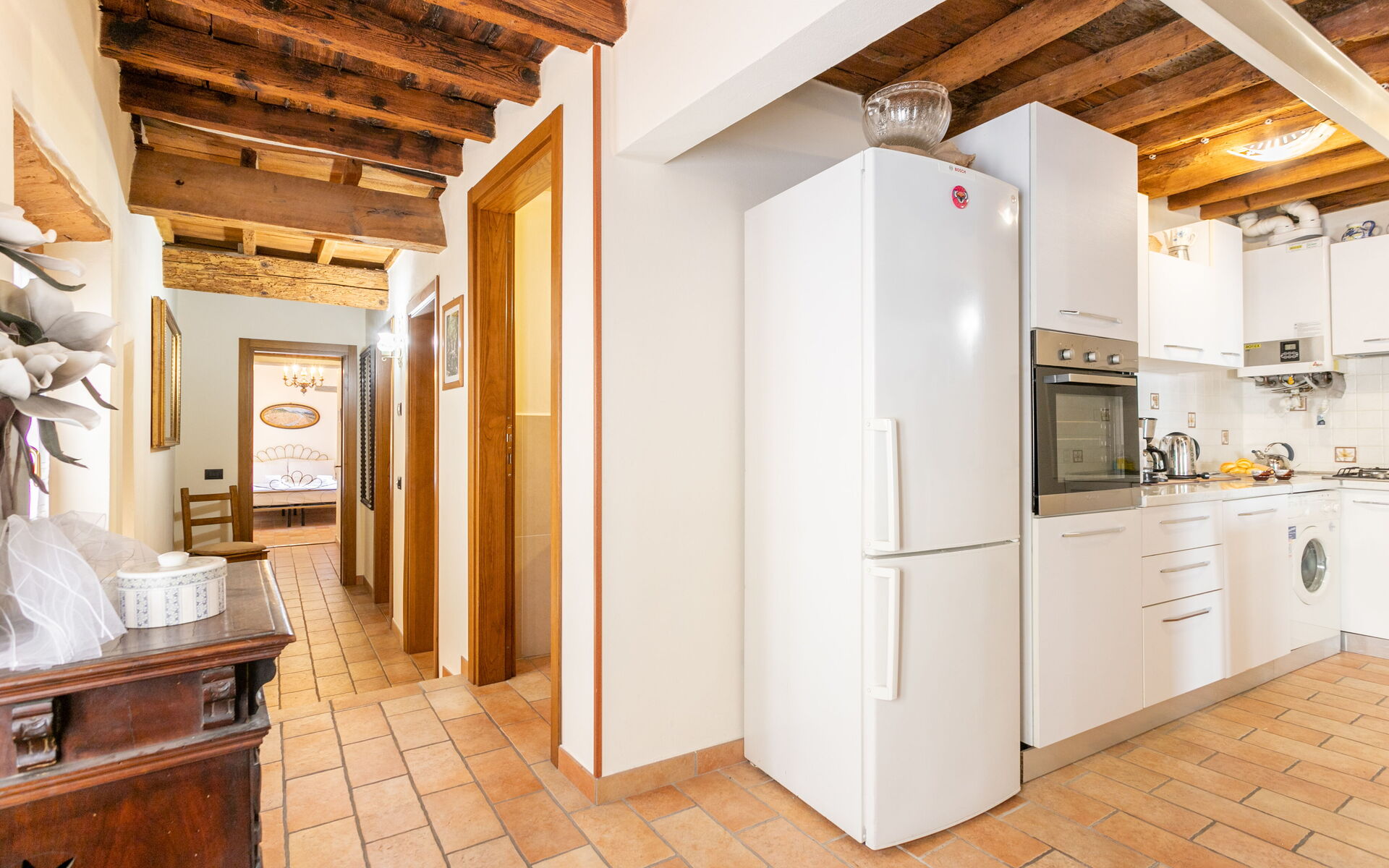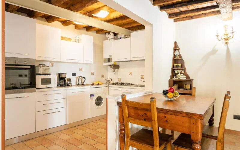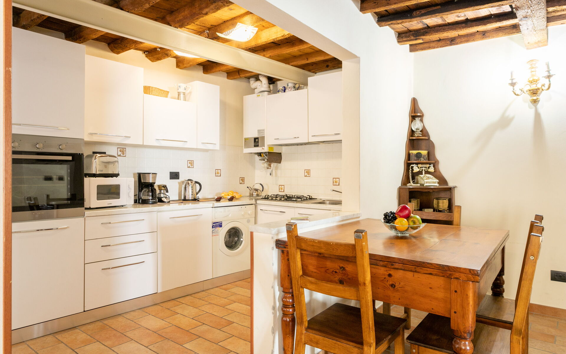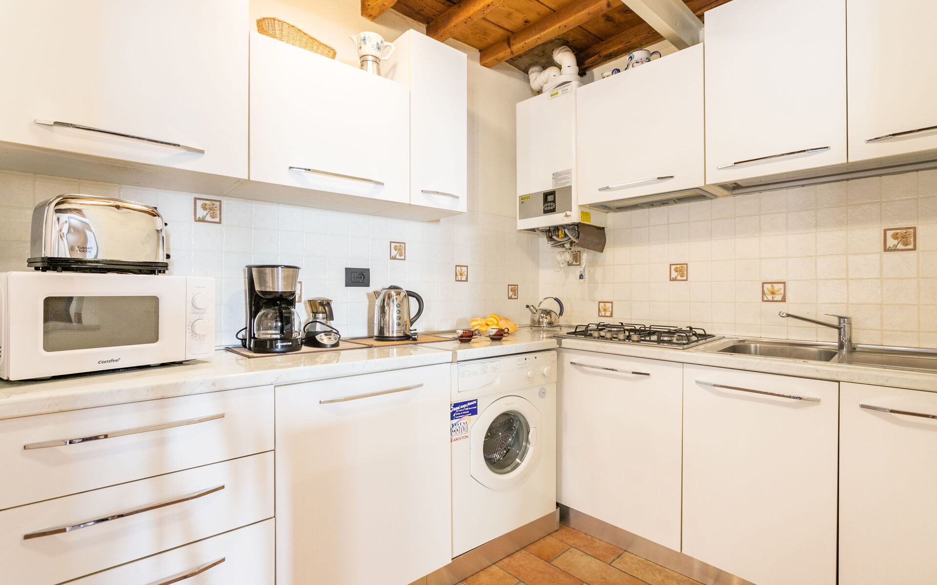 The kitchen is tiny but was serviceable for our needs, which were minimal. We were in Florence, after all. No need to cook when some of the best food in the world is available. The washer worked well. American tourists need to be aware that cycles on Italian washers take quite a long time, so plan accordingly. There are 2 drying racks in the apartment and we also used the pulley clothesline out the window.
