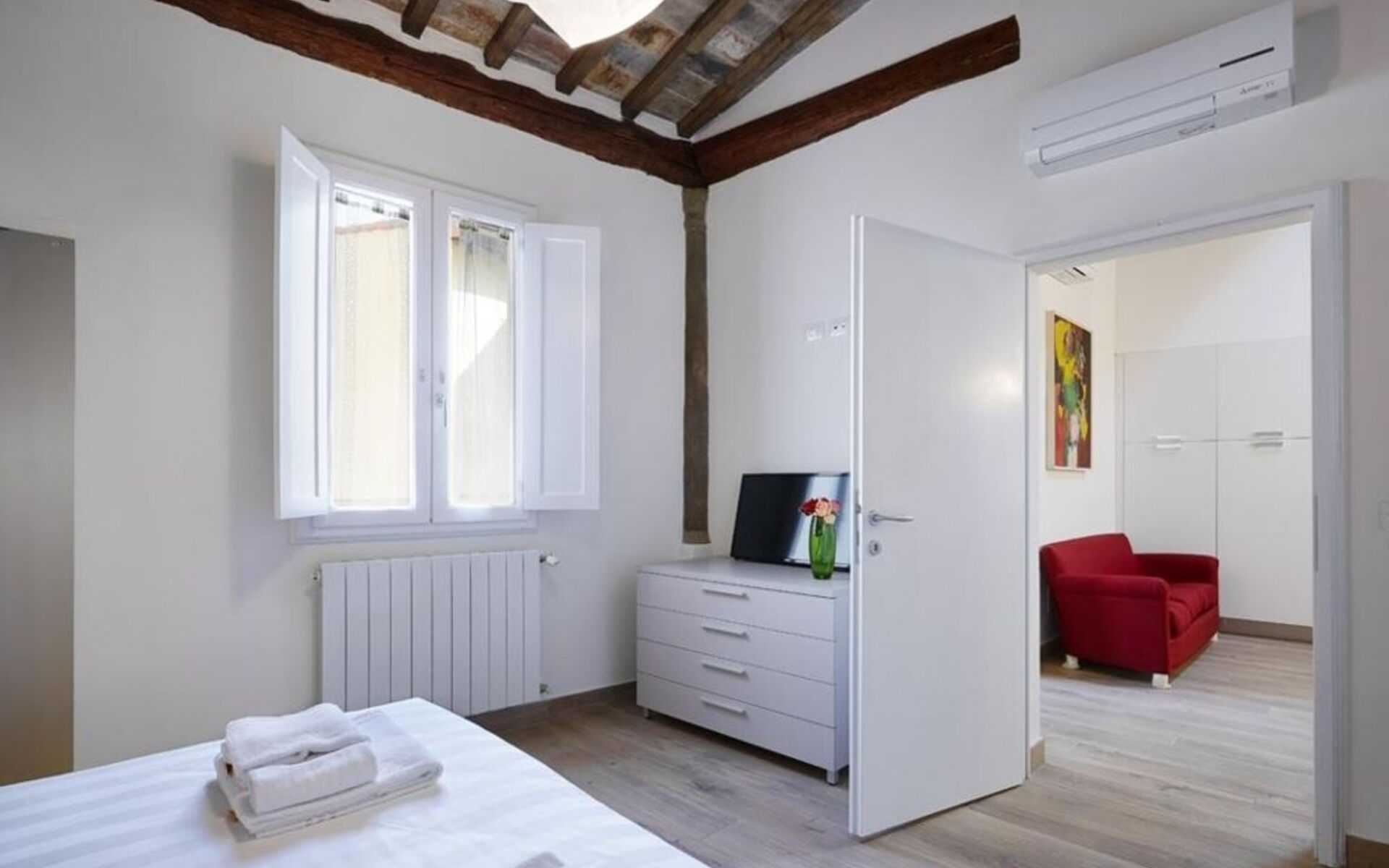 Air conditioning: in the living area and in the bedrooms.