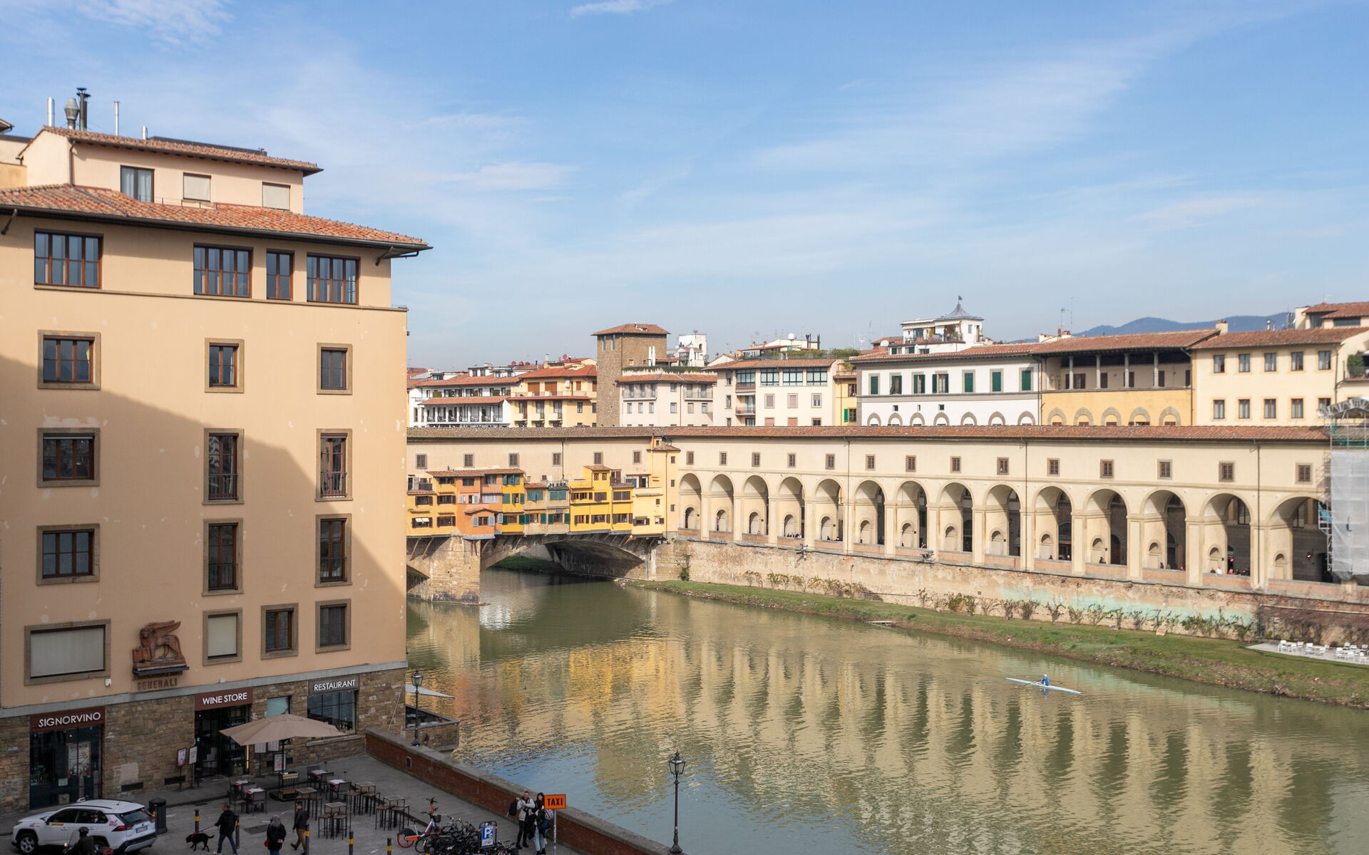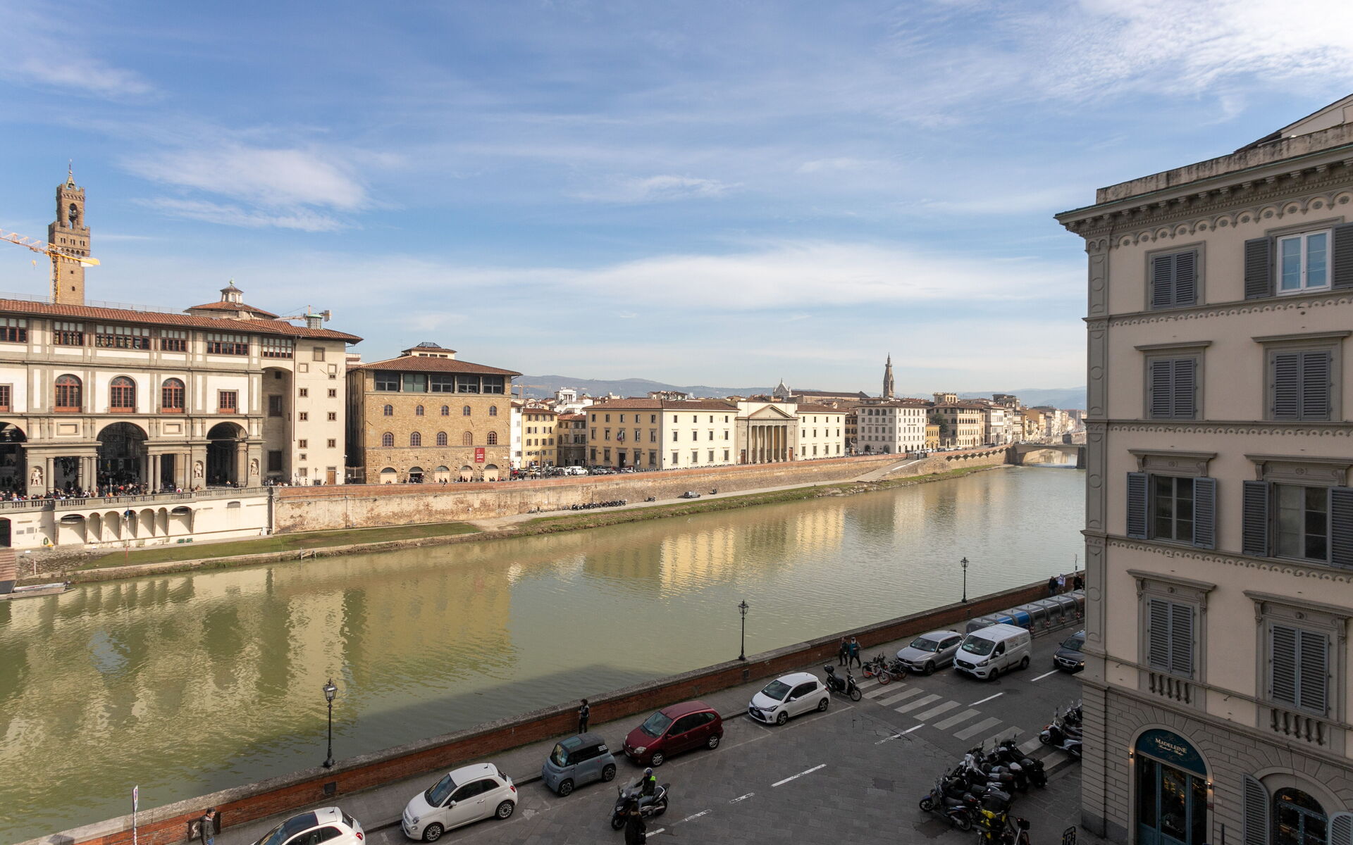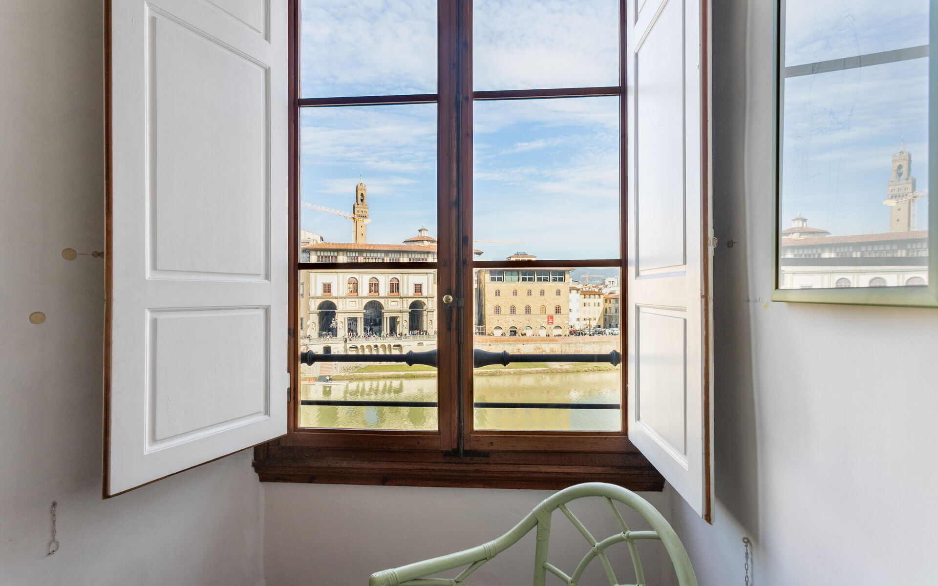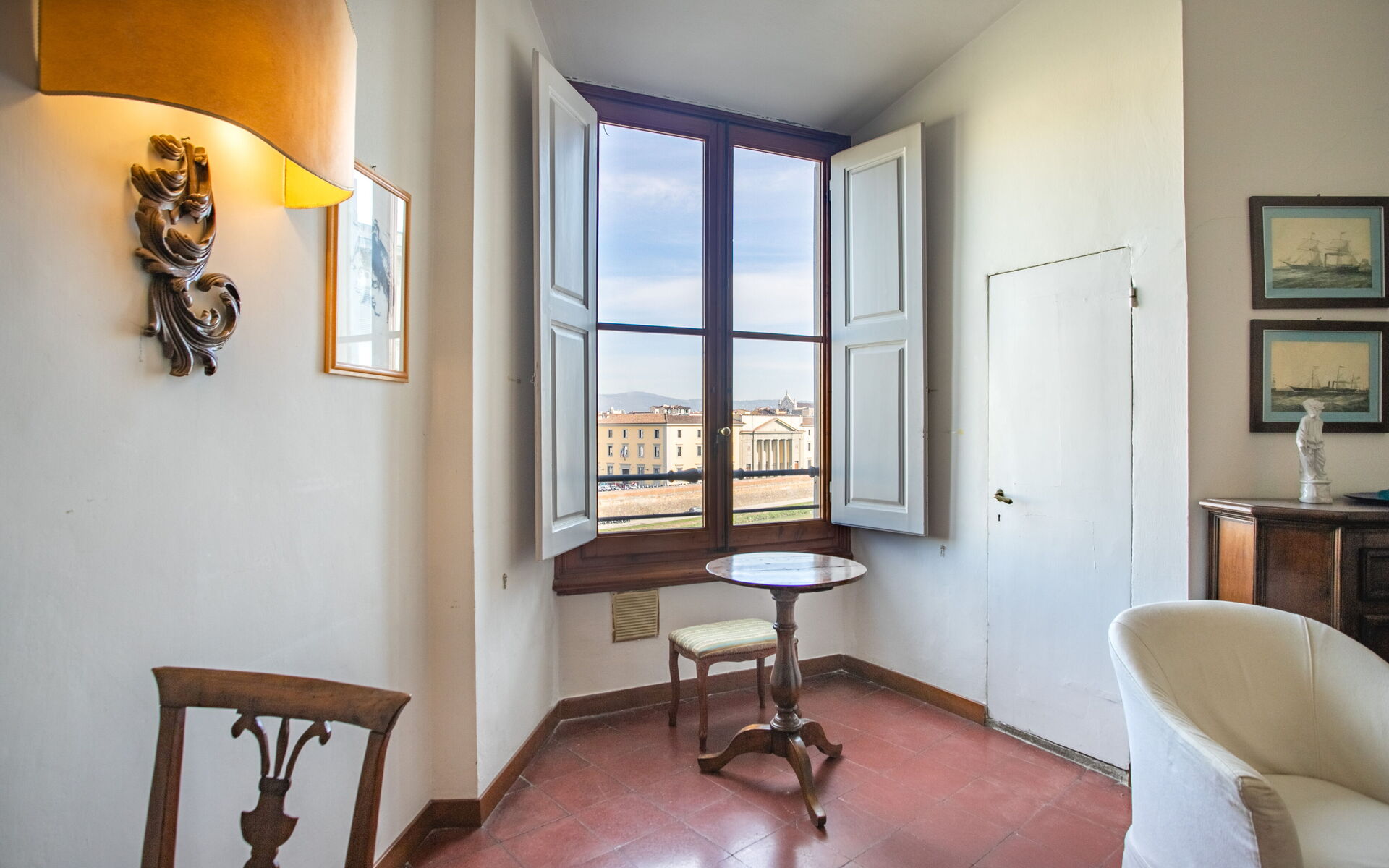 Windows offer beautiful panoramic views of the Arno River and the historic centre, creating a bright and charming atmosphere.