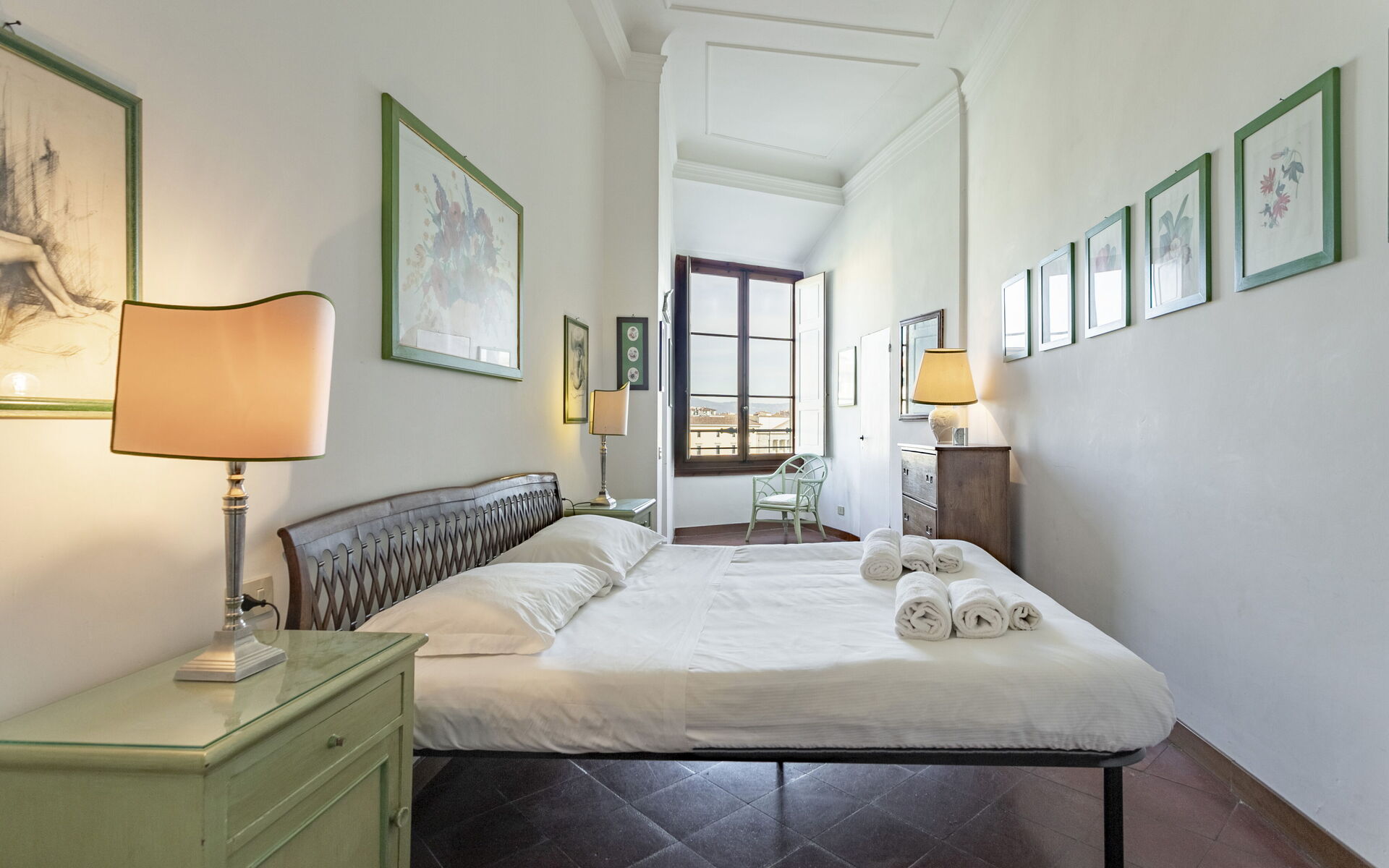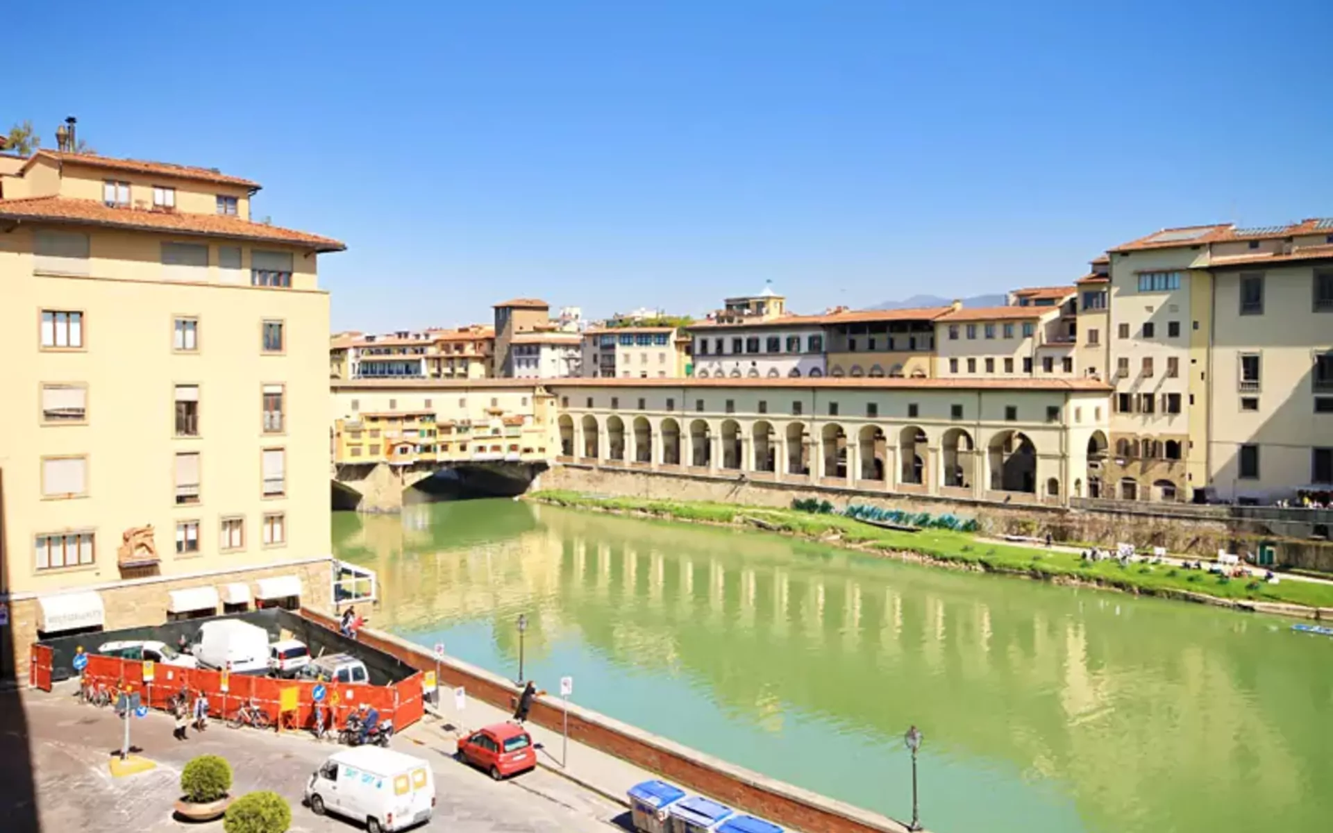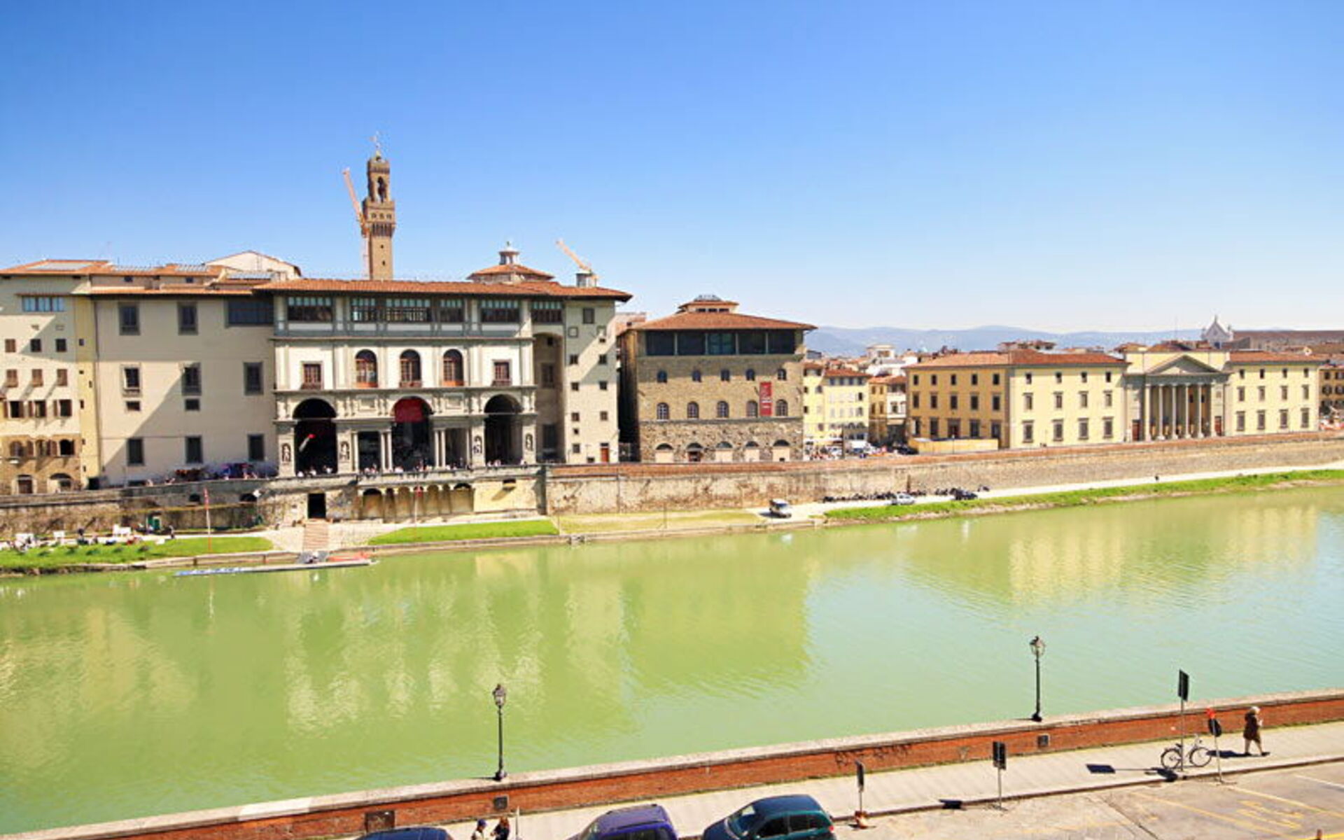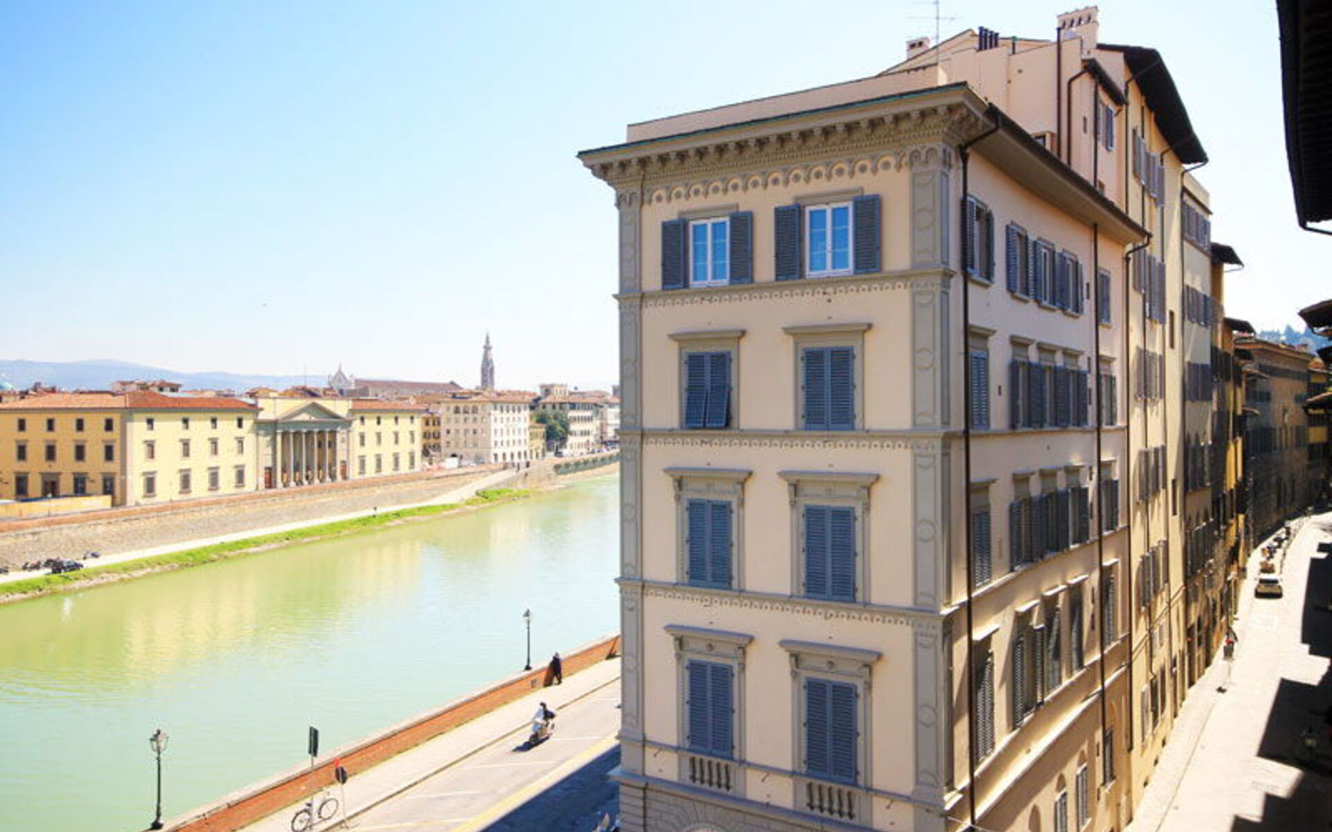 Windows offer beautiful panoramic views of the Arno River and the historic centre, creating a bright and charming atmosphere.