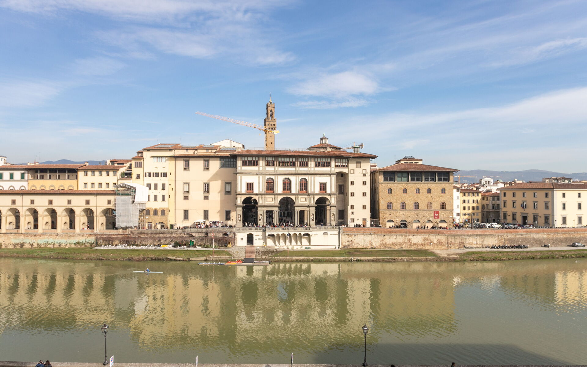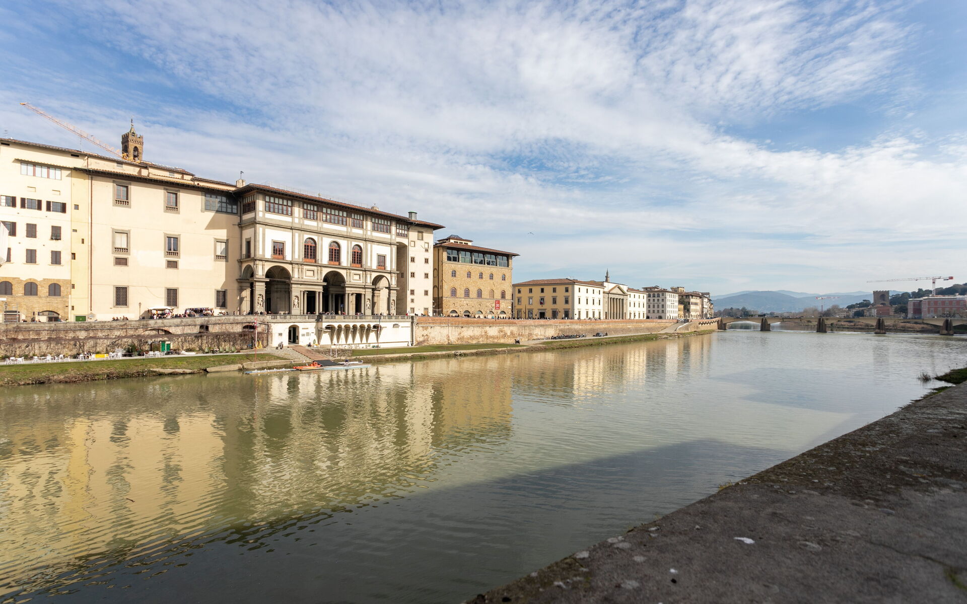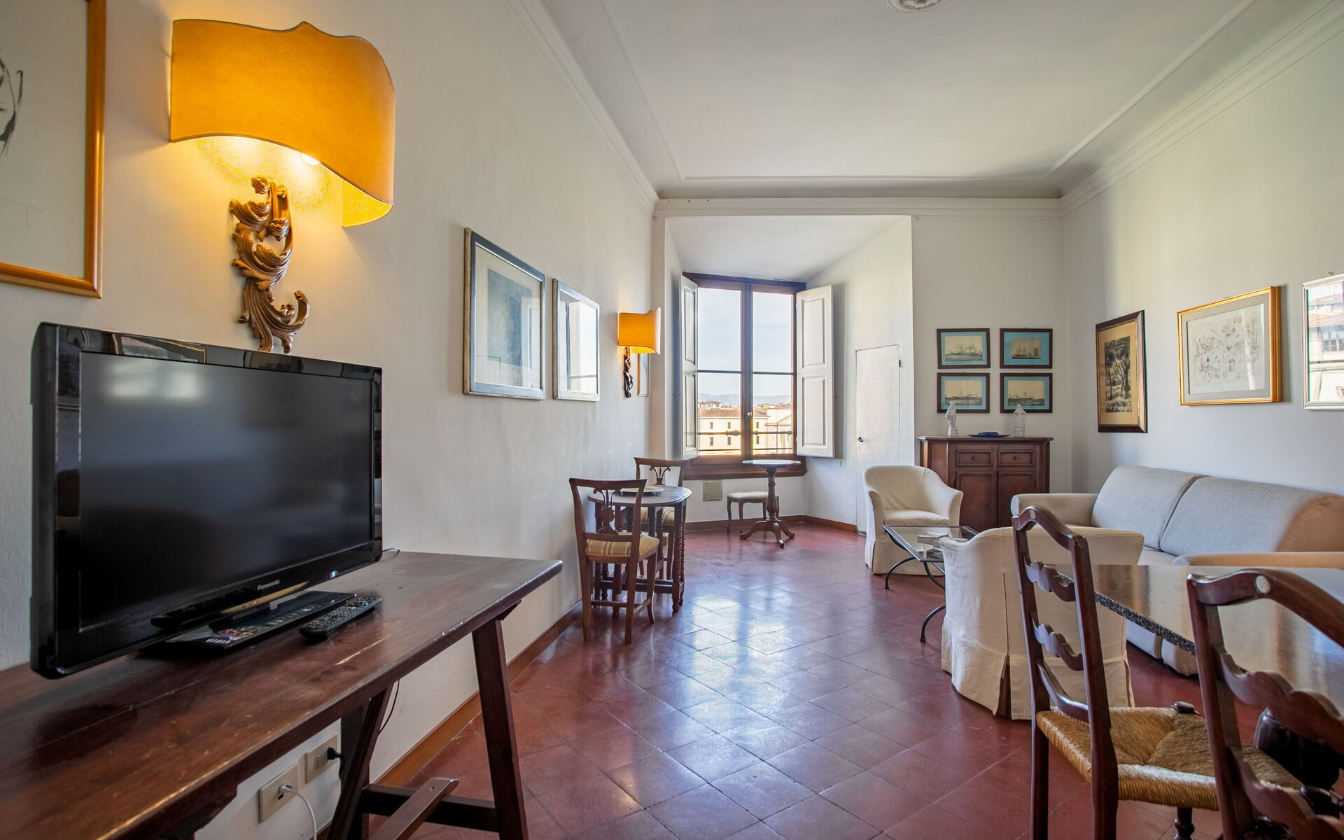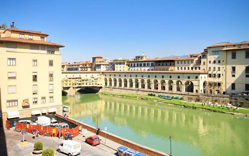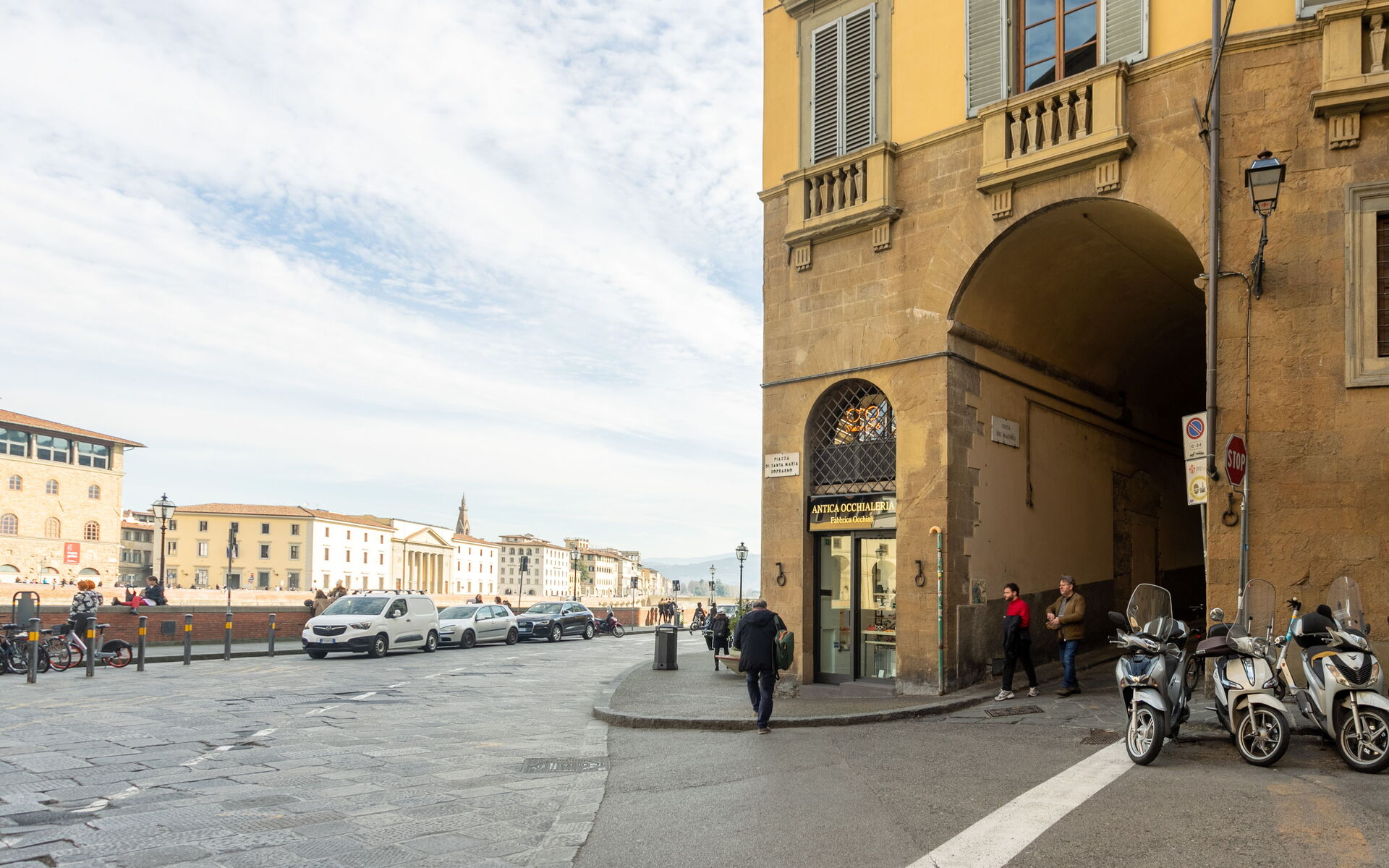Windows offer beautiful panoramic views of the Arno River and the historic centre, creating a bright and charming atmosphere.