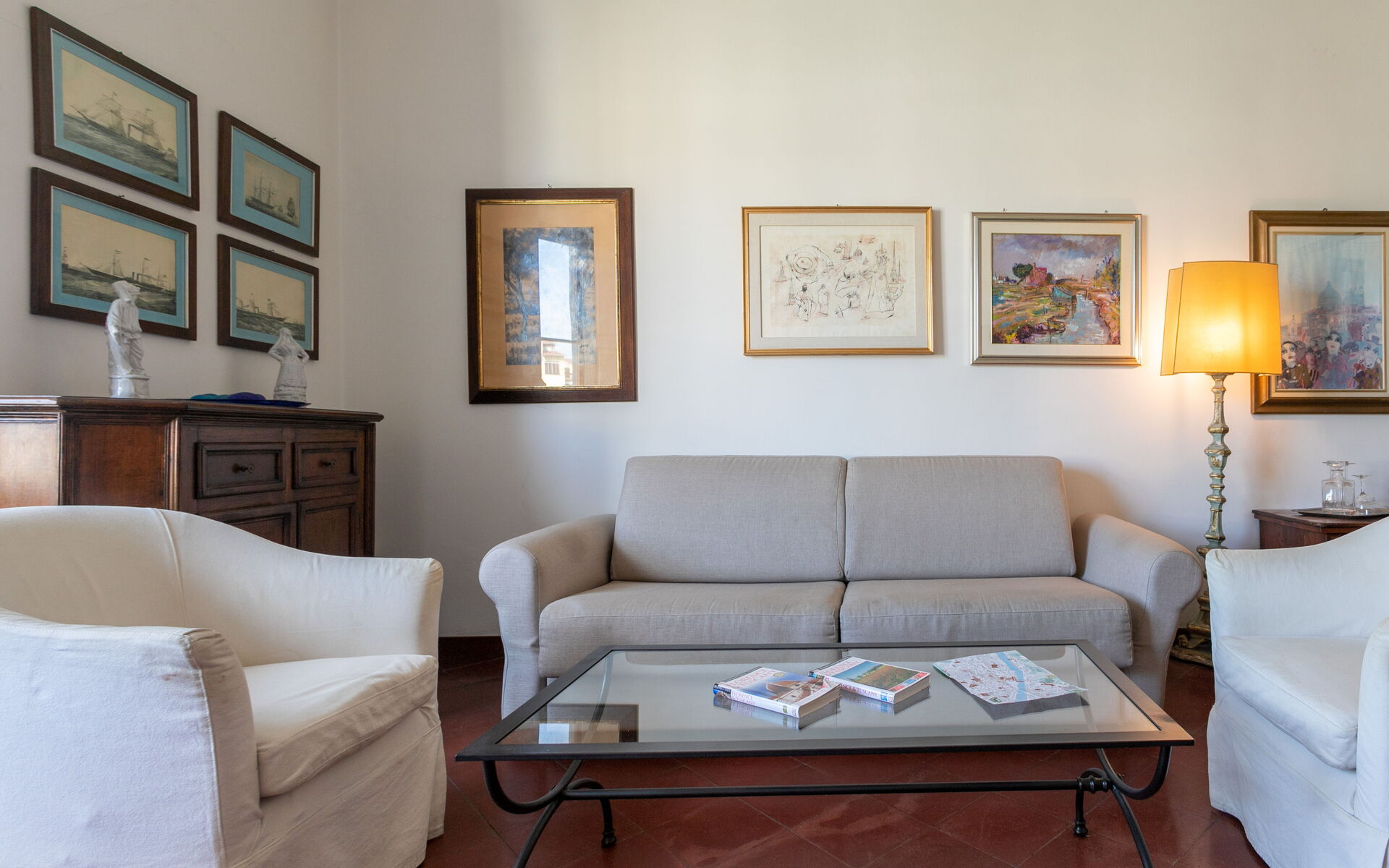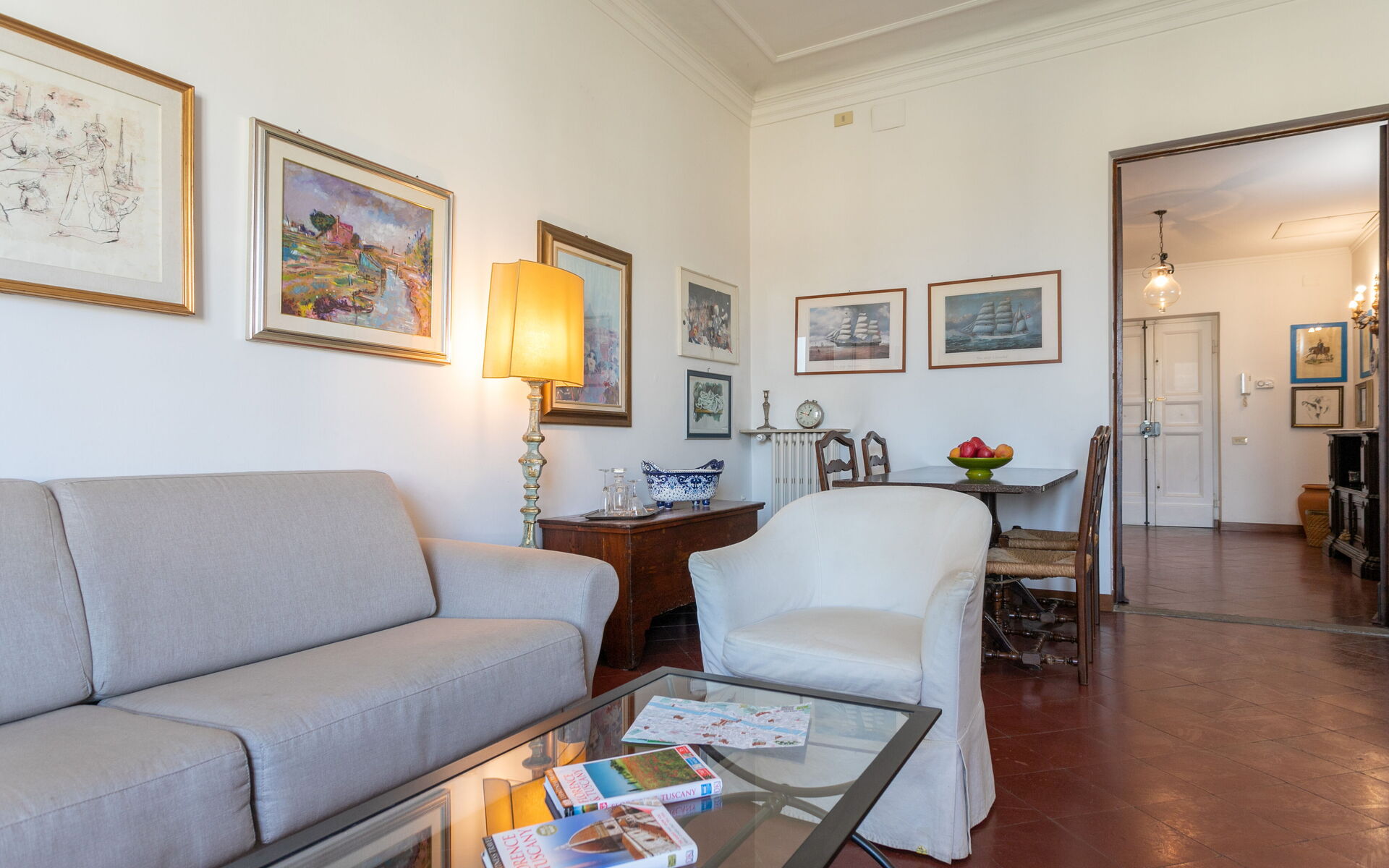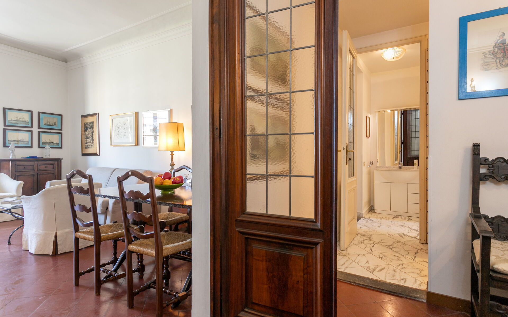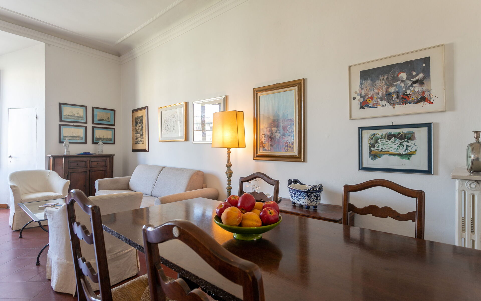Windows offer beautiful panoramic views of the Arno River and the historic centre, creating a bright and charming atmosphere.