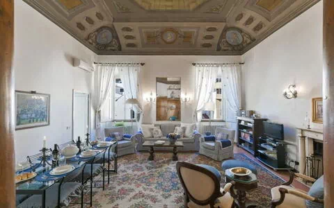 Il y a une porte de communication entre les salons des appartements Benozzo et Donatello Suite qui, sur demande, peuvent être ouverts pour élargir l'appartement en un grand espace avec 6 chambres pour 11 invités.