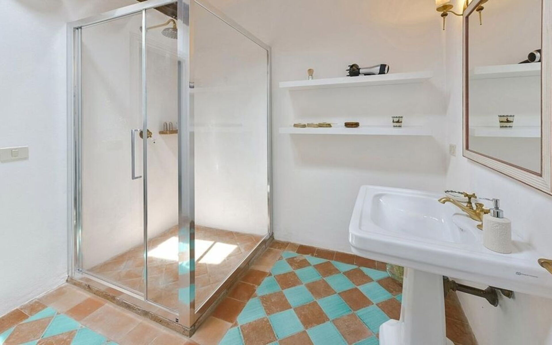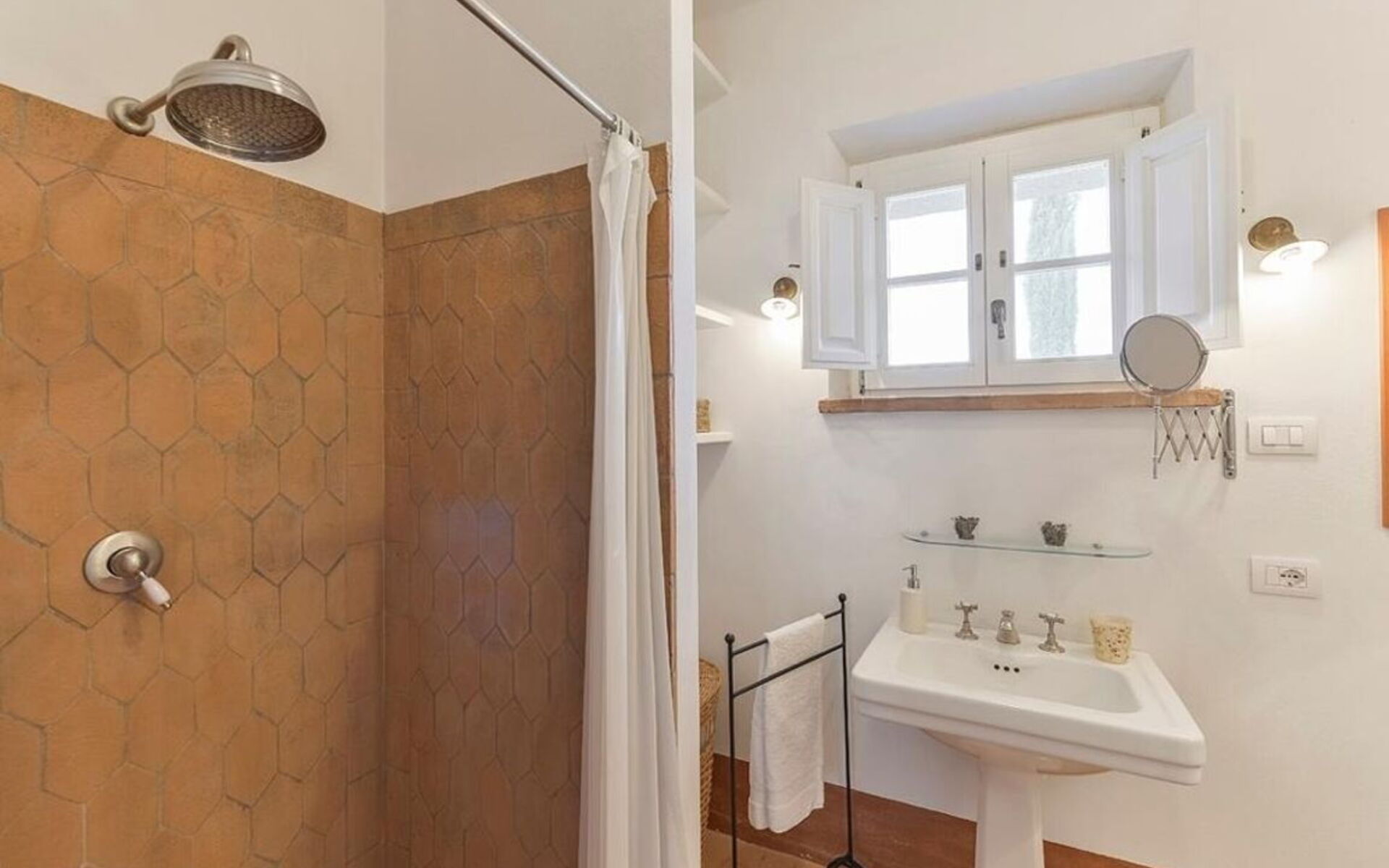 - 1 double bedroom with a guest bathroom (with no shower). This bedroom shares a big bathroom with shower with the triple bedroom