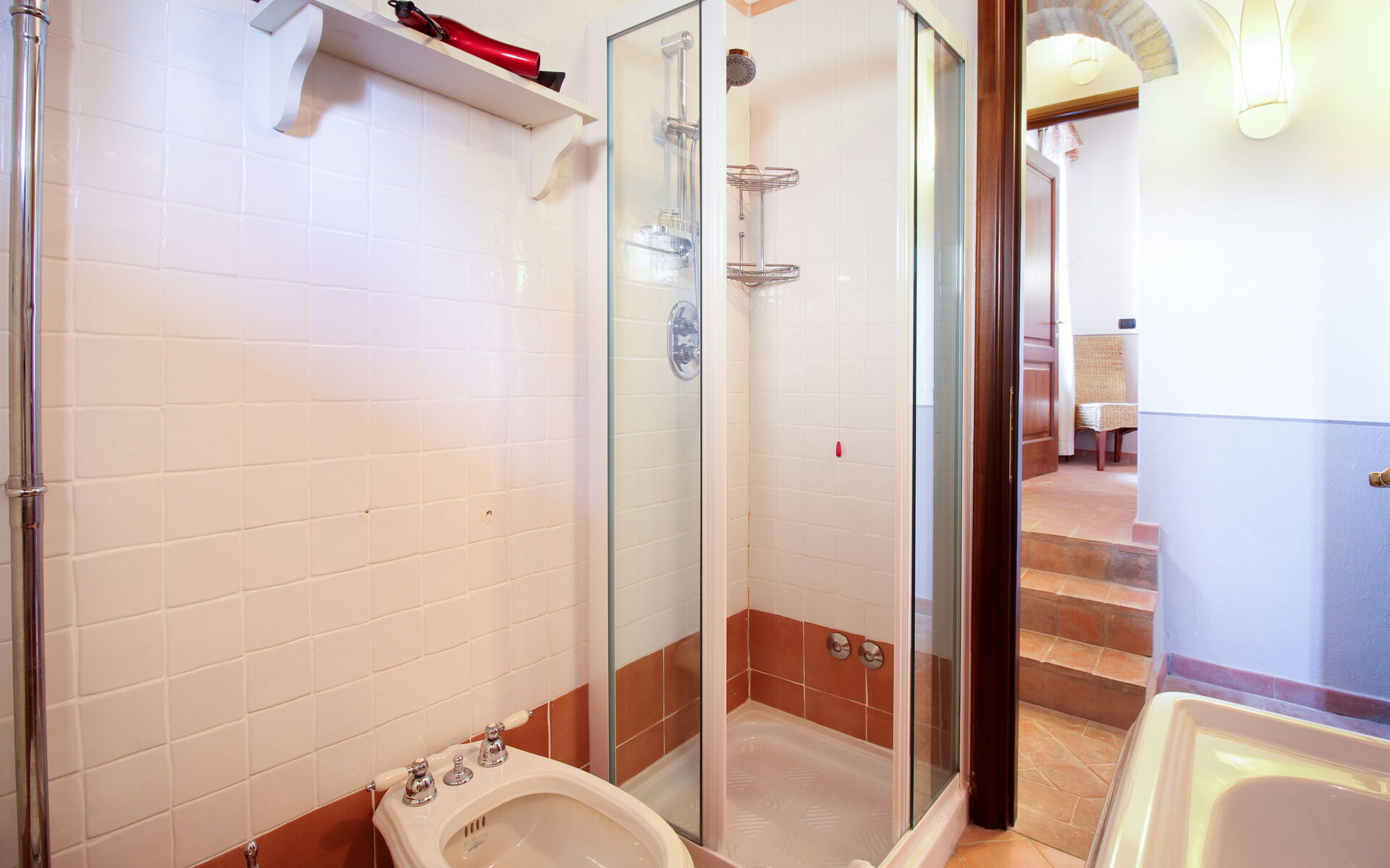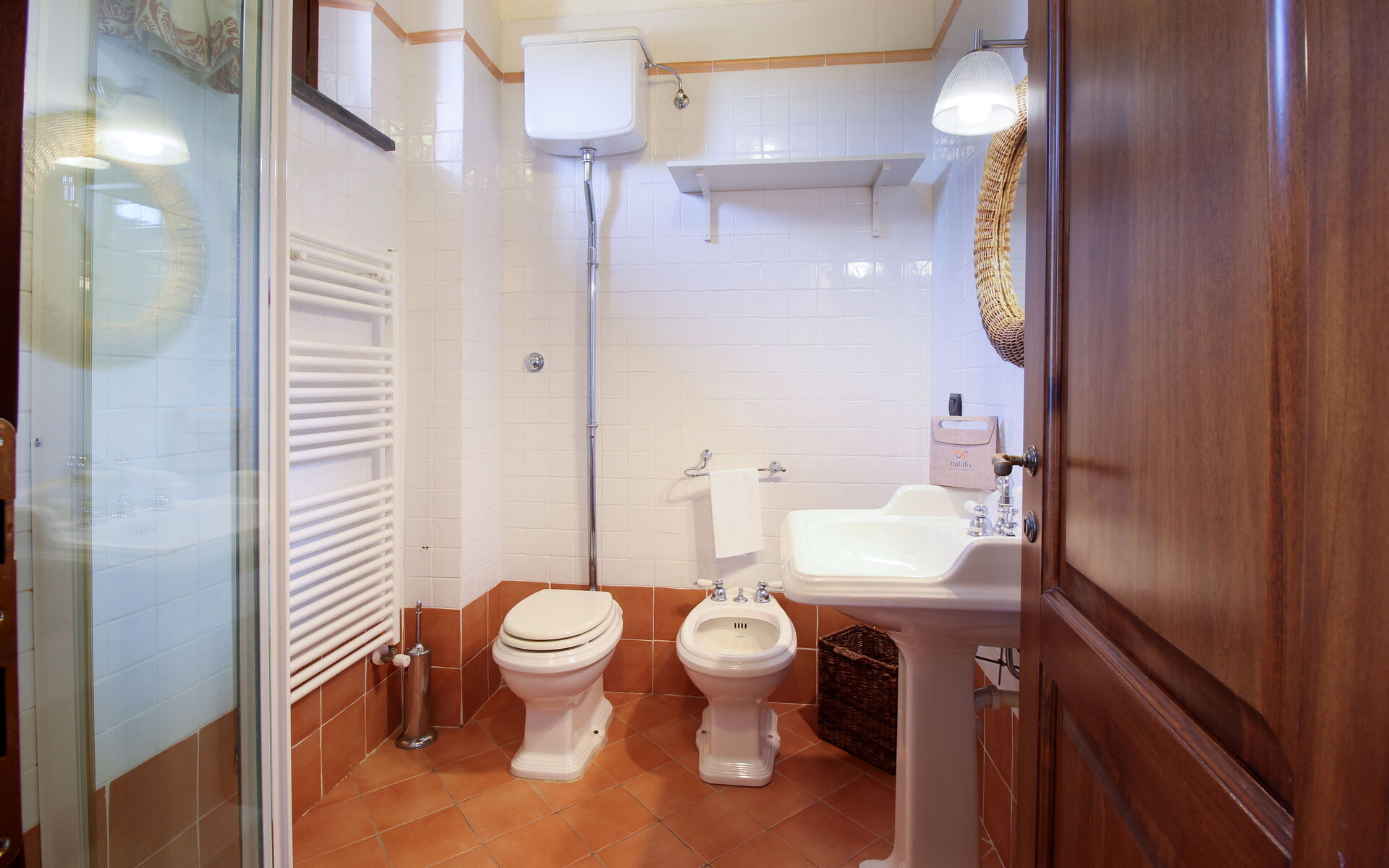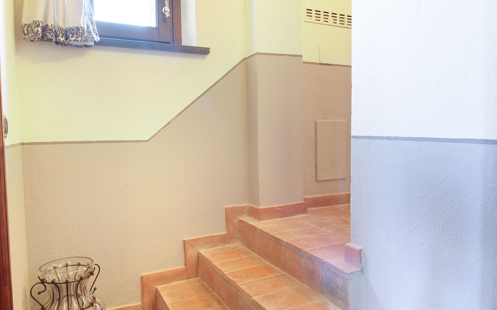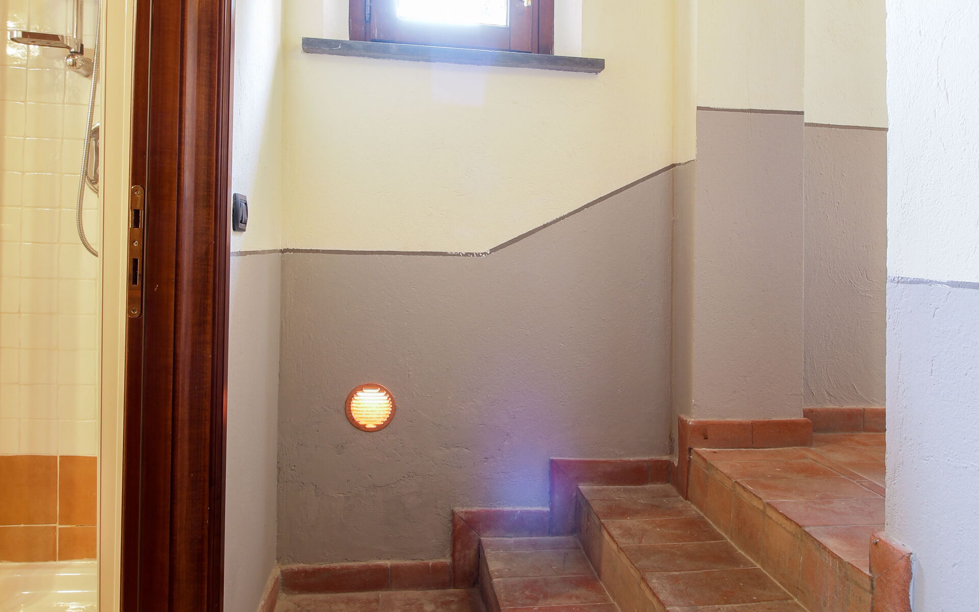 The first floor is always accessed from the kitchen (18 steps) where there are 1 double bedroom and 1 bedroom with 2 single beds each with its own bathroom.