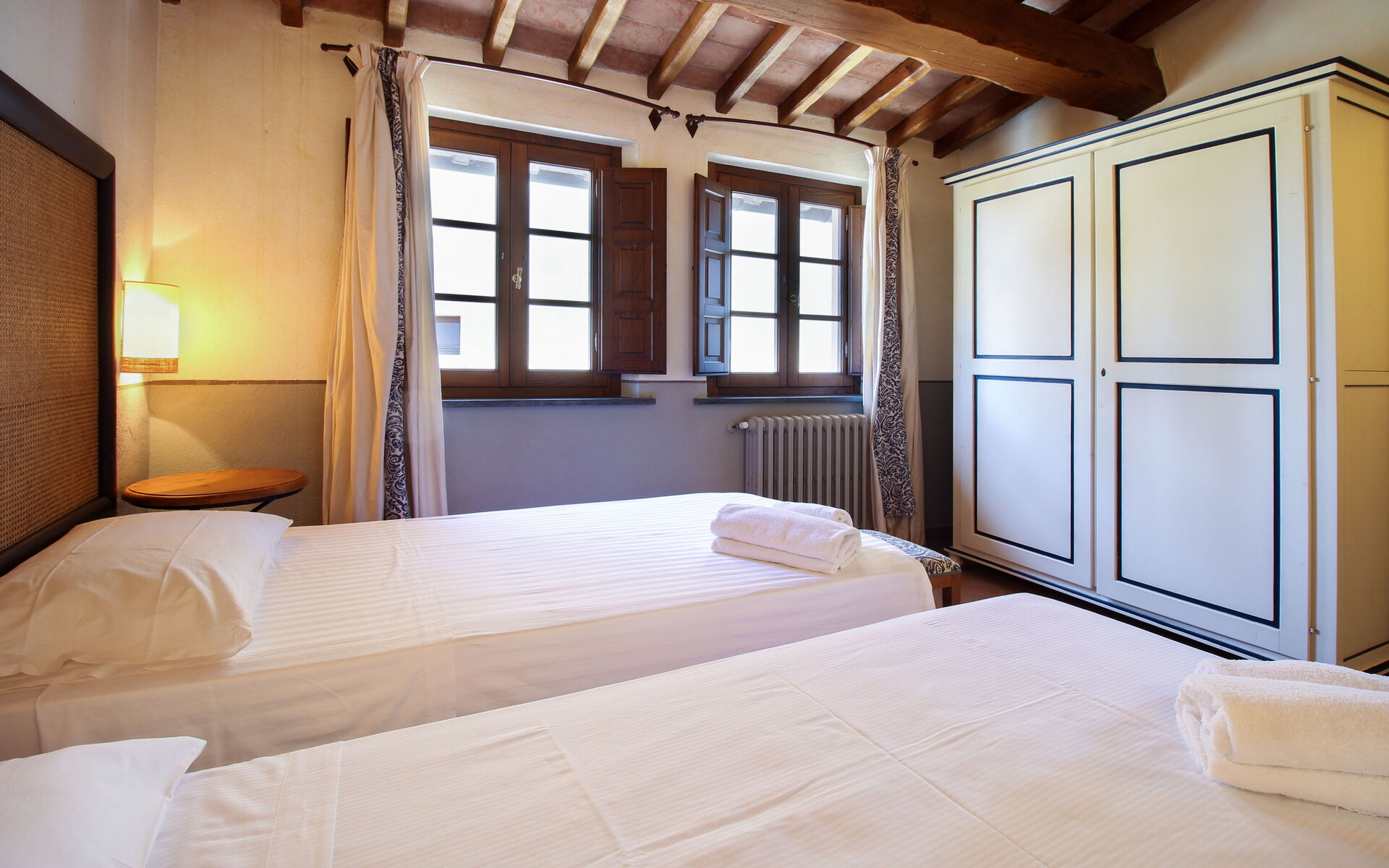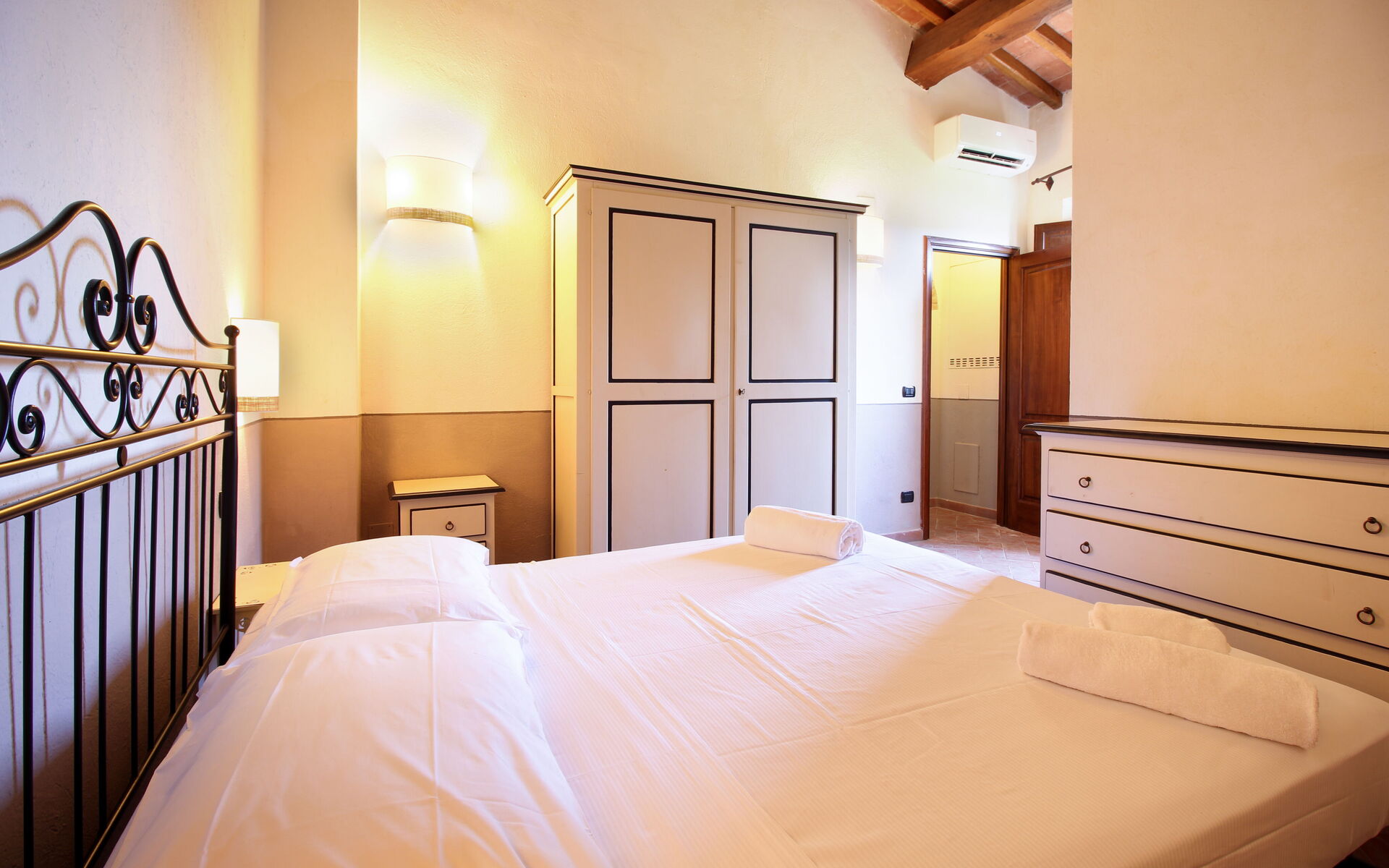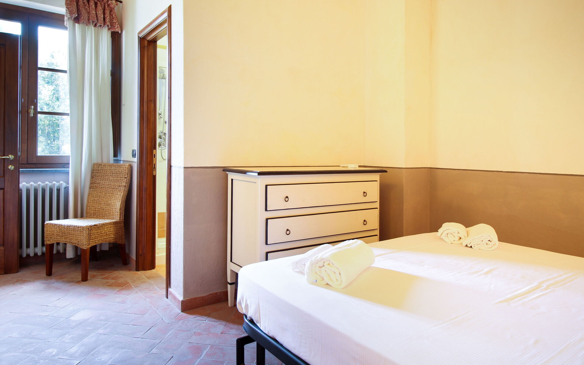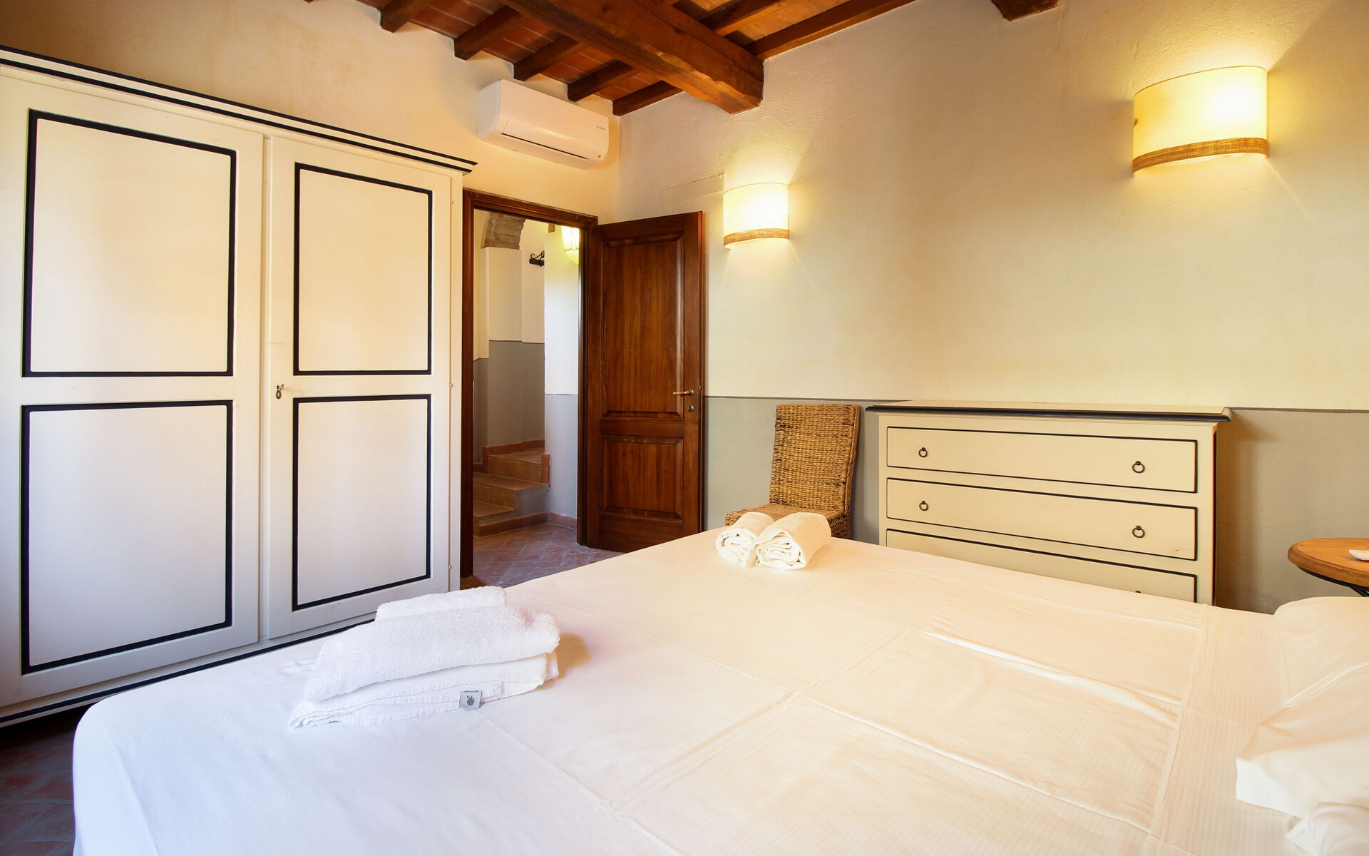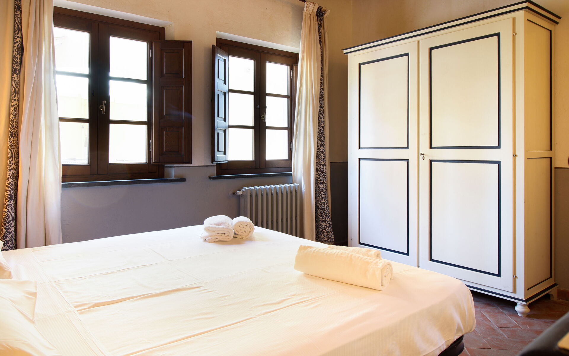 The first floor is always accessed from the kitchen (18 steps) where there are 1 double bedroom and 1 bedroom with 2 single beds each with its own bathroom.