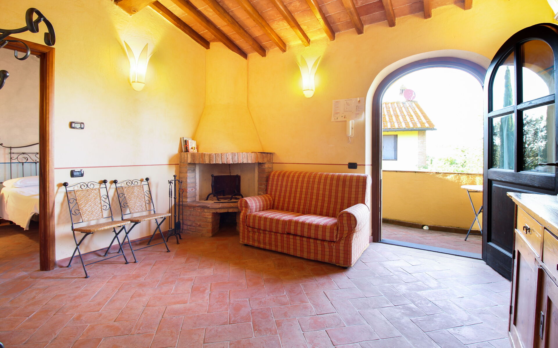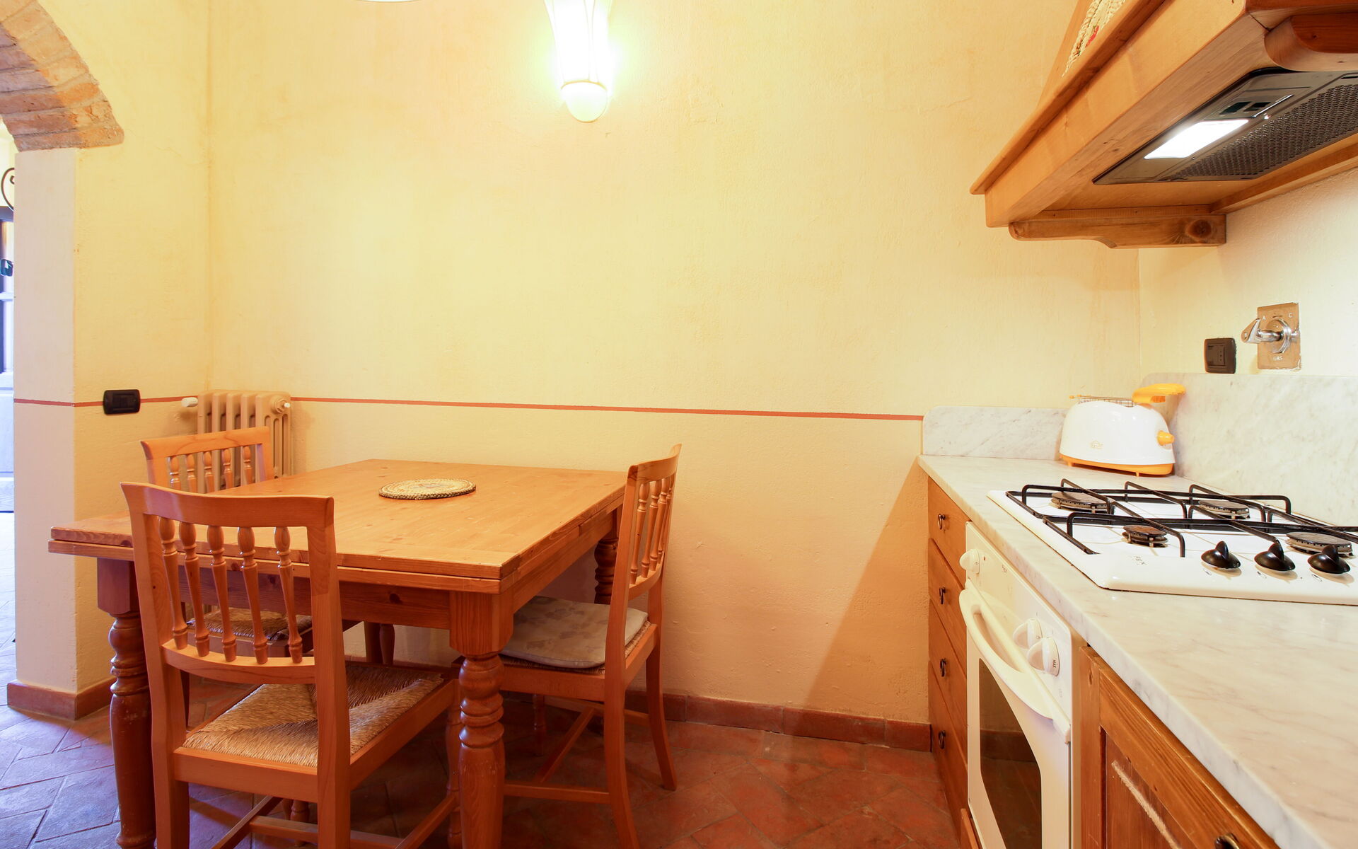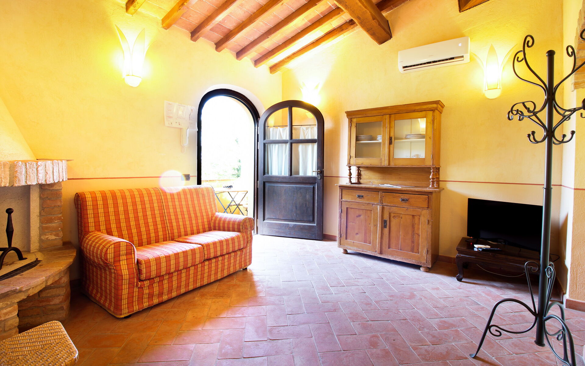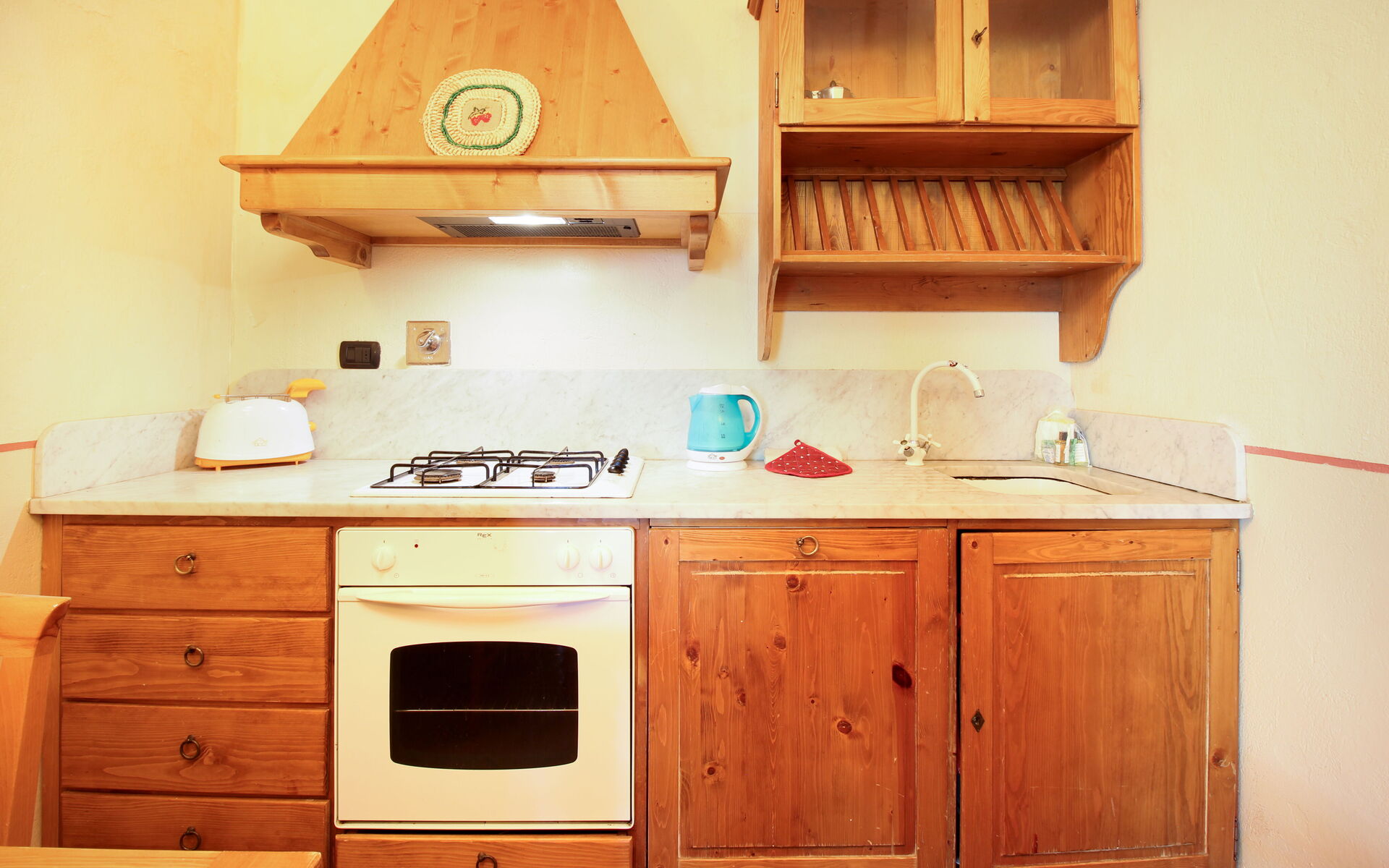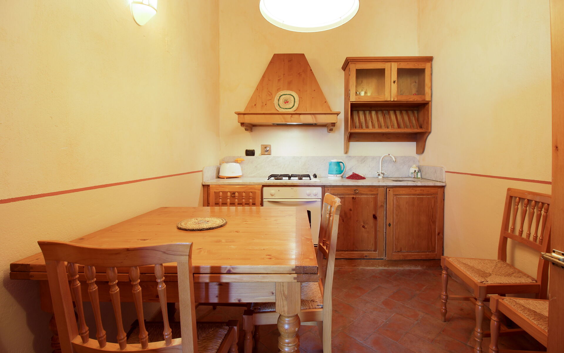 Apartment located on the first floor, kitchen with dining table and fireplace, 2 bedrooms, 1 double and 1 with two single beds, each with its own bathroom.