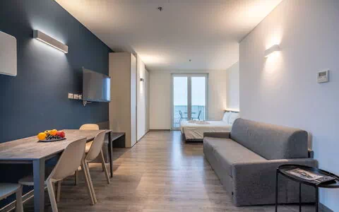 Cozy 45 m² loft, bright and decorated with vibrant colors and high‑quality finishes—perfect for guests seeking a modern, comfortable stay full of charm. The large windows and the beautiful 12 m² furnished terrace offer an unforgettable visual experience: a stunning view over the Venetian Lagoon and all its islands, a rare panorama that makes this apartment truly special.