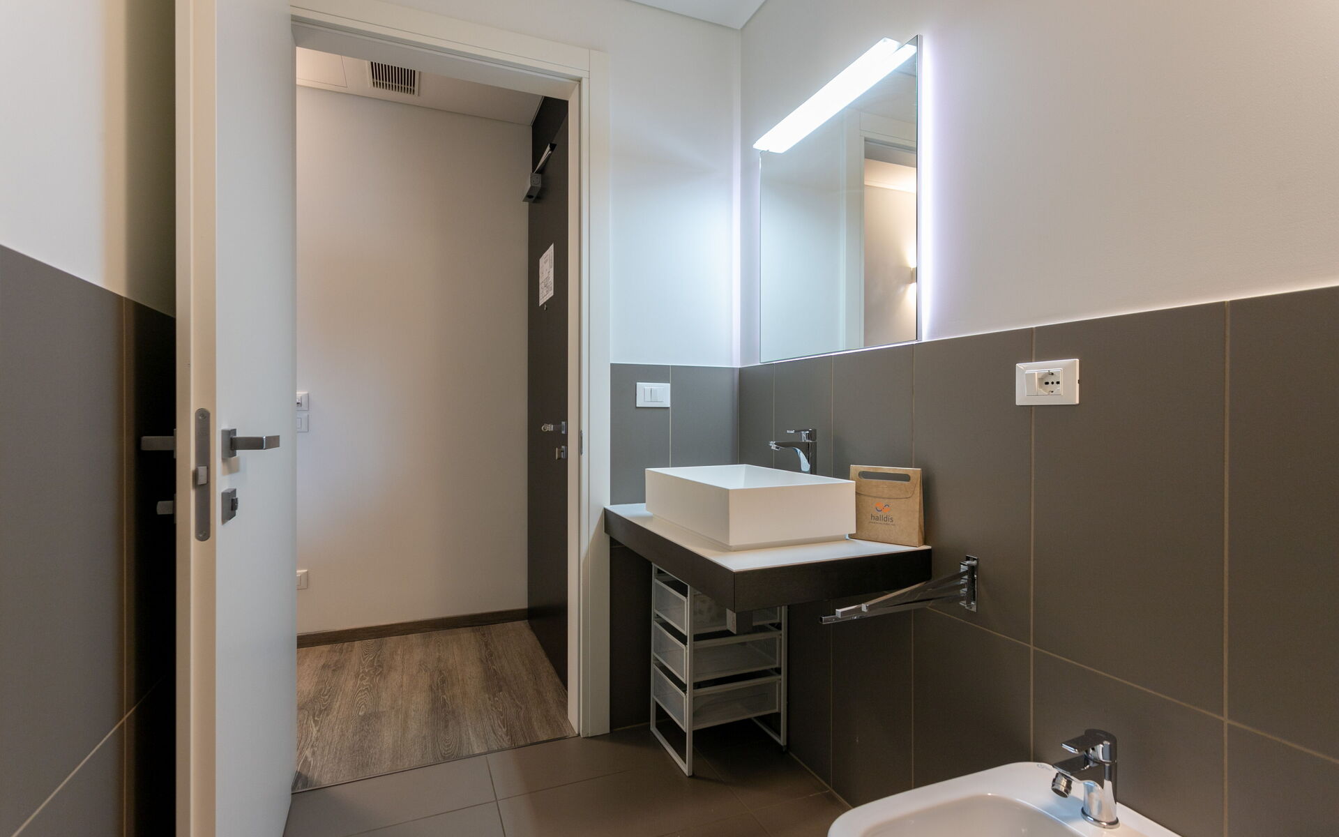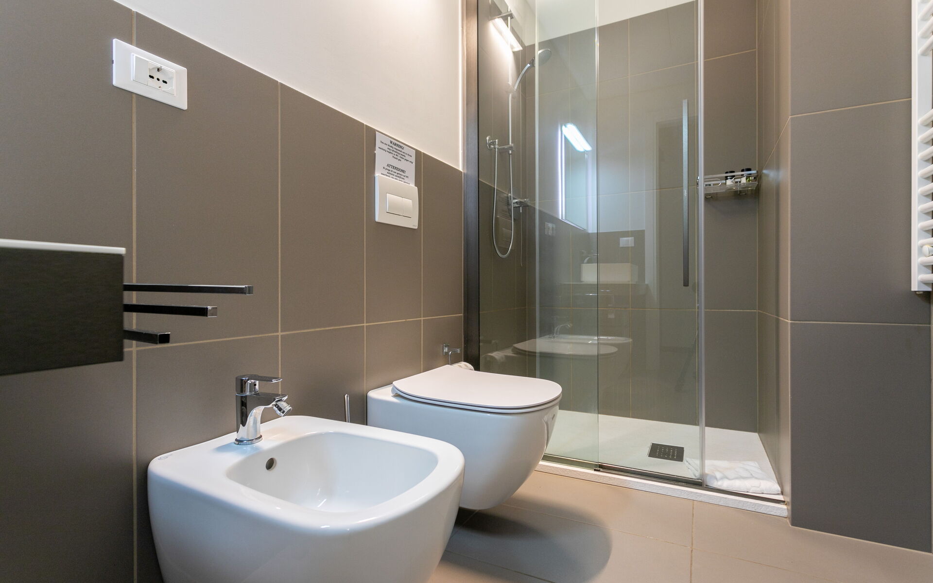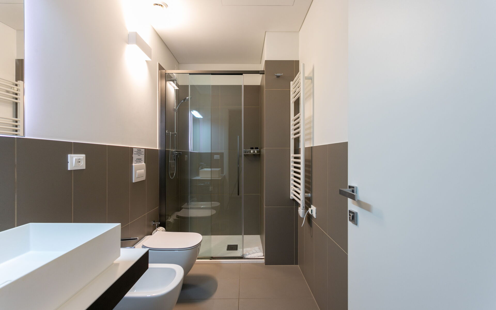 • Modern bathroom with shower