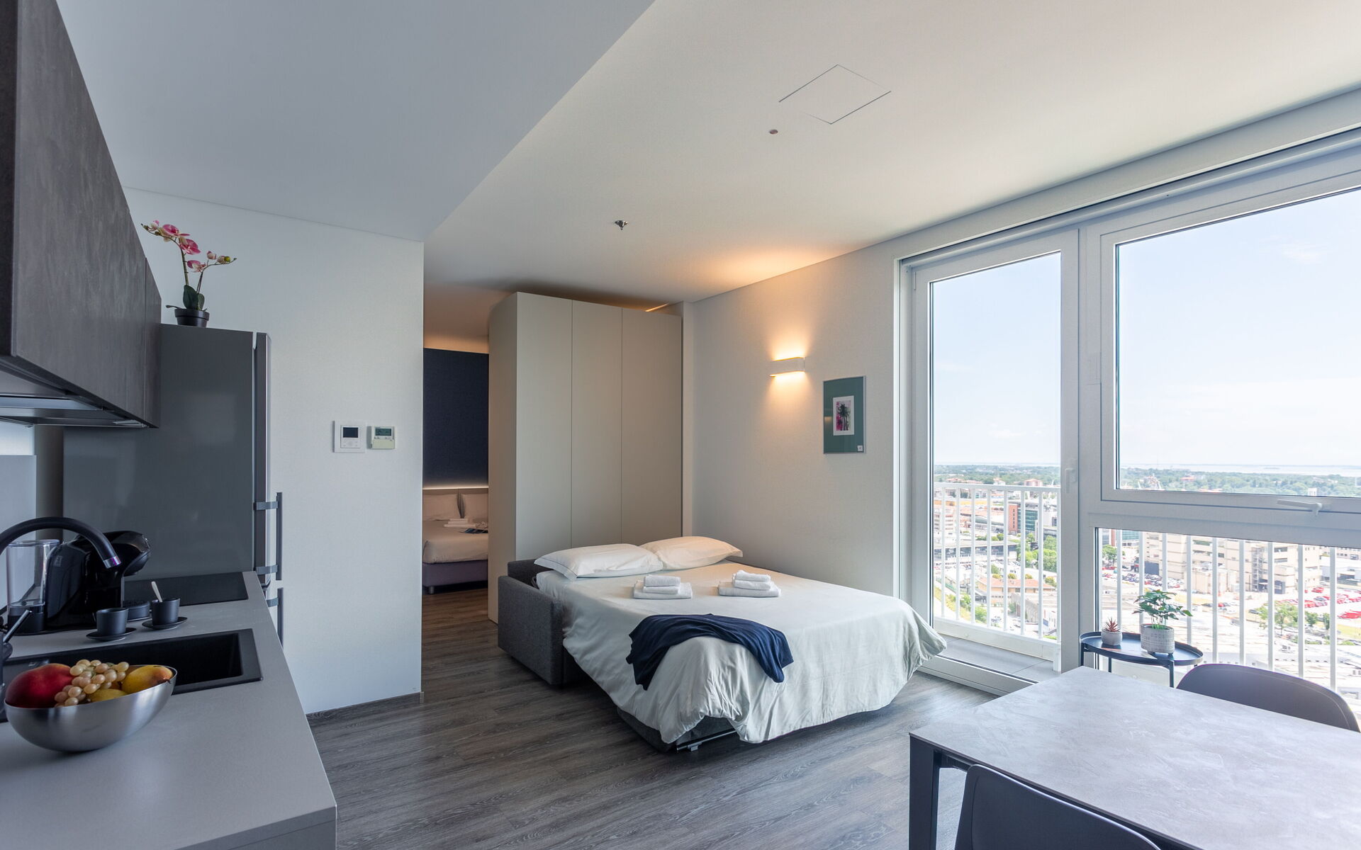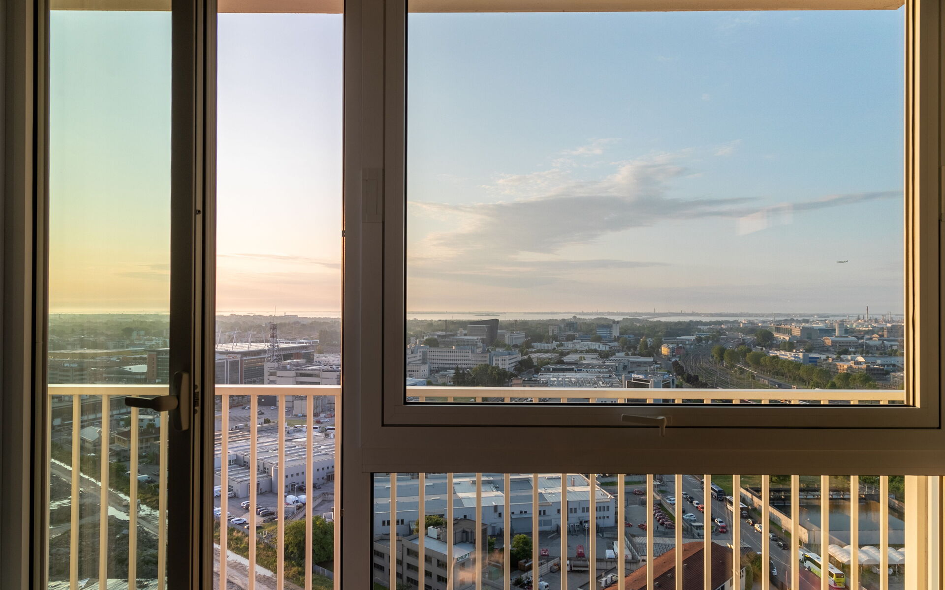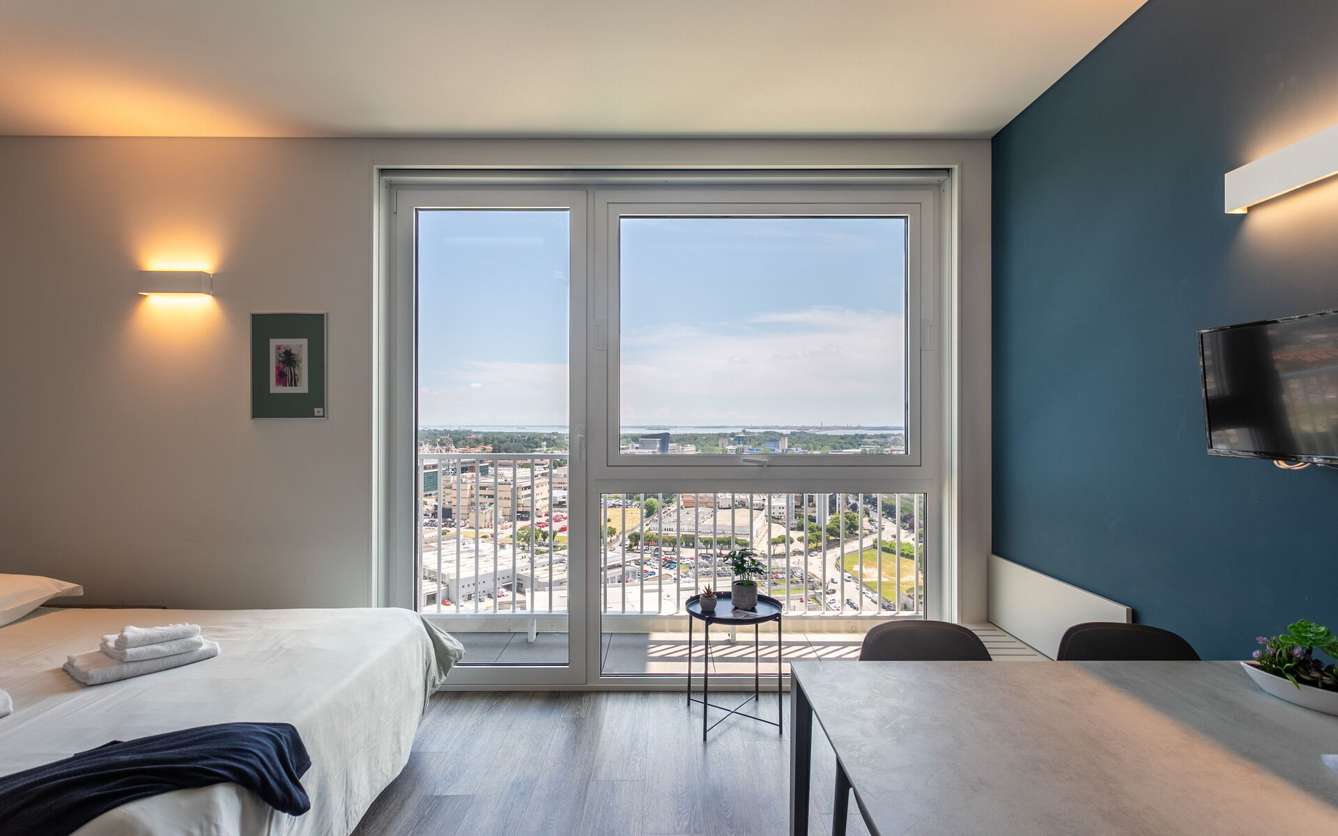 Book this modern loft now and enjoy the pleasure of a drink or a coffee suspended above the city, with the lagoon right before your eyes. An experience you’ll never forget.