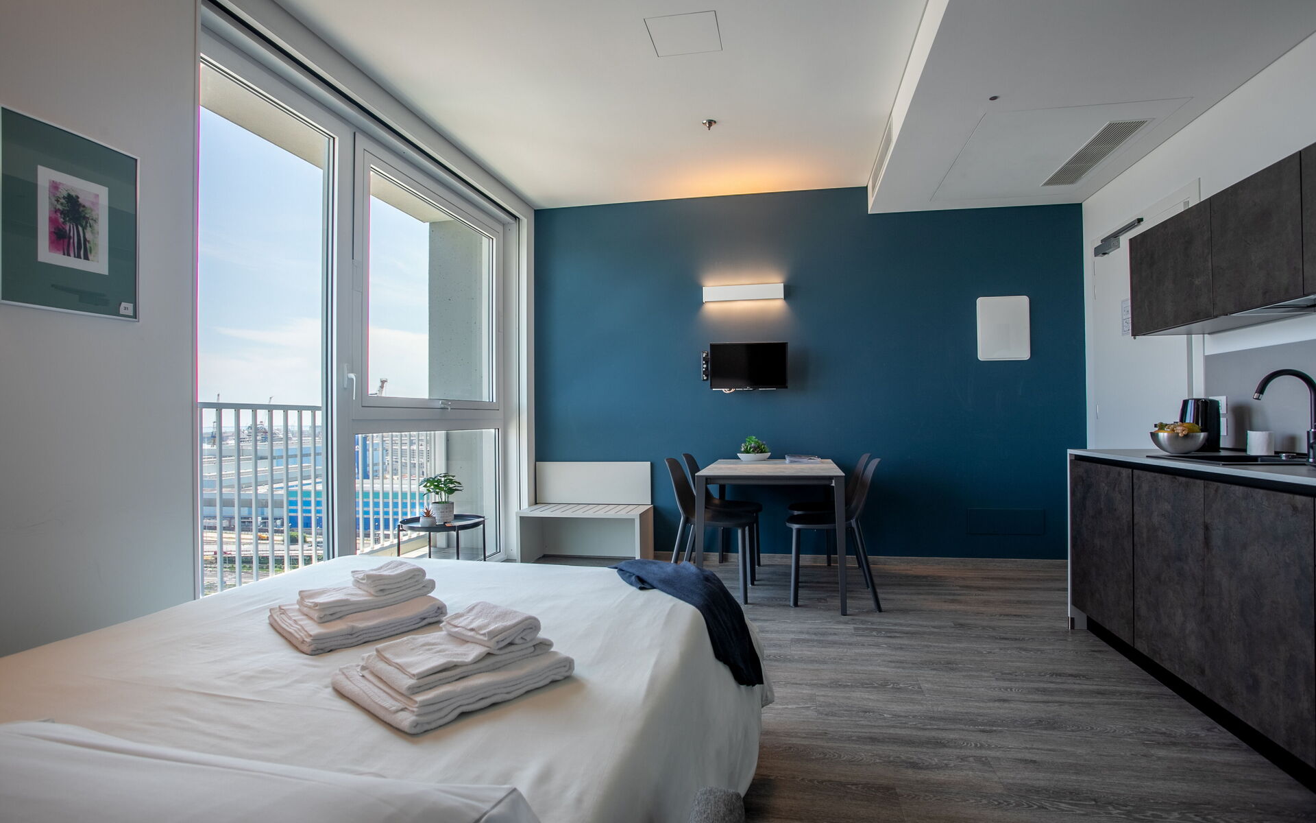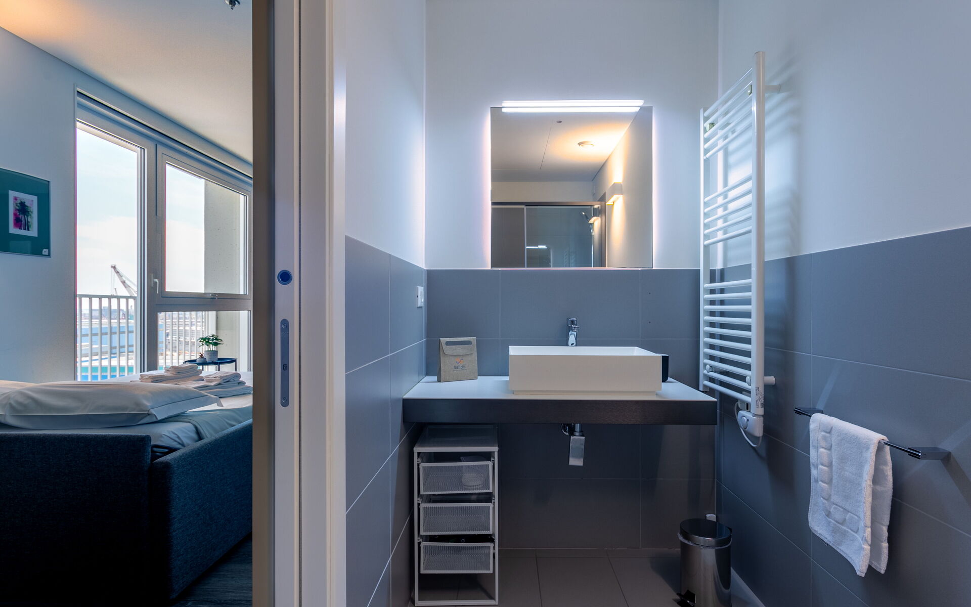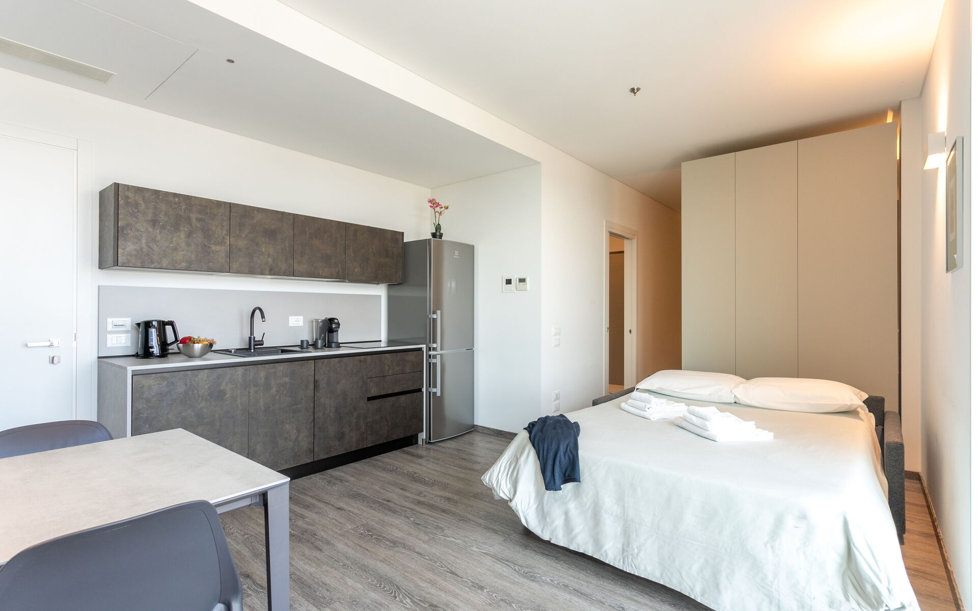 Book this modern loft now and enjoy the pleasure of a drink or a coffee suspended above the city, with the lagoon right before your eyes. An experience you’ll never forget.