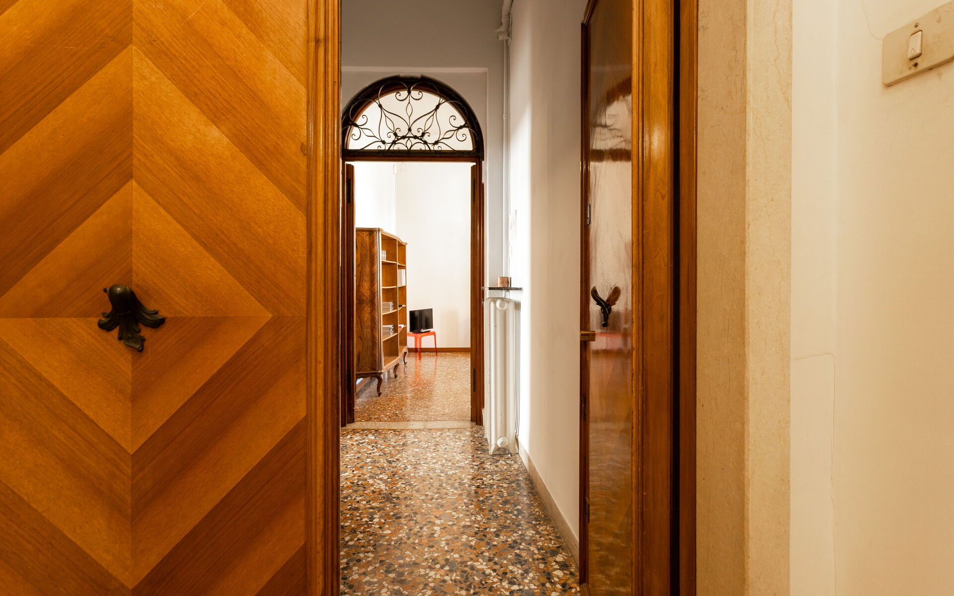 The first Baseggio apartment is located on two levels and has a floor area of approximately 185 square meters.