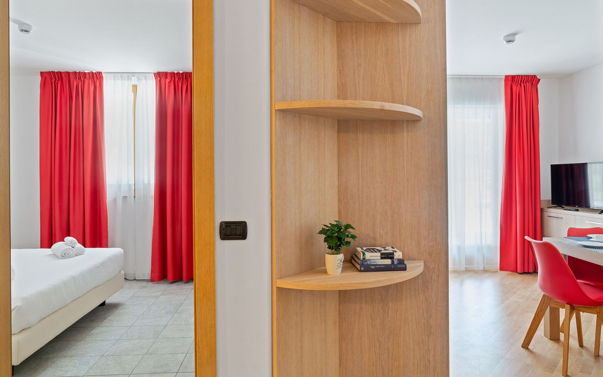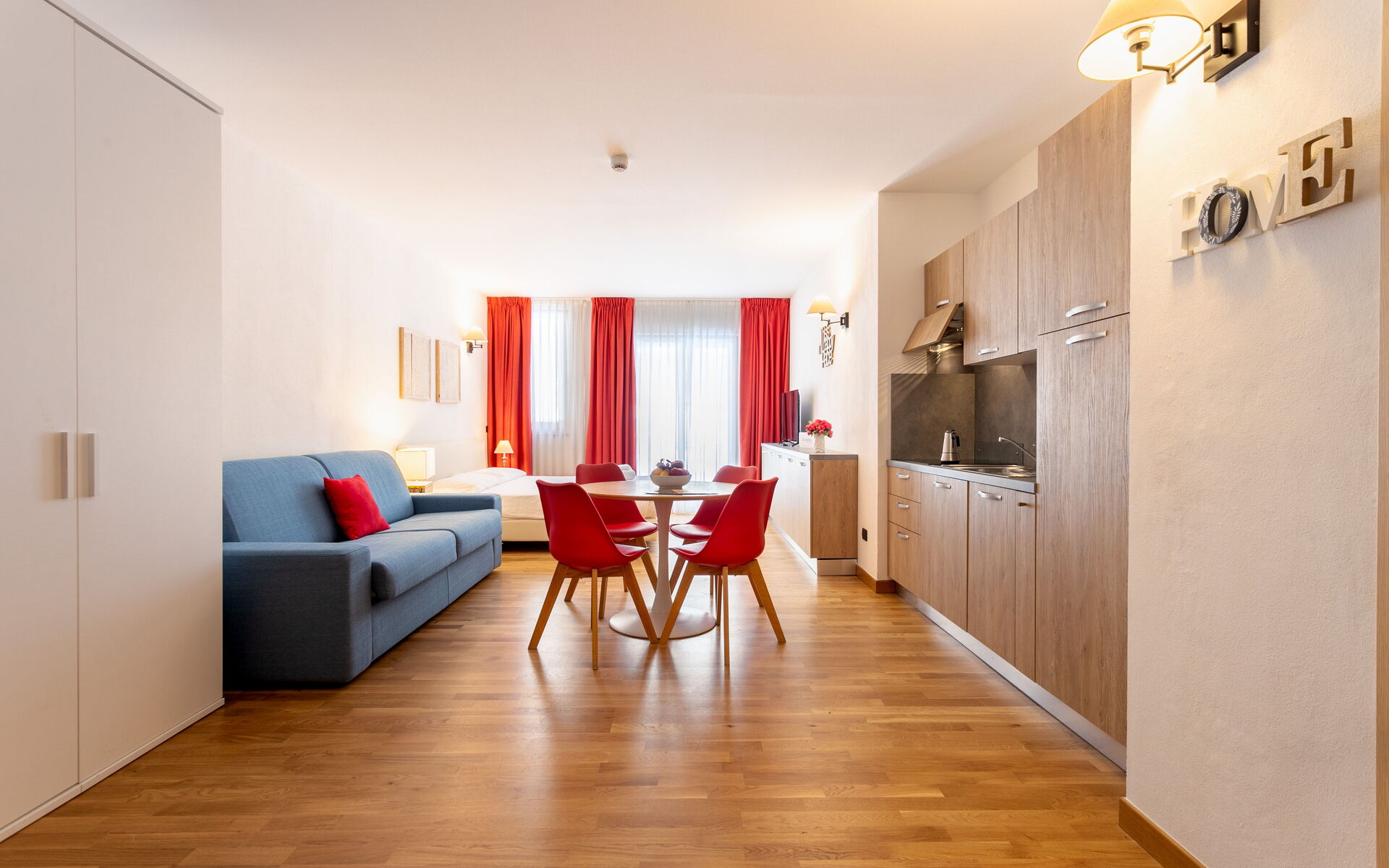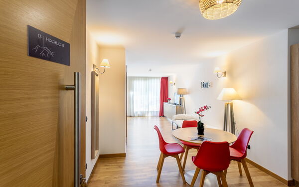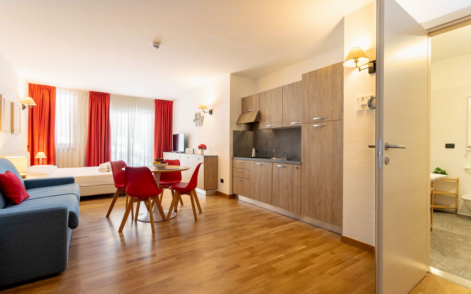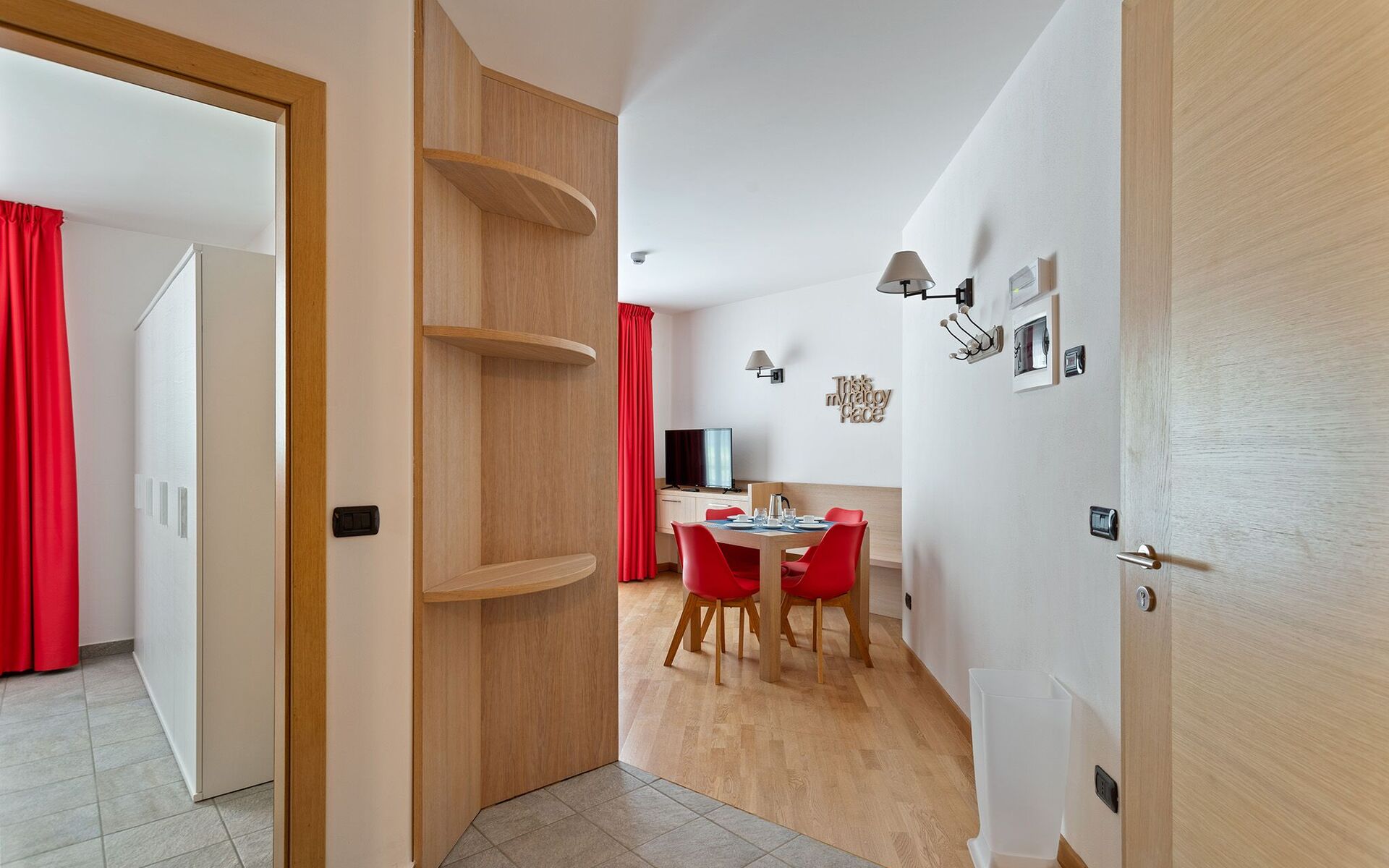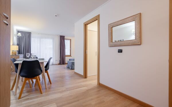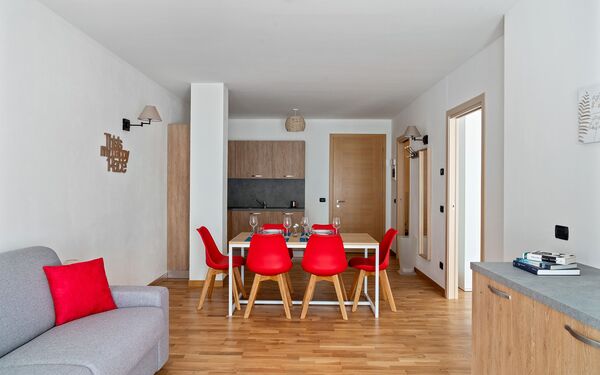 appartamenti comodi, confortevoli, caldi, bene illuminati. bagni piacevoli e perfetti. ski room utilissima e comoda per chi scia (scarponi caldi). hall spaziosa e vivibile per tutti, con bei divani e tante sedute. personale accogliente, gentile, pronto ad aiutare in qualsiasi esigenza. spa piacevolissima. molti gradito anche dai bambini/ragazzi. noi torniamo da più anni. jacopo monica eric francesca