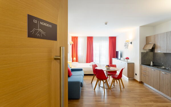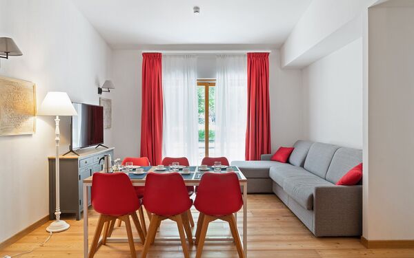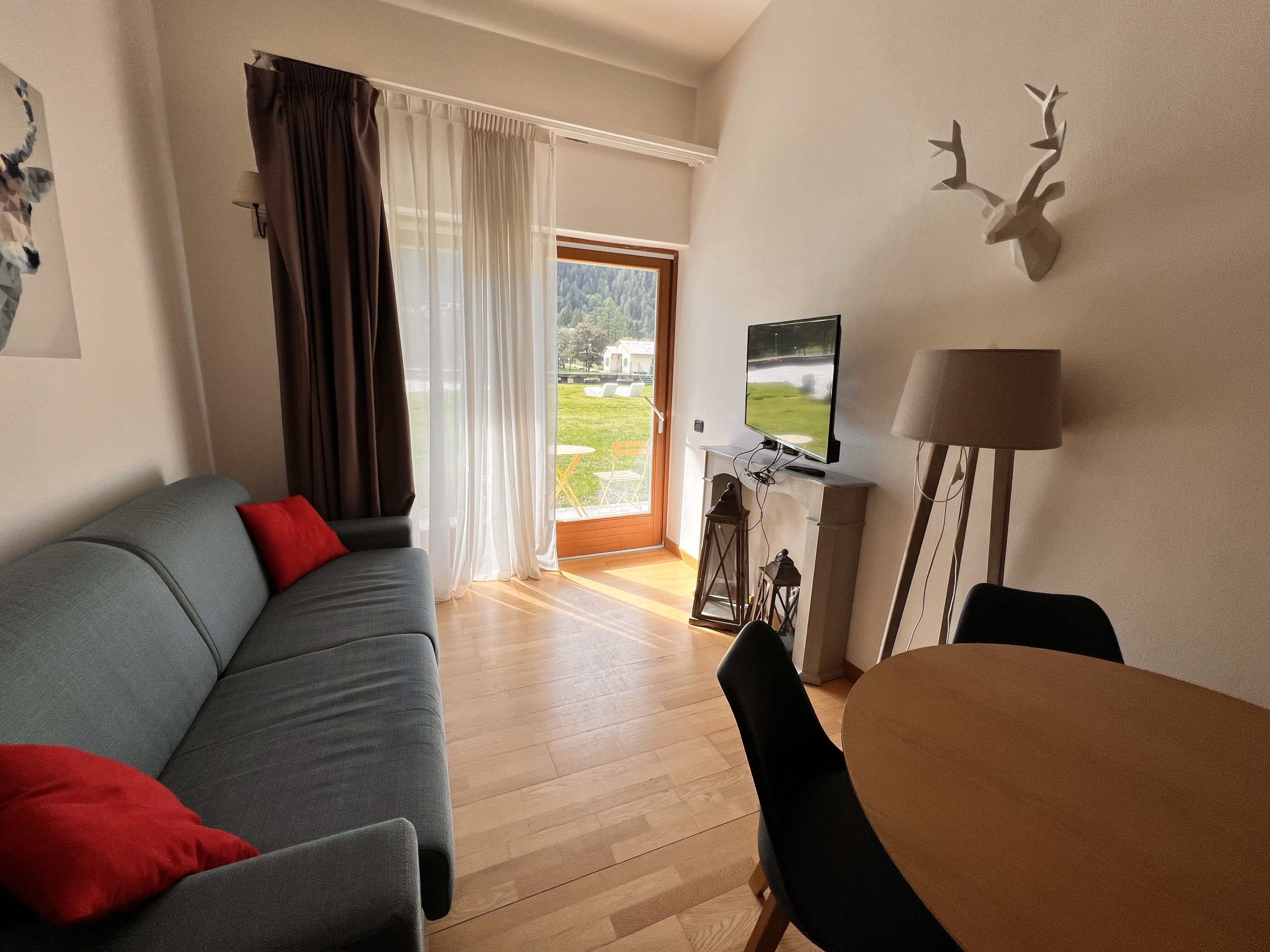 la struttura è molto bella e in posizione ottima, vicino al paese e ai percorsi pedonali. L'appartamento era delizioso e con tutti i comfort necessari e ambienti puliti e ben organizzati. La struttura offre numerose facilities (lavanderia, garage coperto, sport. libri, area comune con bar, ....) e i ragazzi della reception sono molto gentili e sempre disponibili.