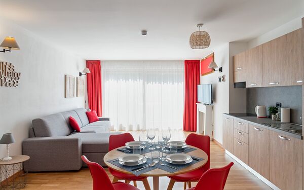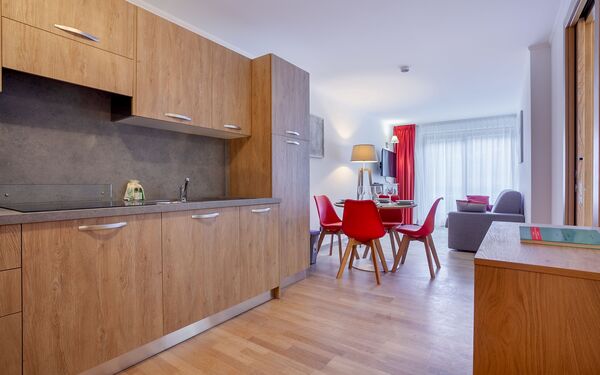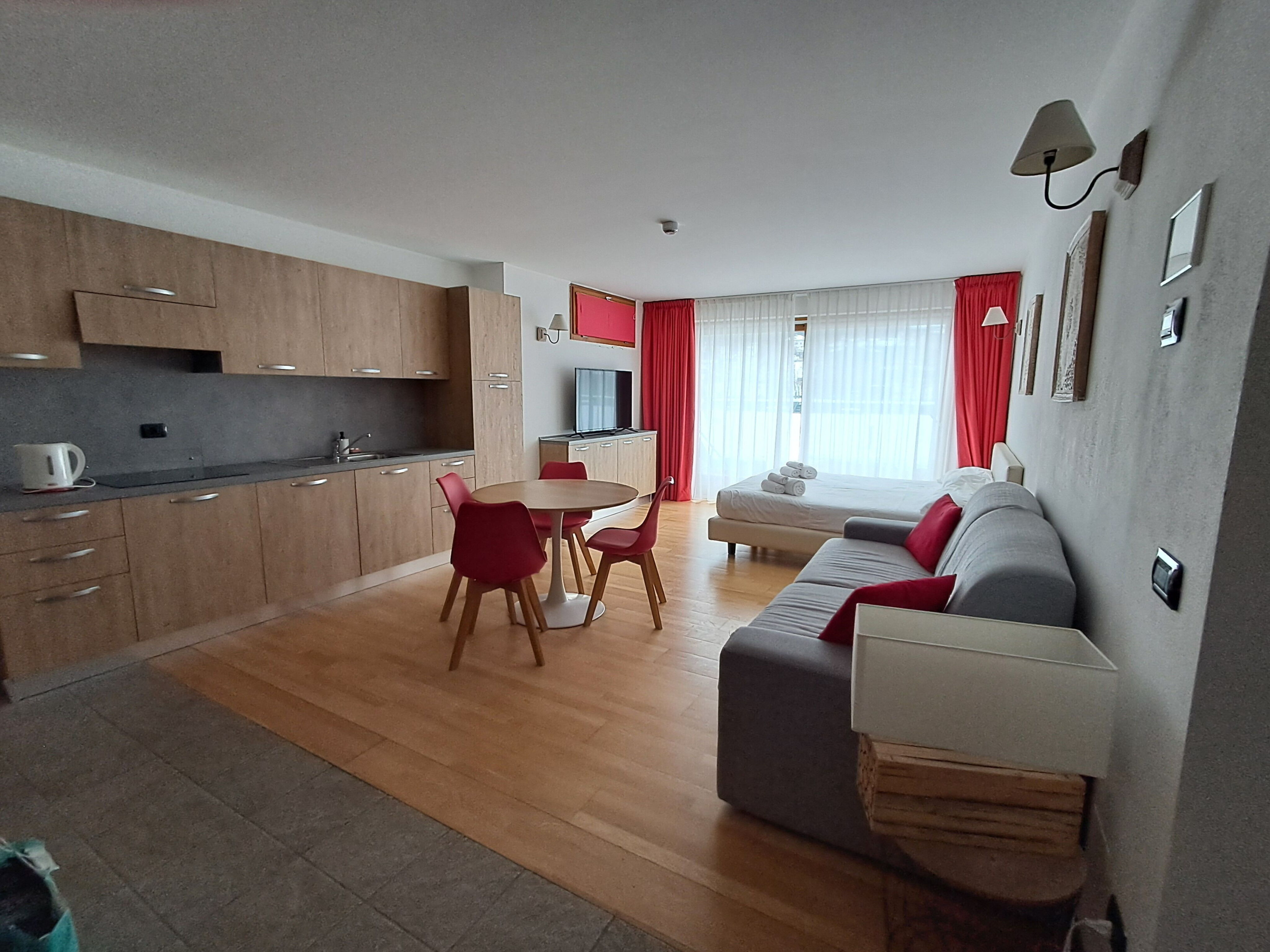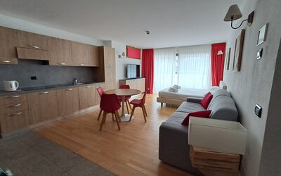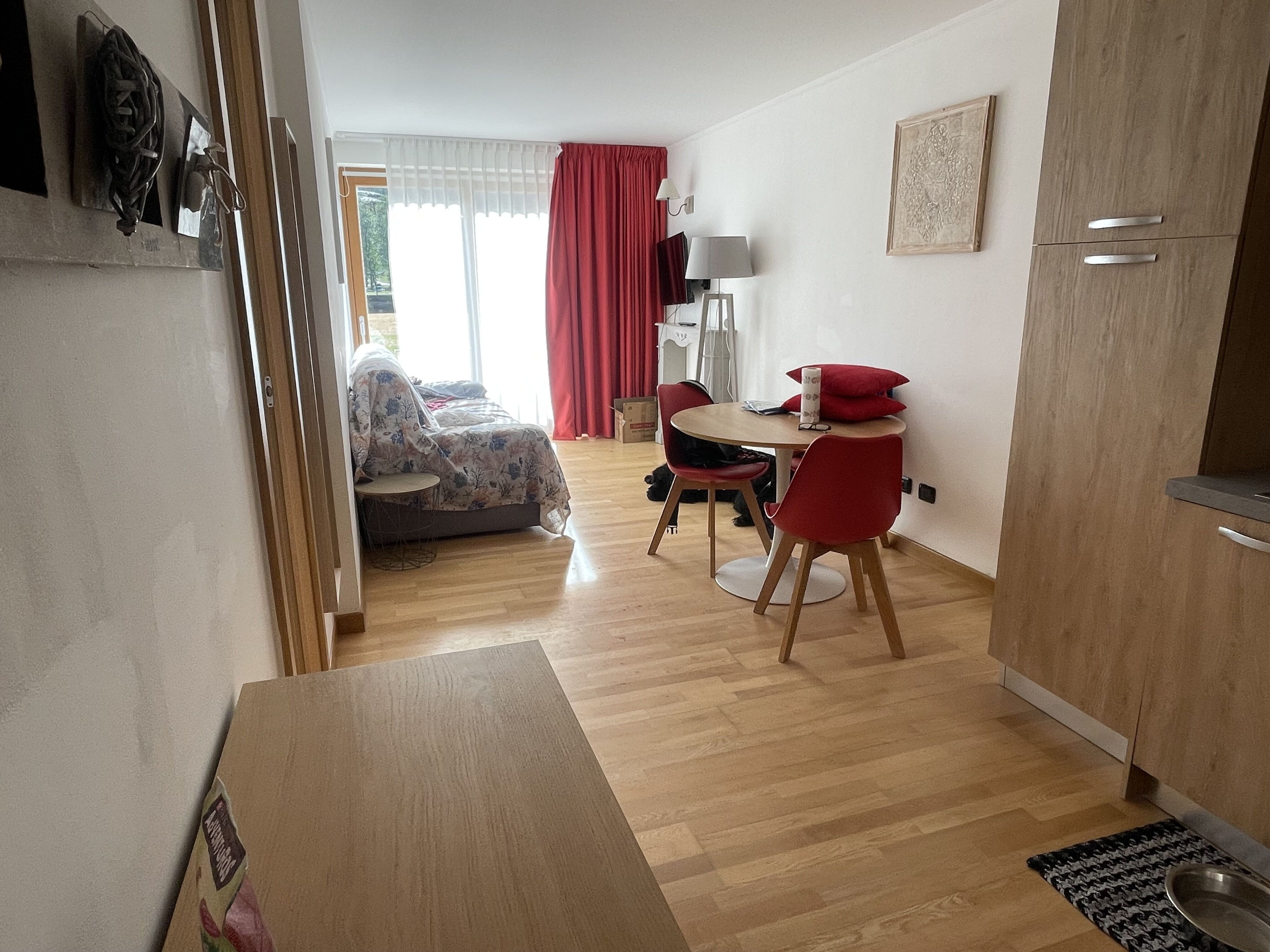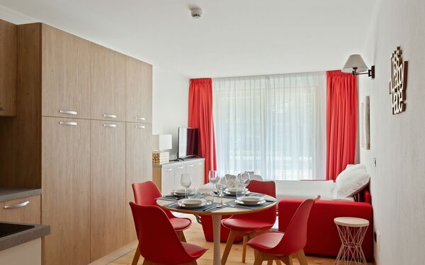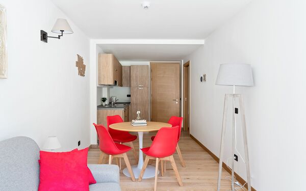 Clean, modern apartment with great heating and hot water. Friendly, helpful staff and good facilities: ski/boot room, car park, sauna and jacuzzi, bar and cafe.