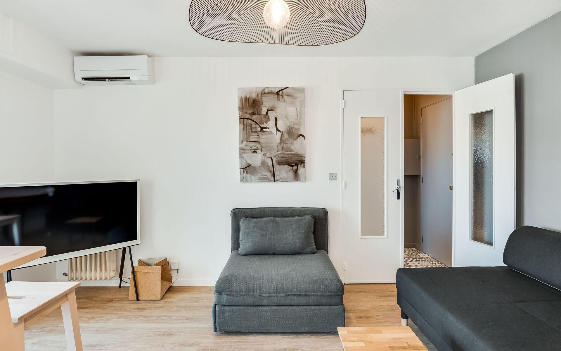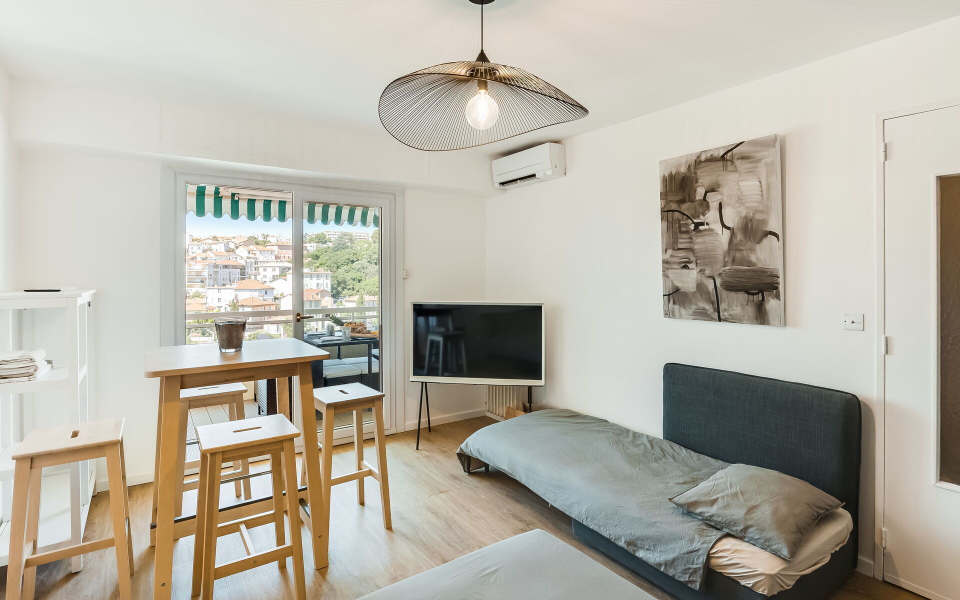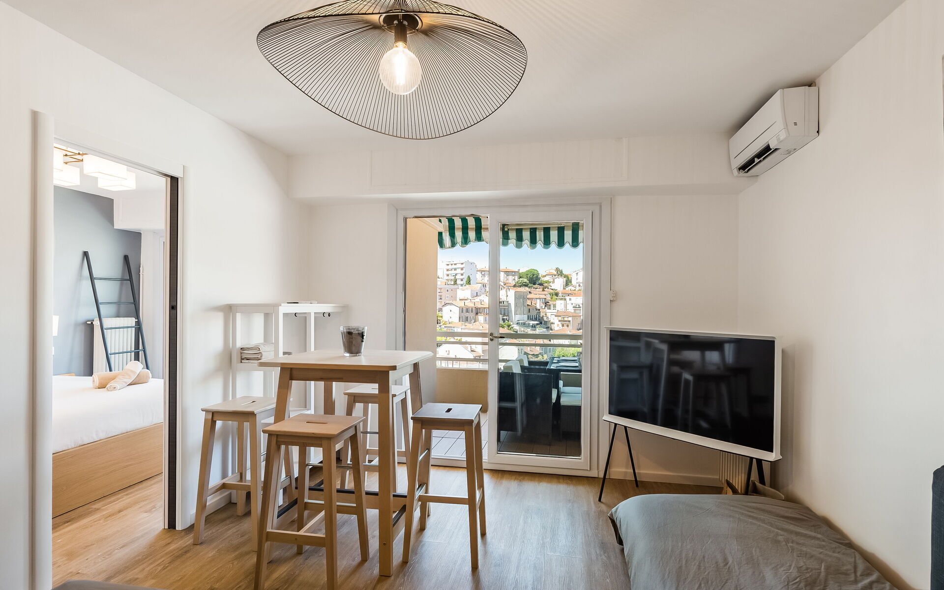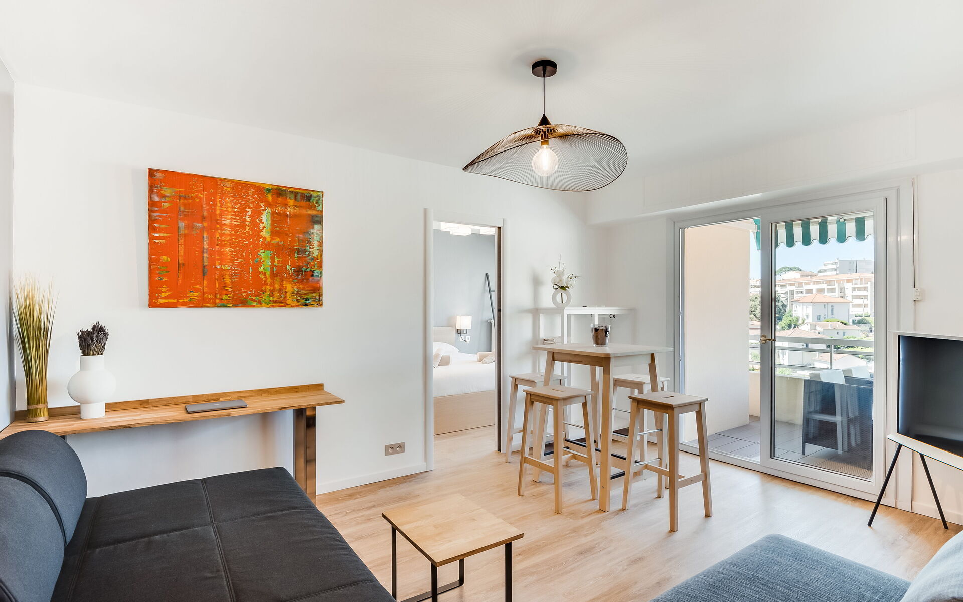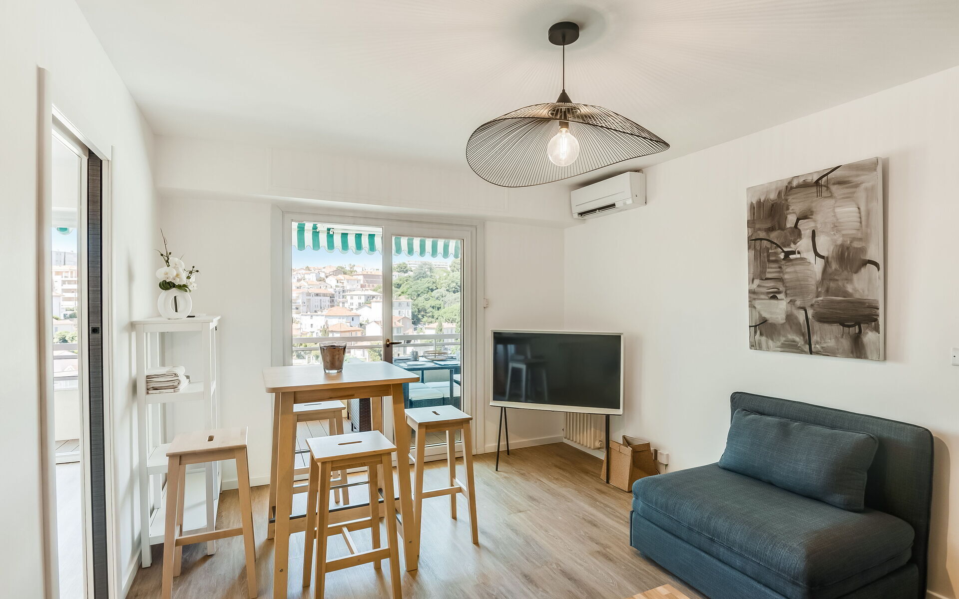 Fully renovated in a bright, contemporary style, this Cannes apartment is full of sunshine, modern comfort, and beautiful views of the city. This air-conditioned space features a lovely terrace where you can enjoy your breakfast each morning, gaze out across Petit Juas, and open a bottle of wine before heading out for the evening, as well as a wonderfully central location within walking distance of beaches, the Cannes Film Festival, and La Croisette.