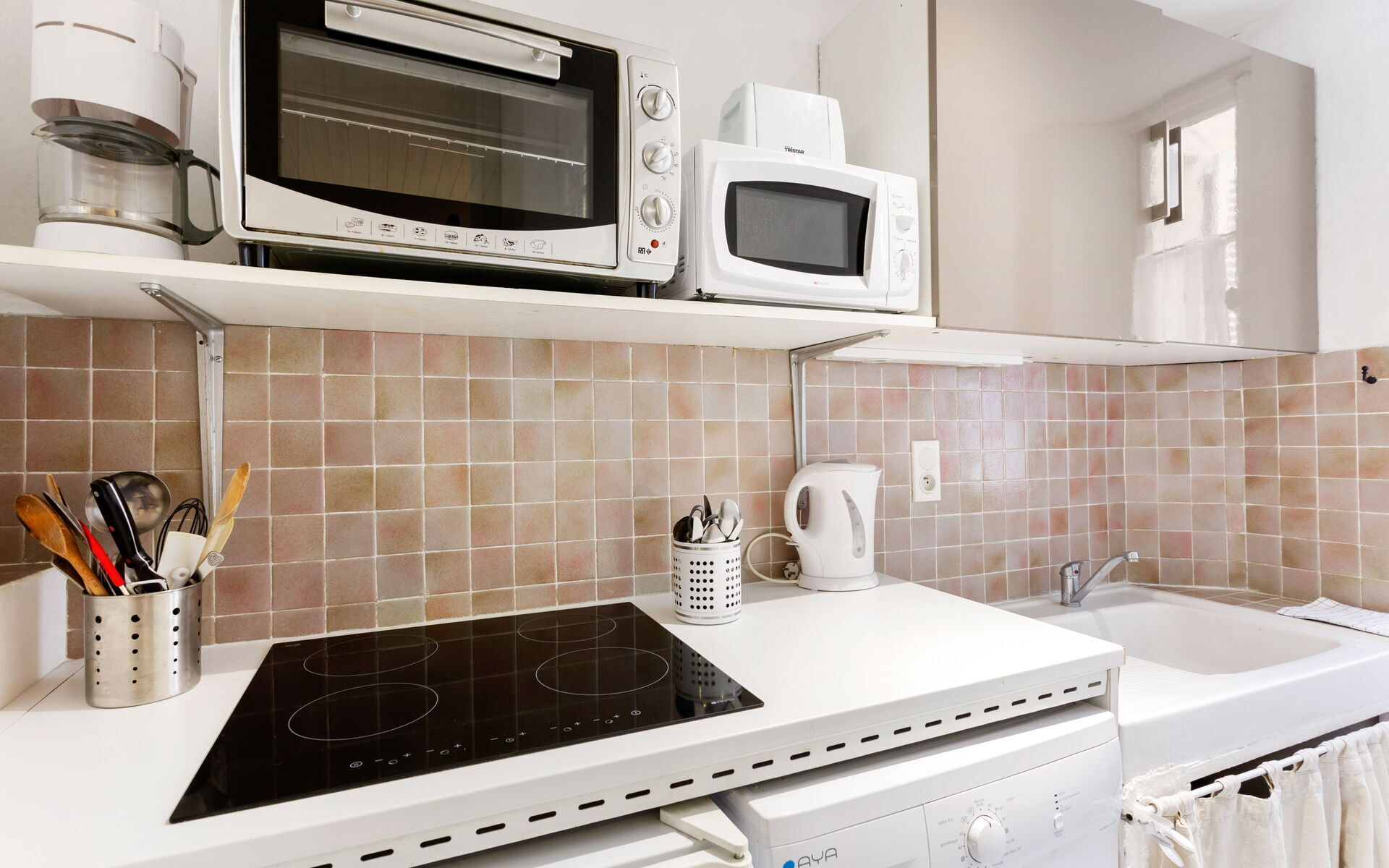 Kitchen : Open Kitchen with fridge + kettle + toaster + Coffee machine + microwave