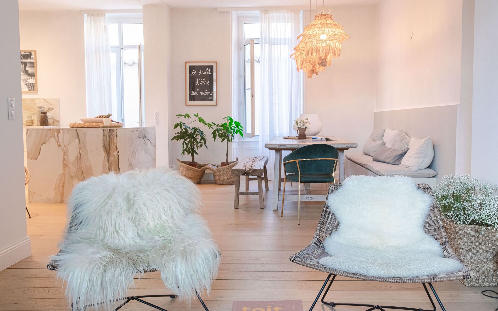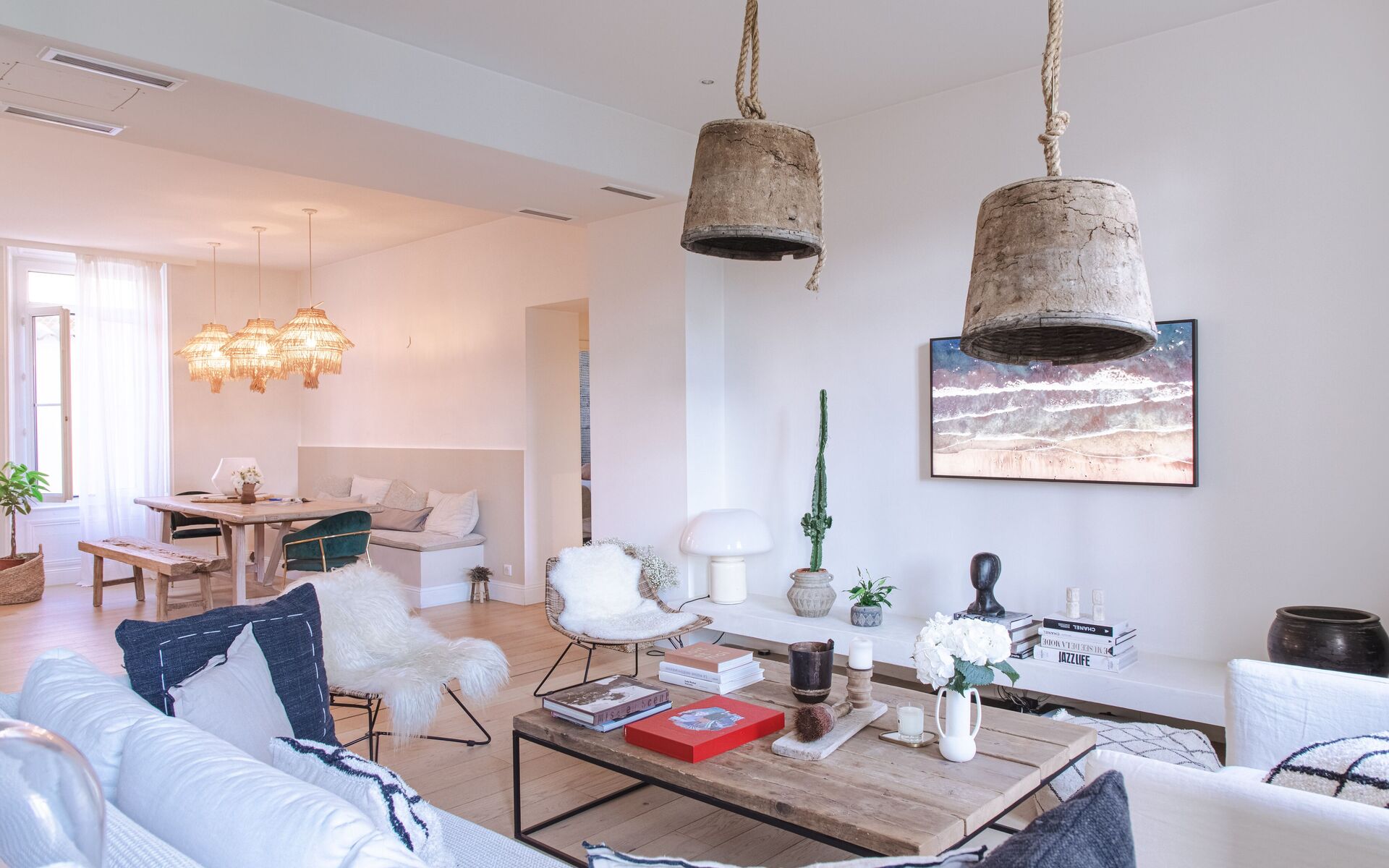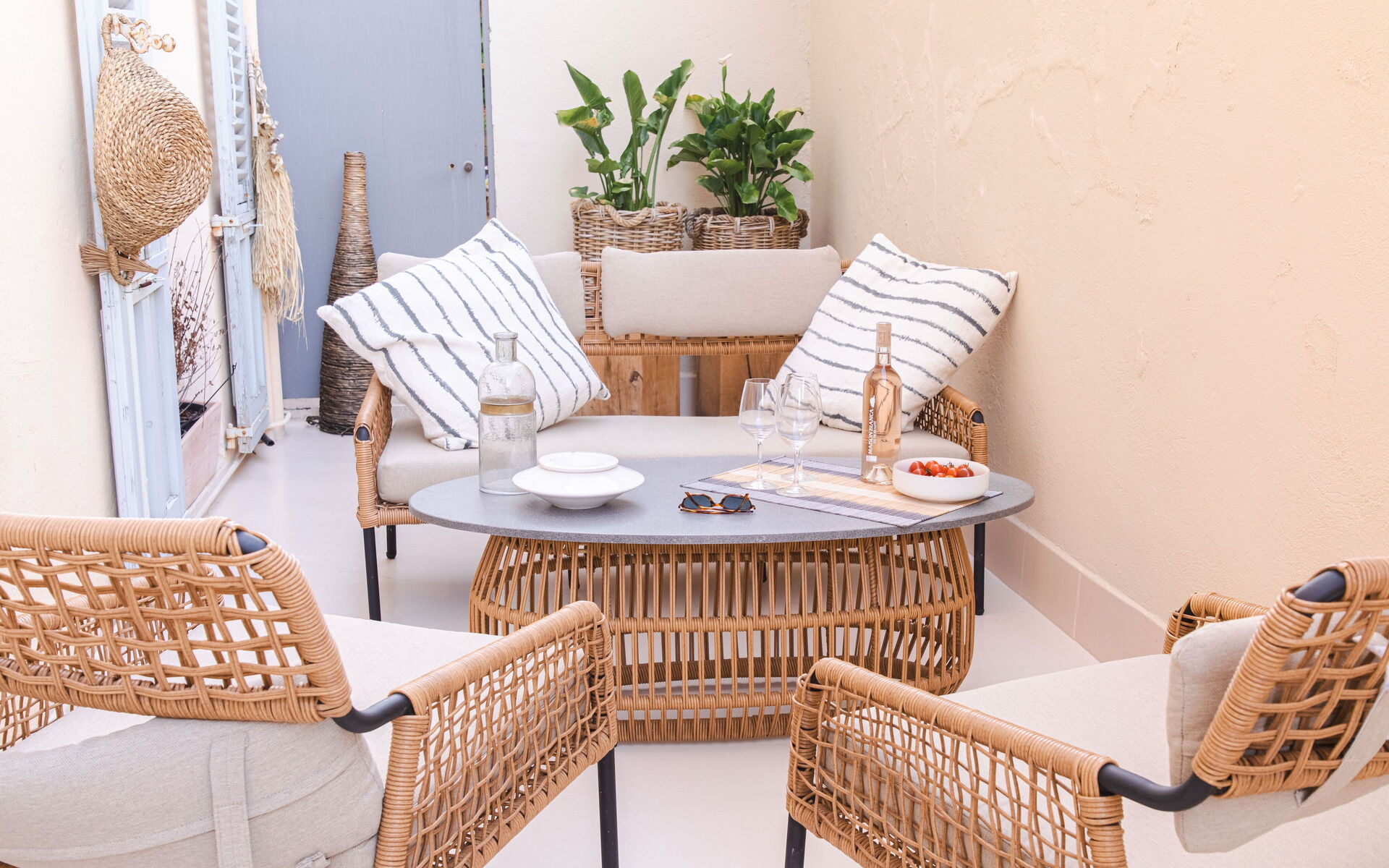 - Living room opening onto the beautiful sunny terrace + flat-screen TV + dining area