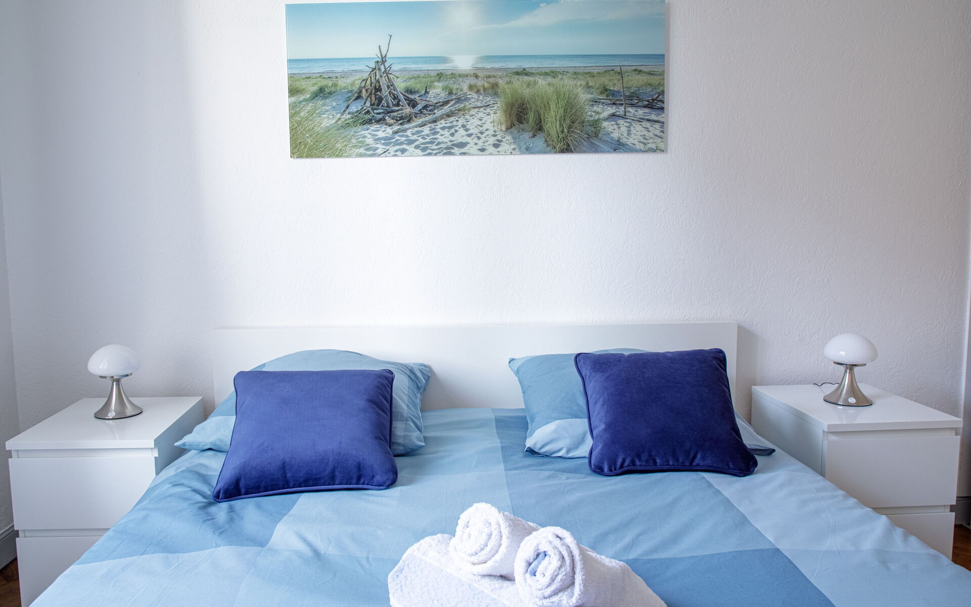 - Bedroom 1: Queen size bed (160 x 200) + balcony with sea view