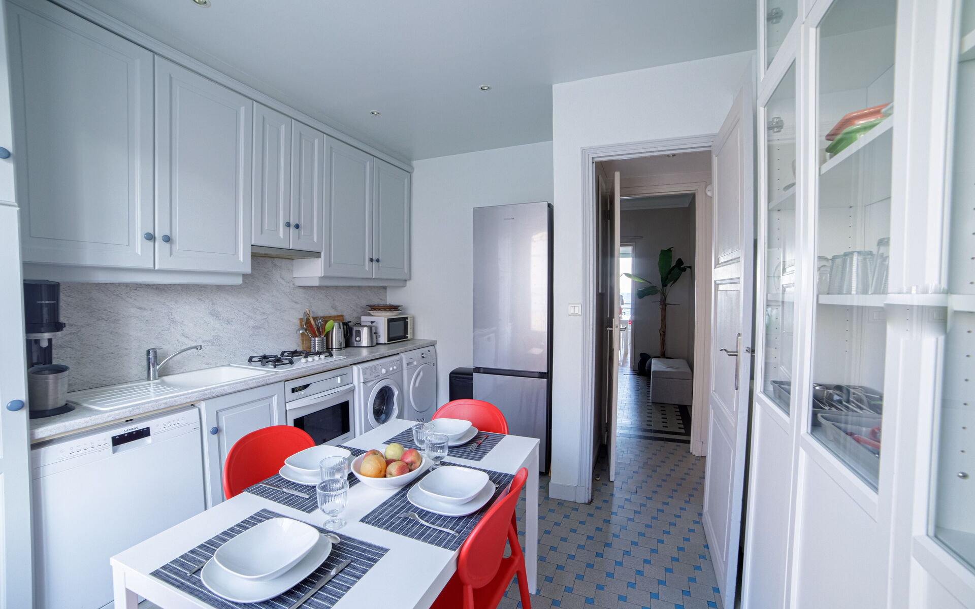 - Kitchen : fridge + kettle + toaster + microwave + Nespresso machine + dishwasher