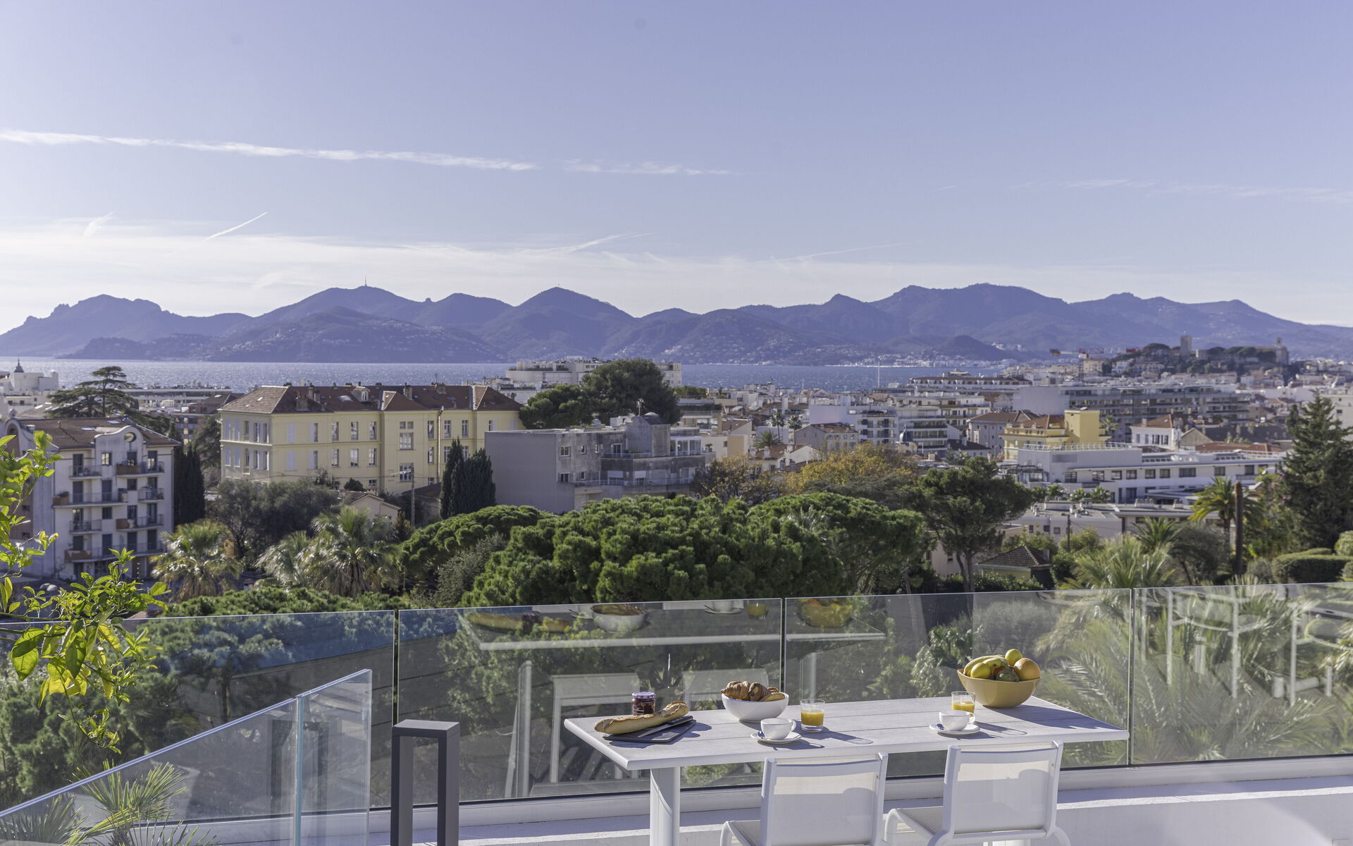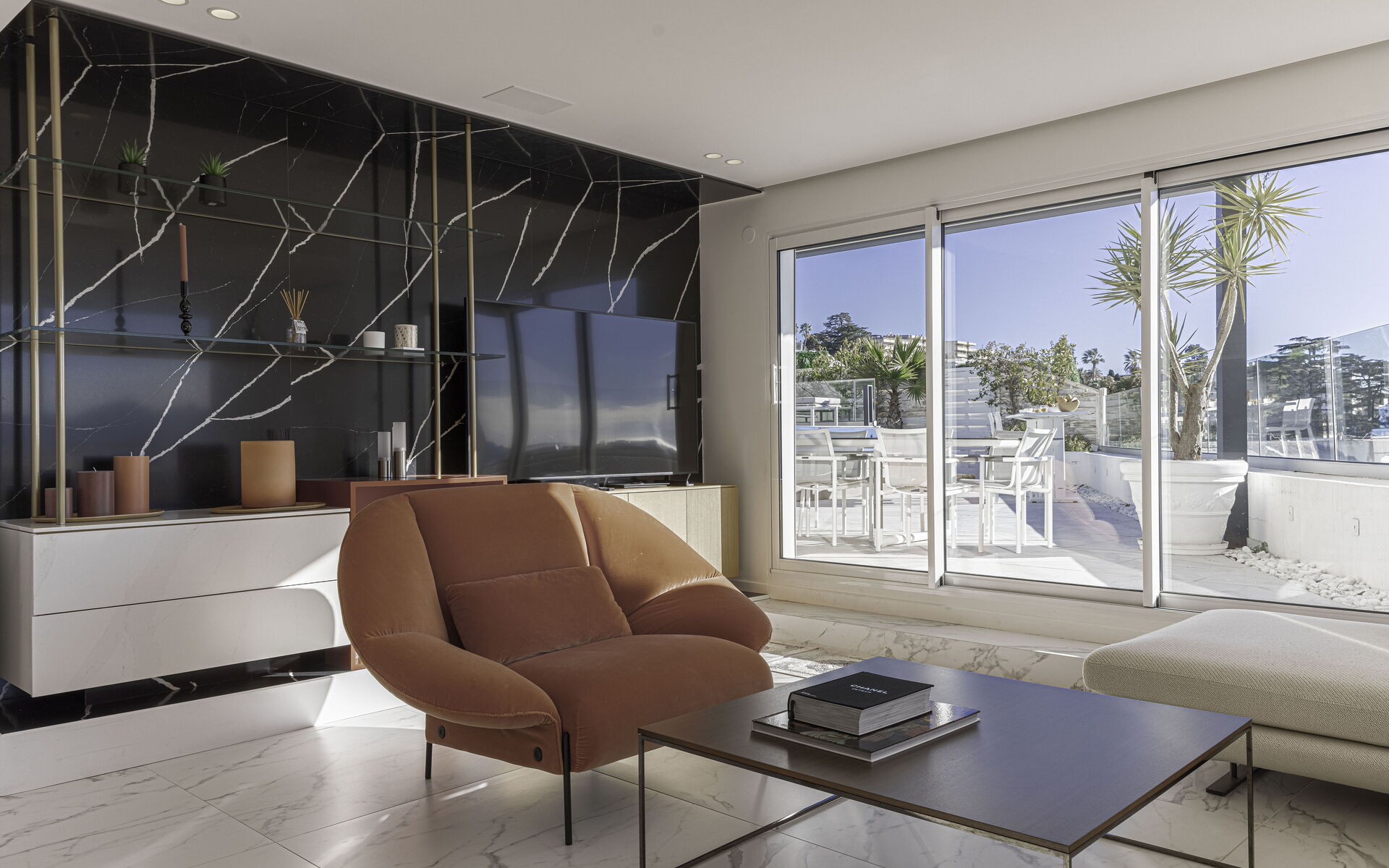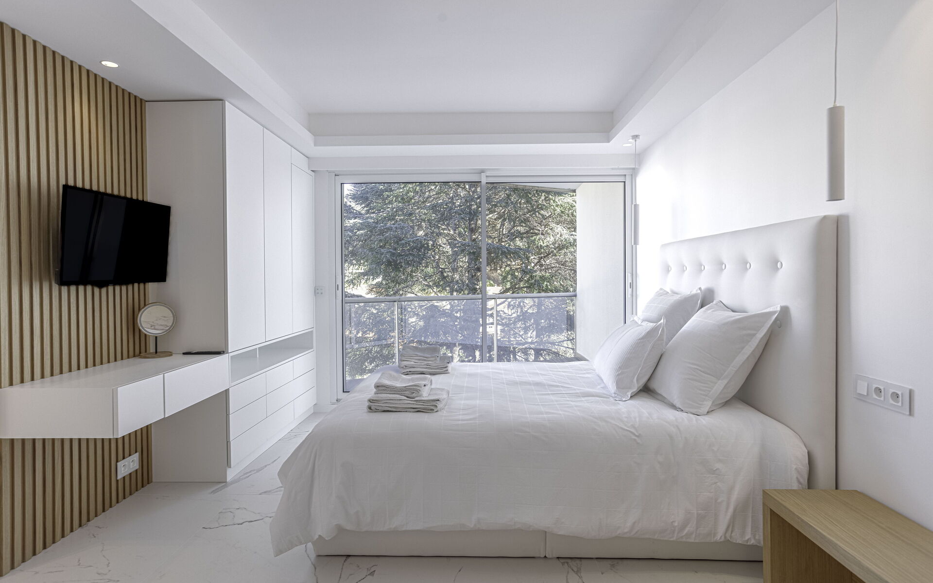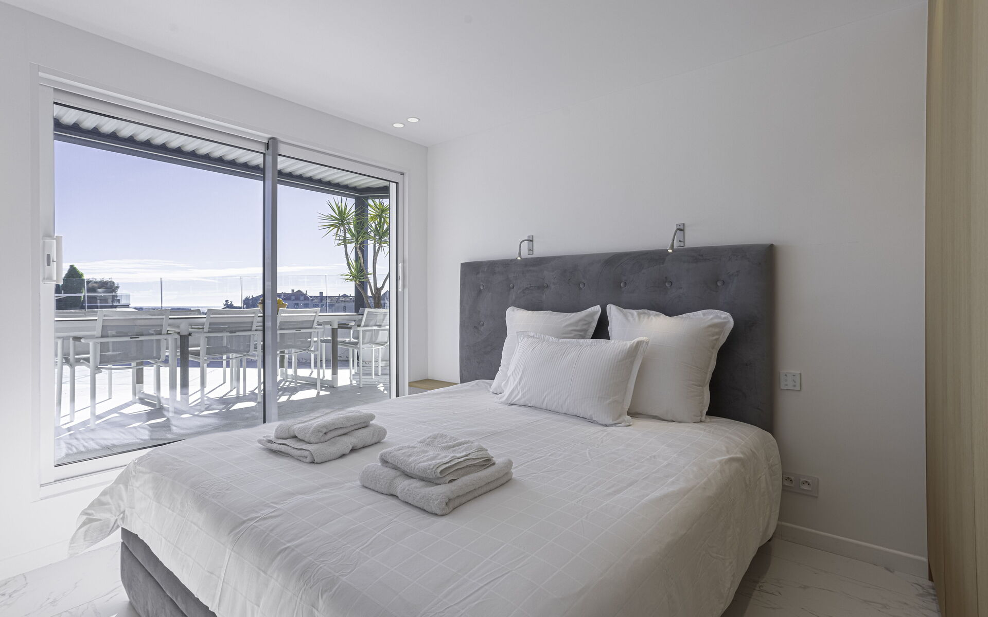 South-facing bedrooms opening onto the sea view terrace - all with private flat screen TV