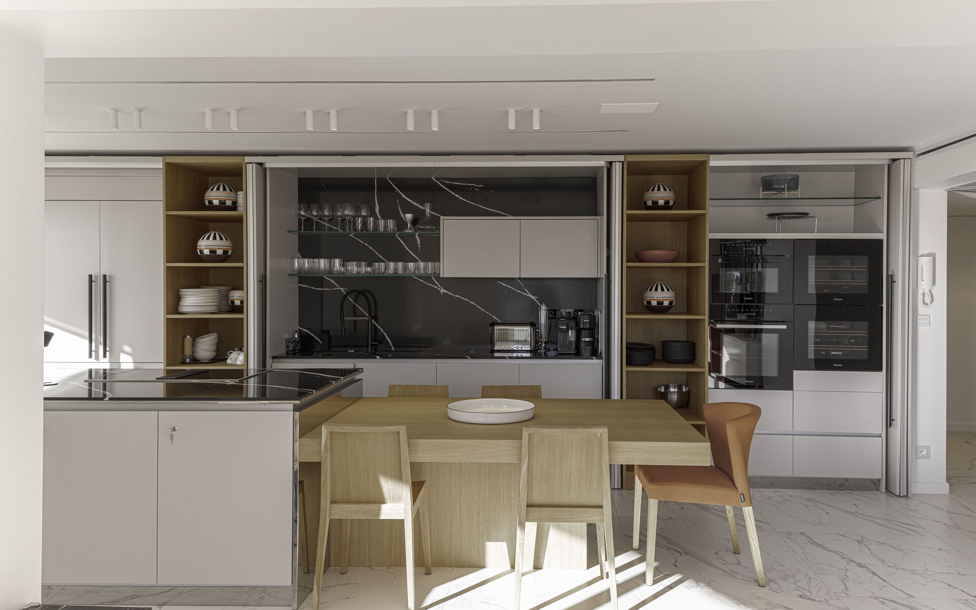 - American kitchen fully equipped with new high-quality equipment: fridge/freezer, hob, microwave, dishwasher, oven, wine cellar. Bar table for 6 people