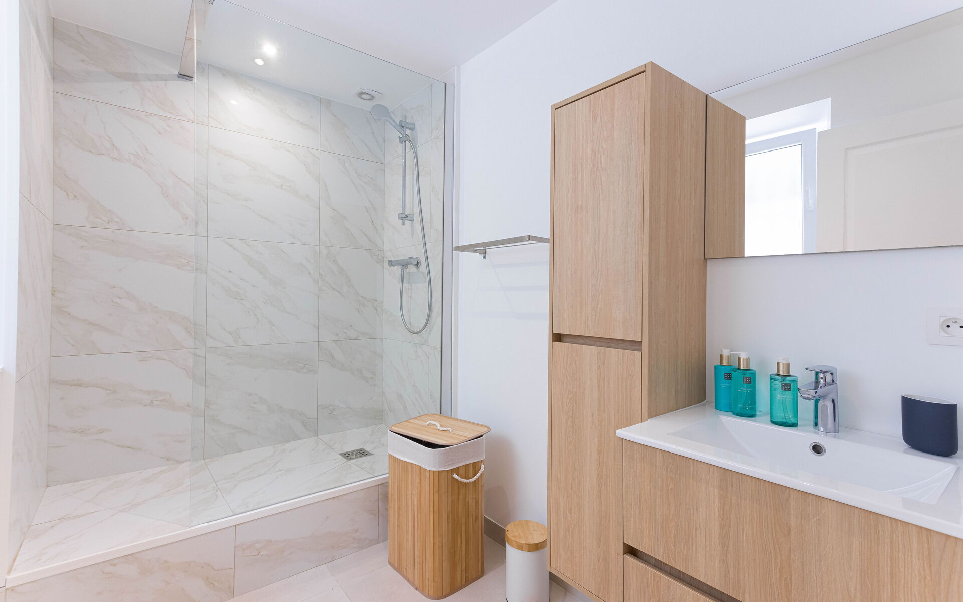 - Bedroom 1: King size bed (180 x 200) with ensuite bathroom (shower)