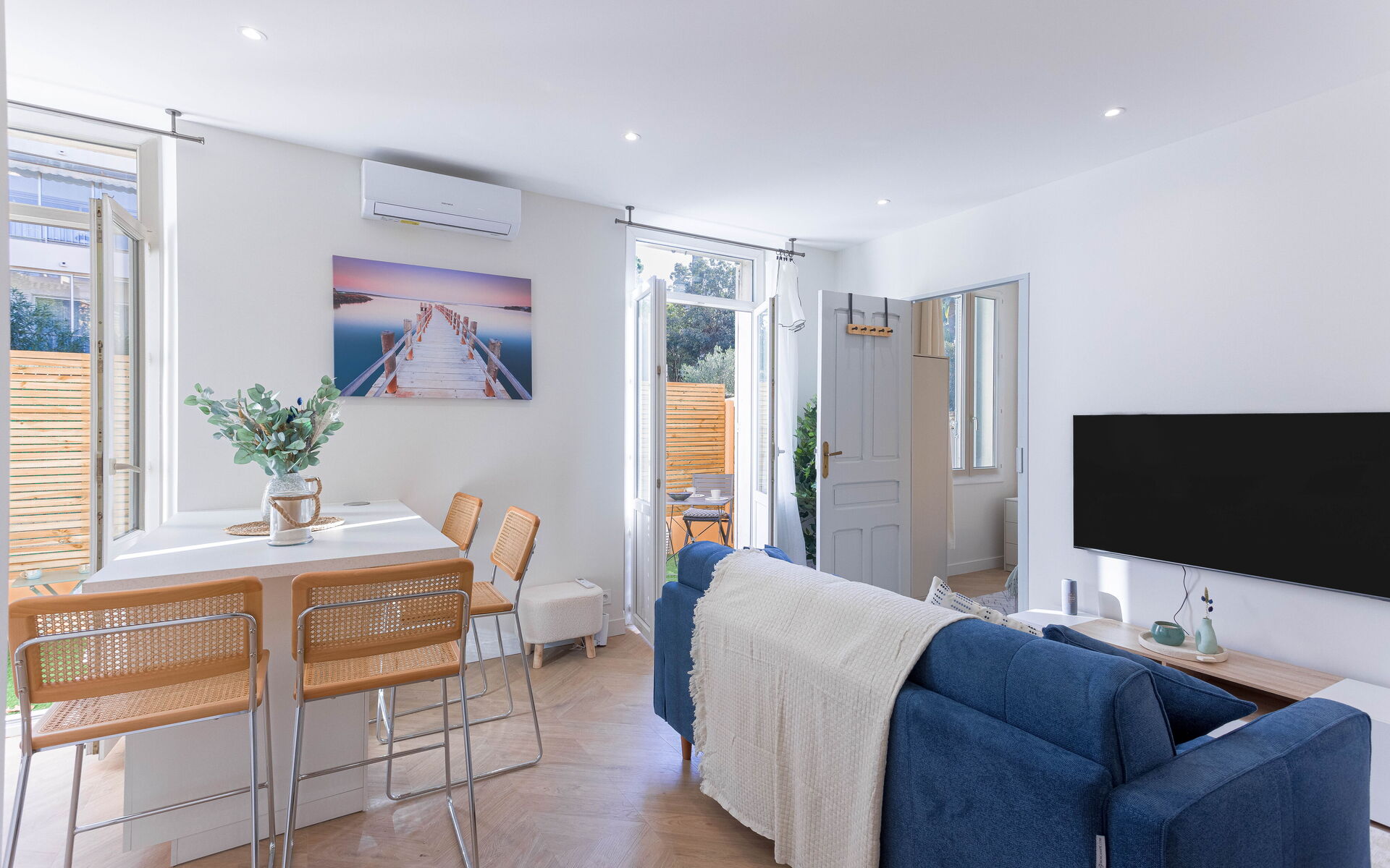 - Living room : flat screen TV + double sofa bed (140*190)