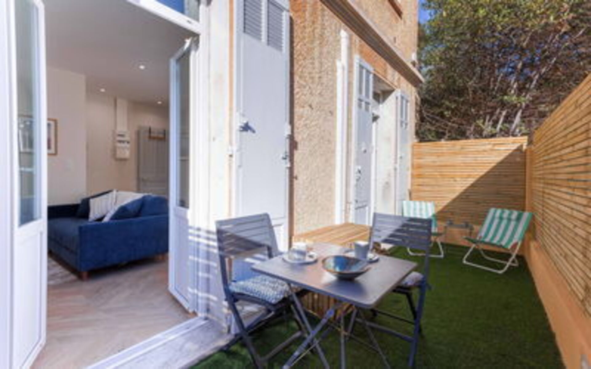 - Sunny Terrace: 15m² with 2 lounge chairs and table for 4
