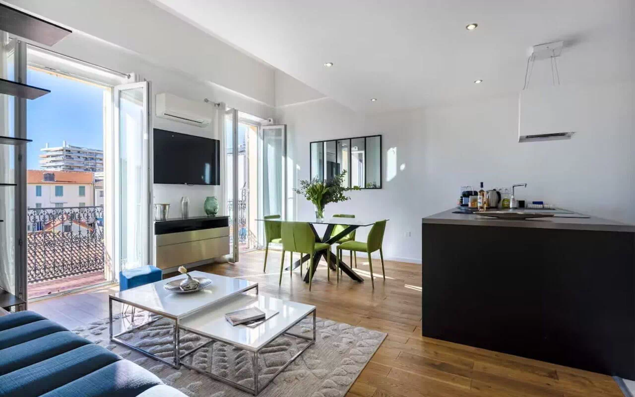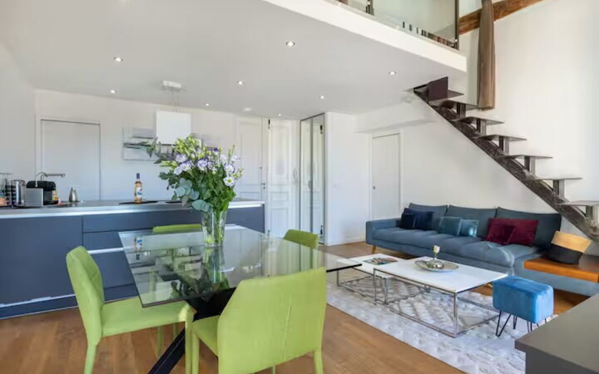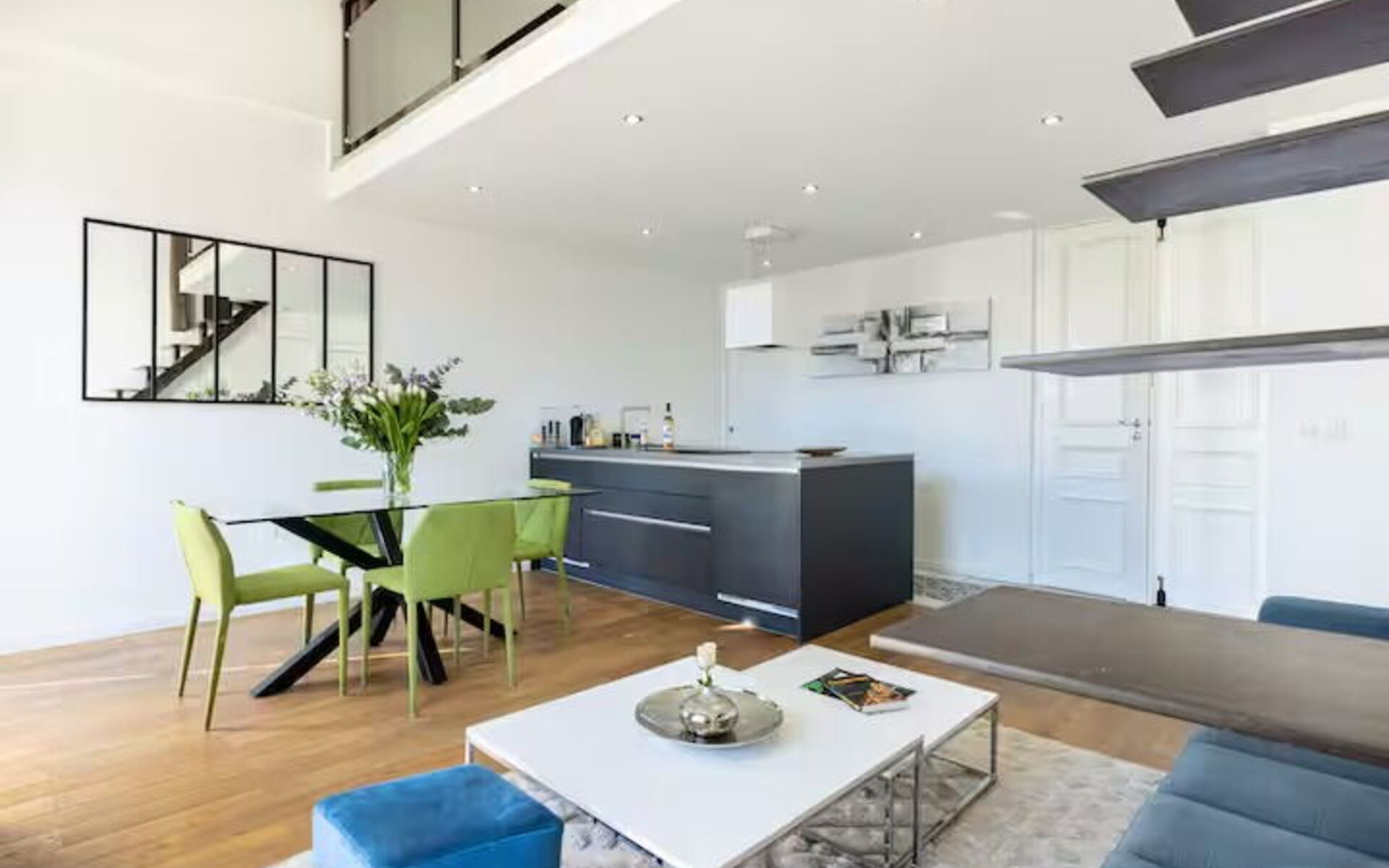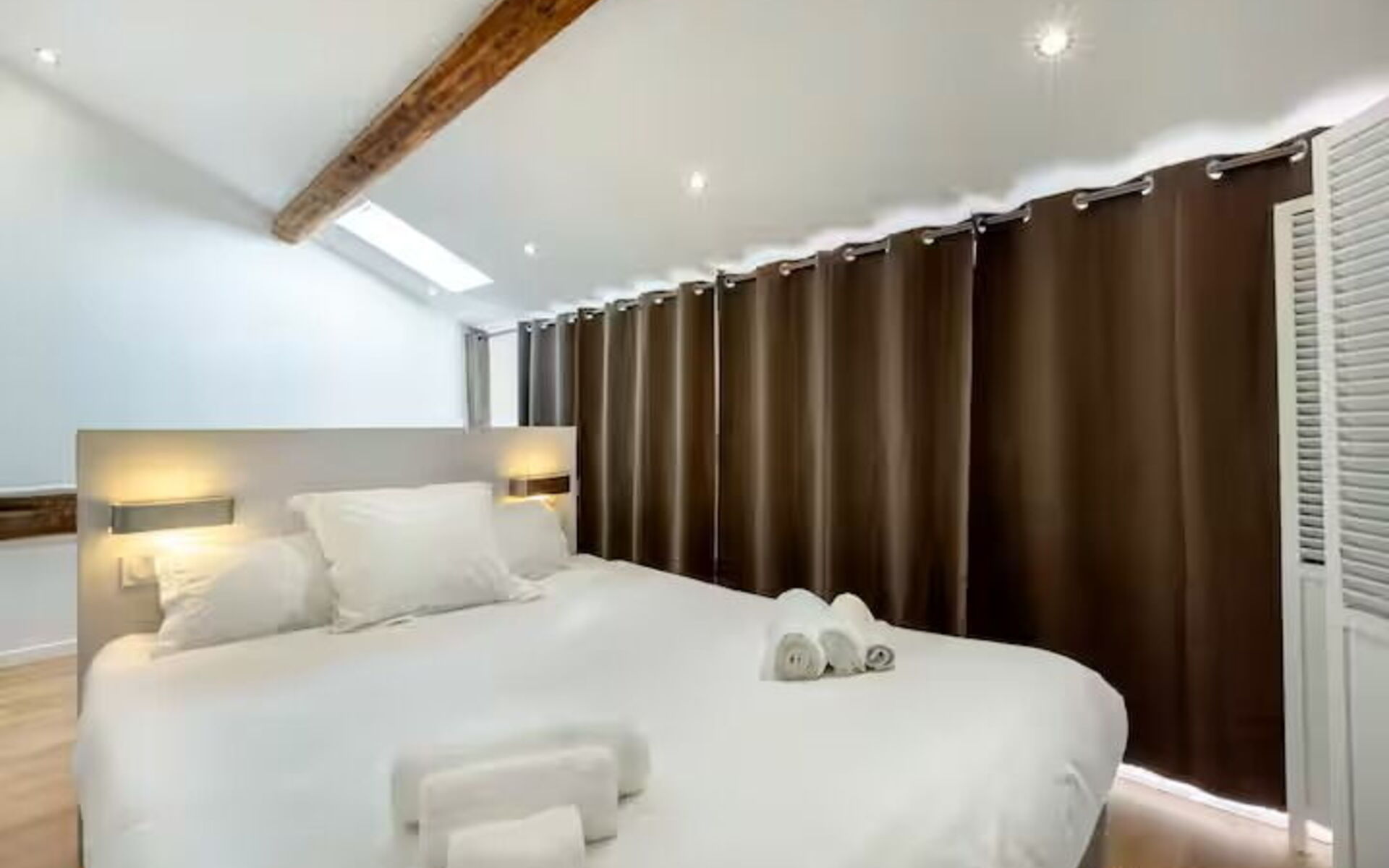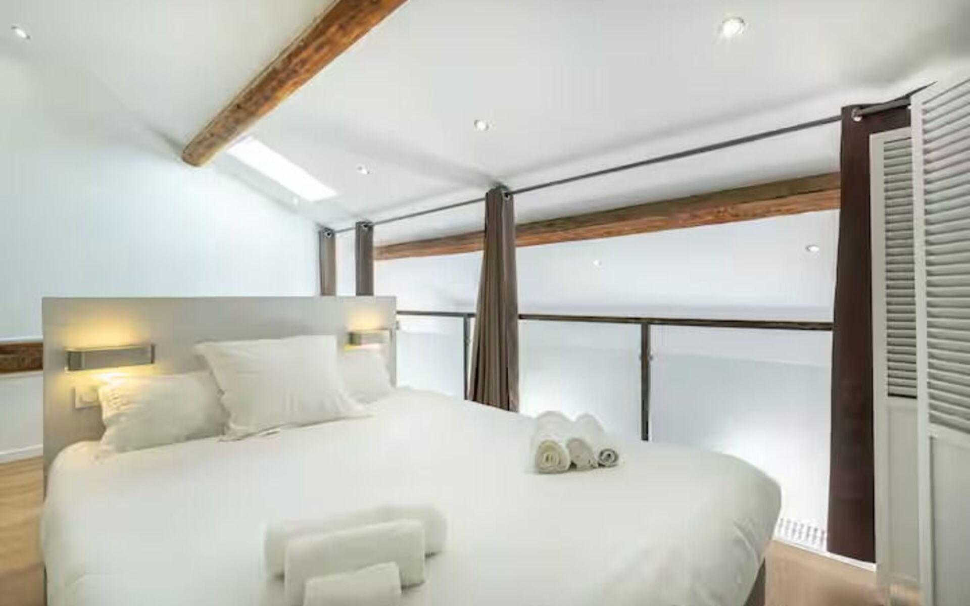 What's nearby: This stunning duplex is located in the center of beautiful Cannes. You won't need a car to visit the city, as both the train station and the bus station are close by. You'll be a quarter-mile stroll from the Palais des Festivals (the site of the Cannes Film Festival) and the port, half a mile northeast of Midi Beach, and three-quarters of a mile west of the beach, seaside promenade, and luxury boutiques of La Croisette. The neighboring Forville Market is open daily, and several excellent restaurants, including Bistrot Gourmand, are steps away.