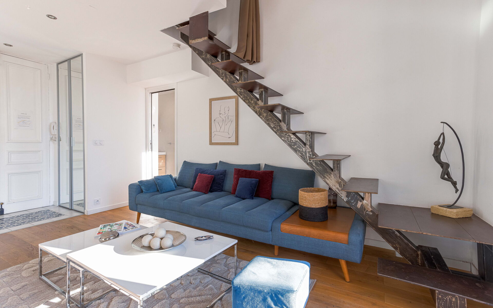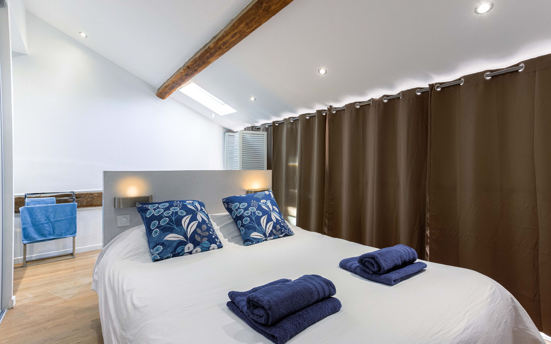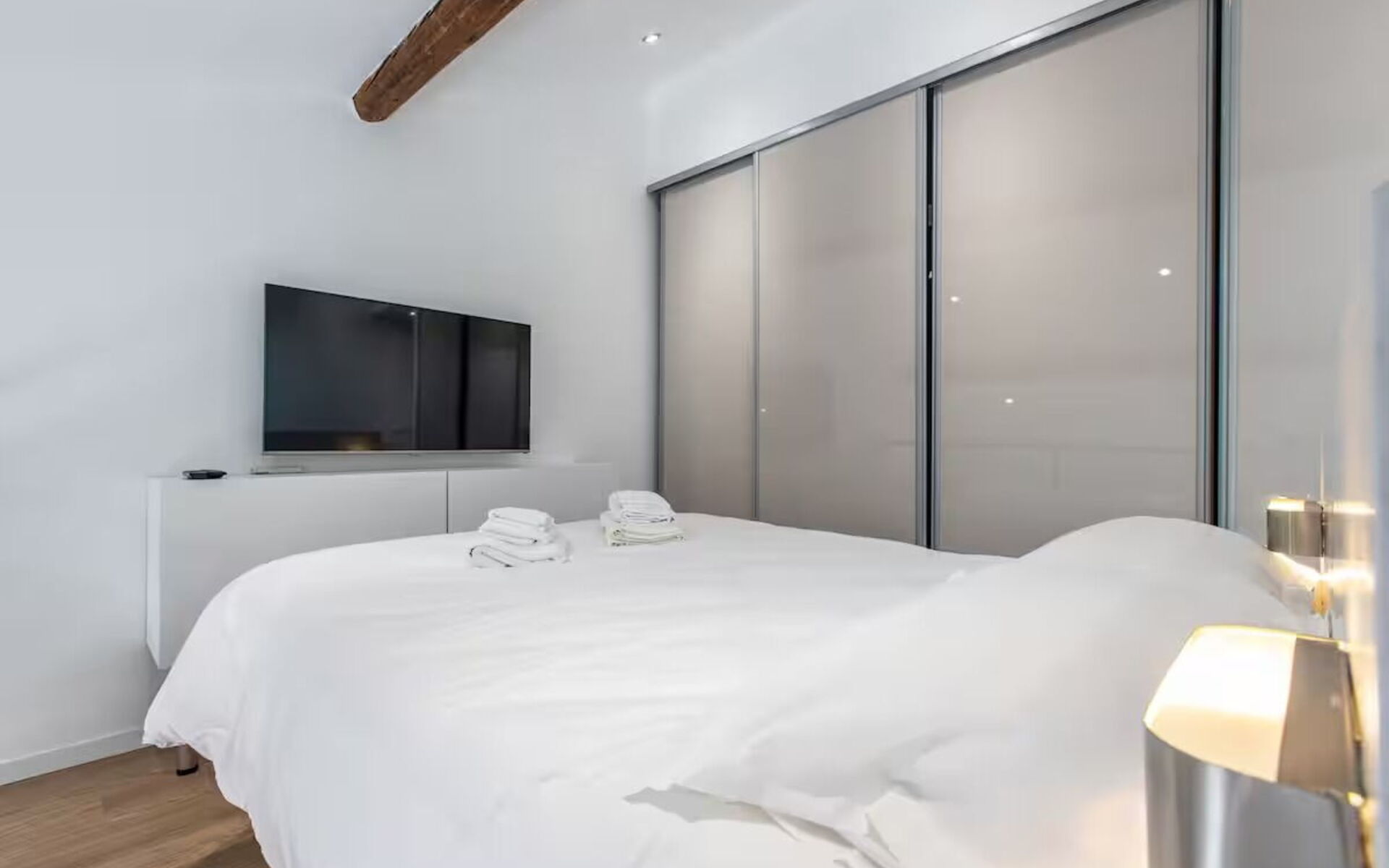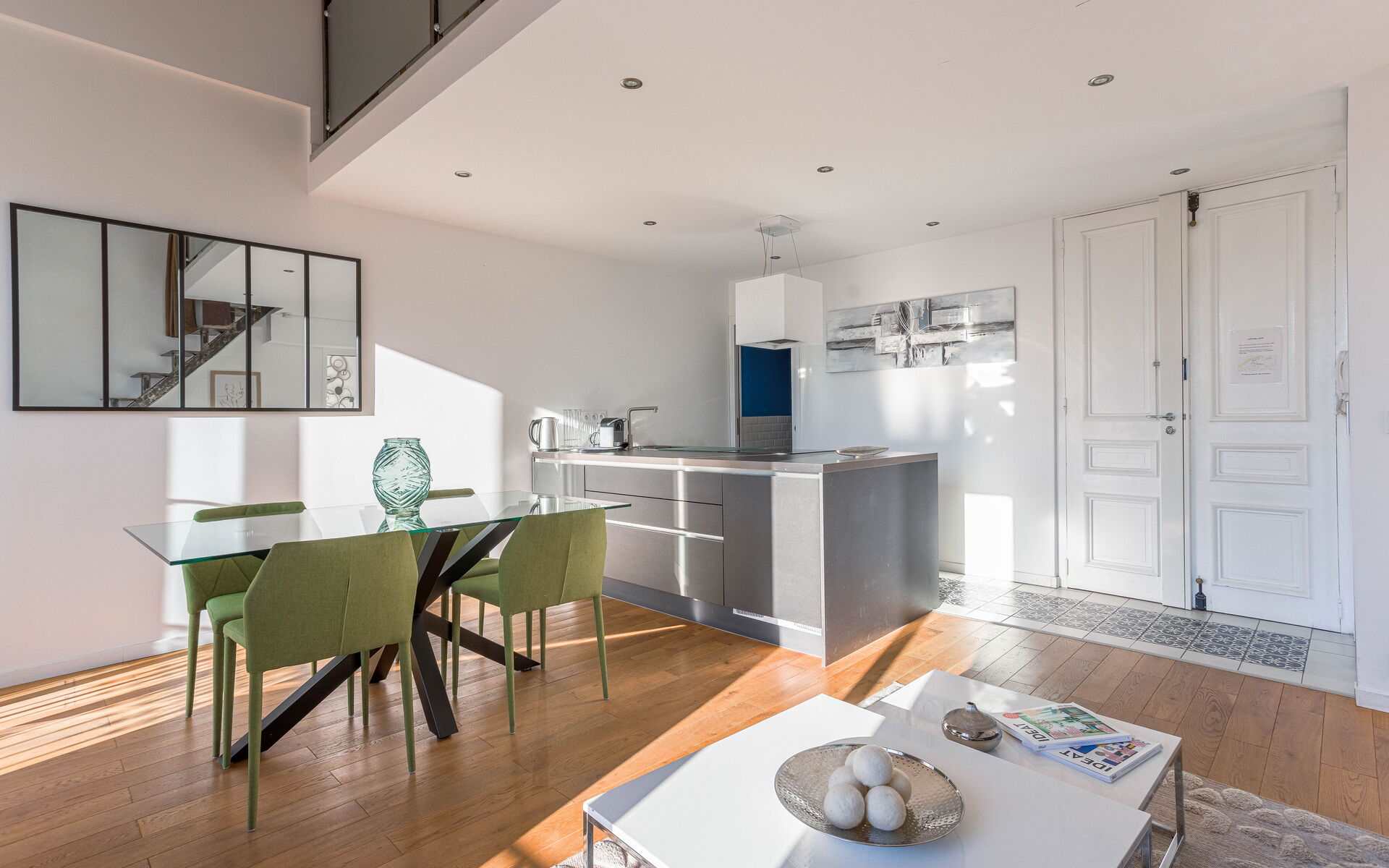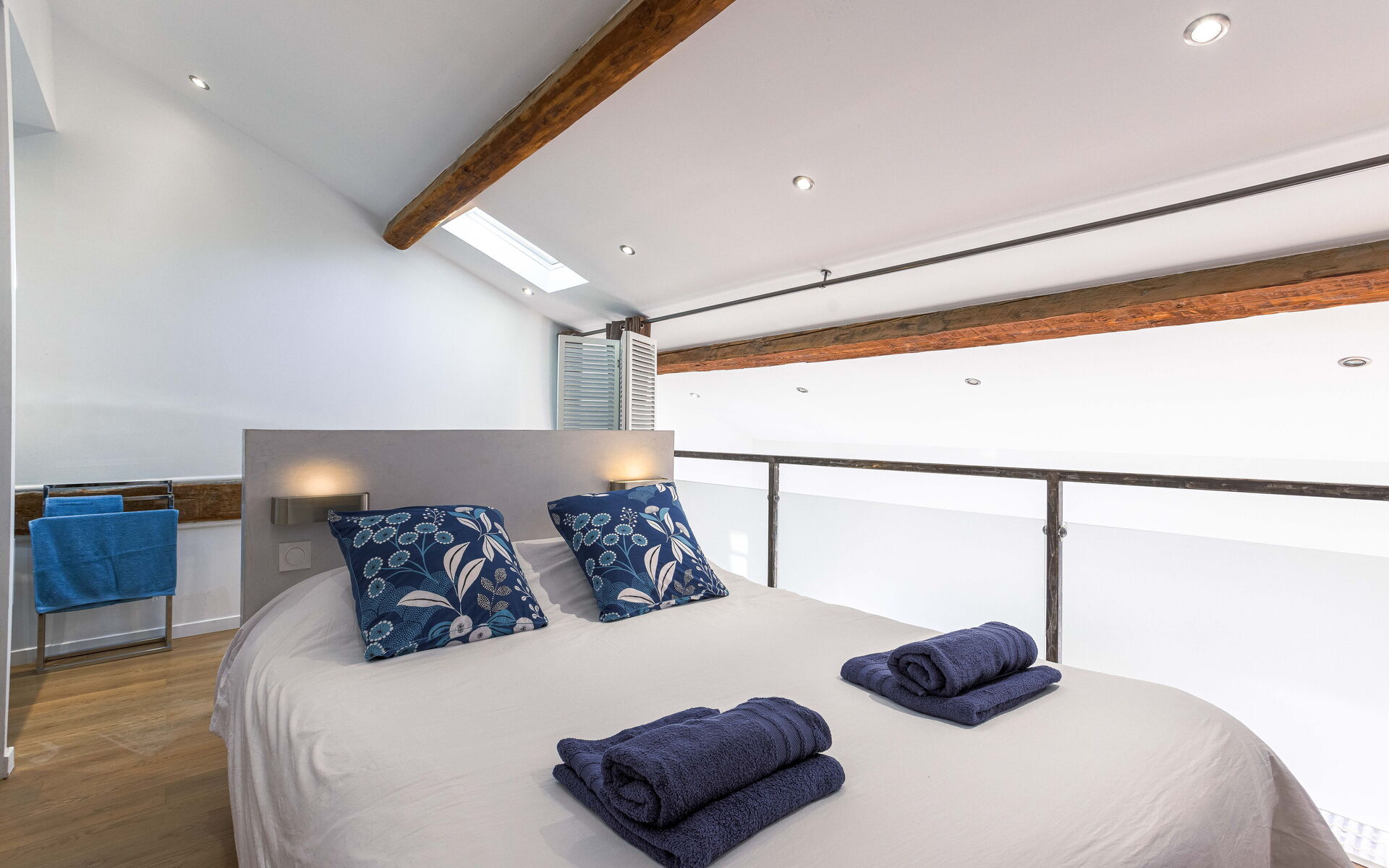 What's nearby: This stunning duplex is located in the center of beautiful Cannes. You won't need a car to visit the city, as both the train station and the bus station are close by. You'll be a quarter-mile stroll from the Palais des Festivals (the site of the Cannes Film Festival) and the port, half a mile northeast of Midi Beach, and three-quarters of a mile west of the beach, seaside promenade, and luxury boutiques of La Croisette. The neighboring Forville Market is open daily, and several excellent restaurants, including Bistrot Gourmand, are steps away.