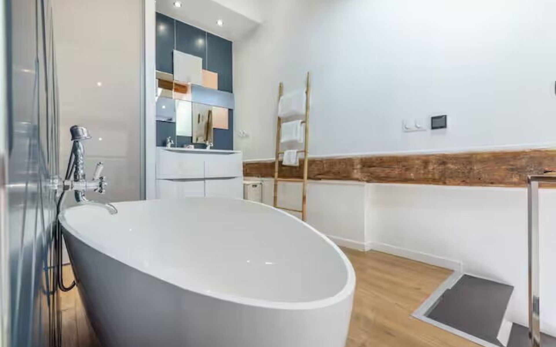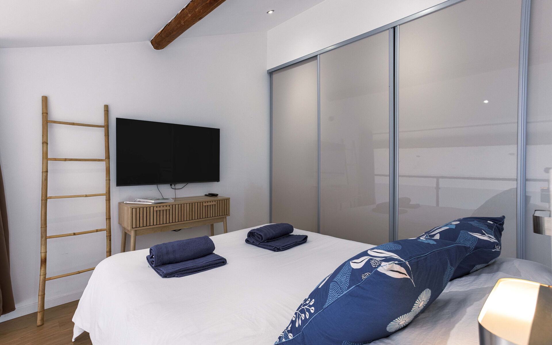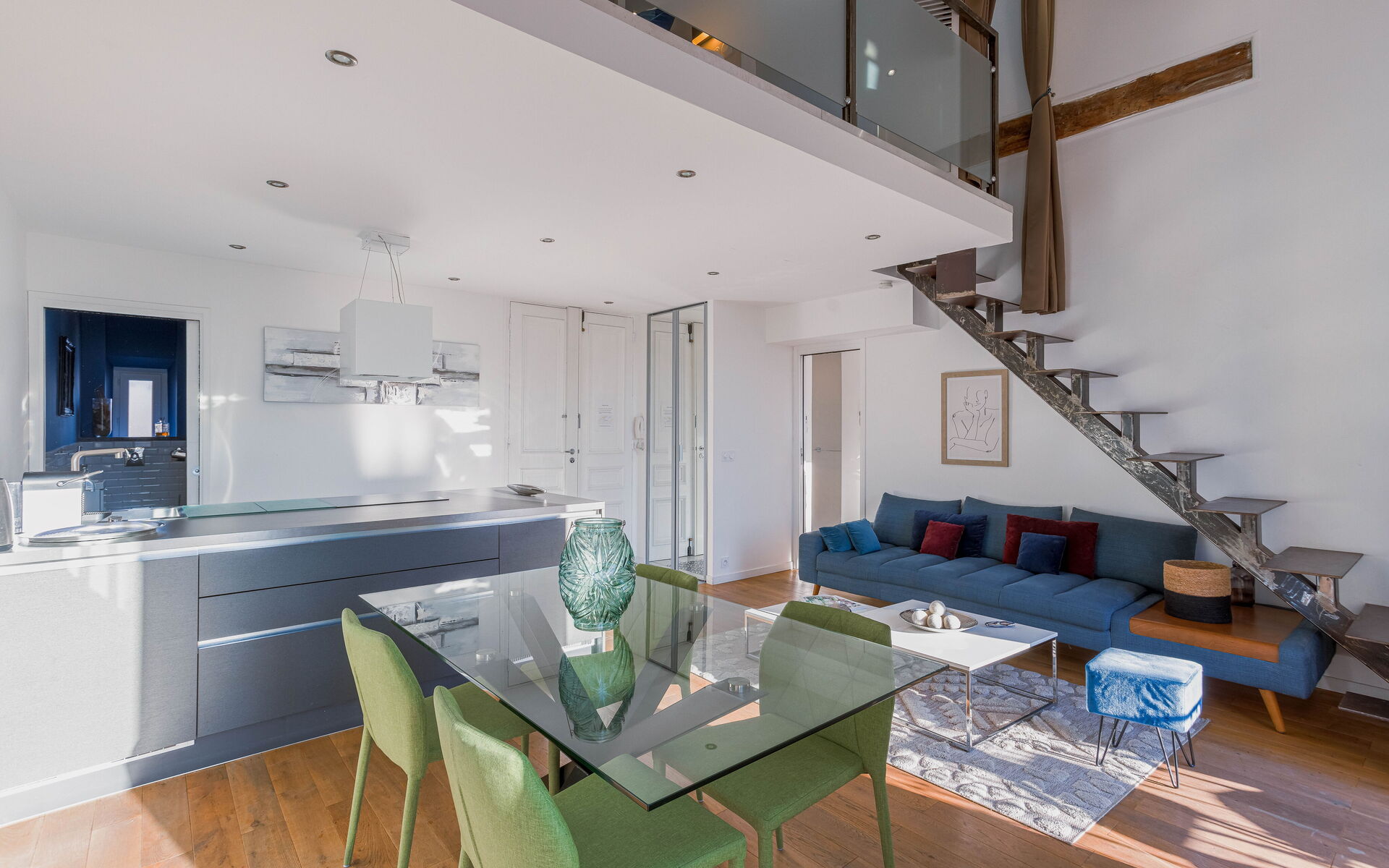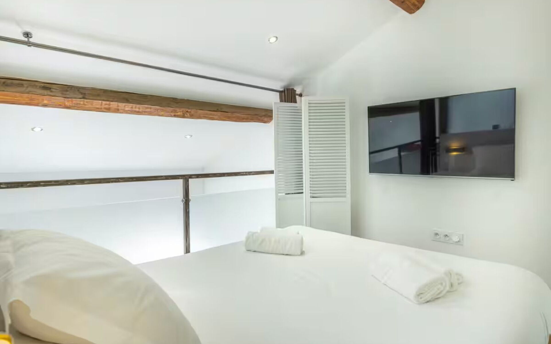 What's nearby: This stunning duplex is located in the center of beautiful Cannes. You won't need a car to visit the city, as both the train station and the bus station are close by. You'll be a quarter-mile stroll from the Palais des Festivals (the site of the Cannes Film Festival) and the port, half a mile northeast of Midi Beach, and three-quarters of a mile west of the beach, seaside promenade, and luxury boutiques of La Croisette. The neighboring Forville Market is open daily, and several excellent restaurants, including Bistrot Gourmand, are steps away.