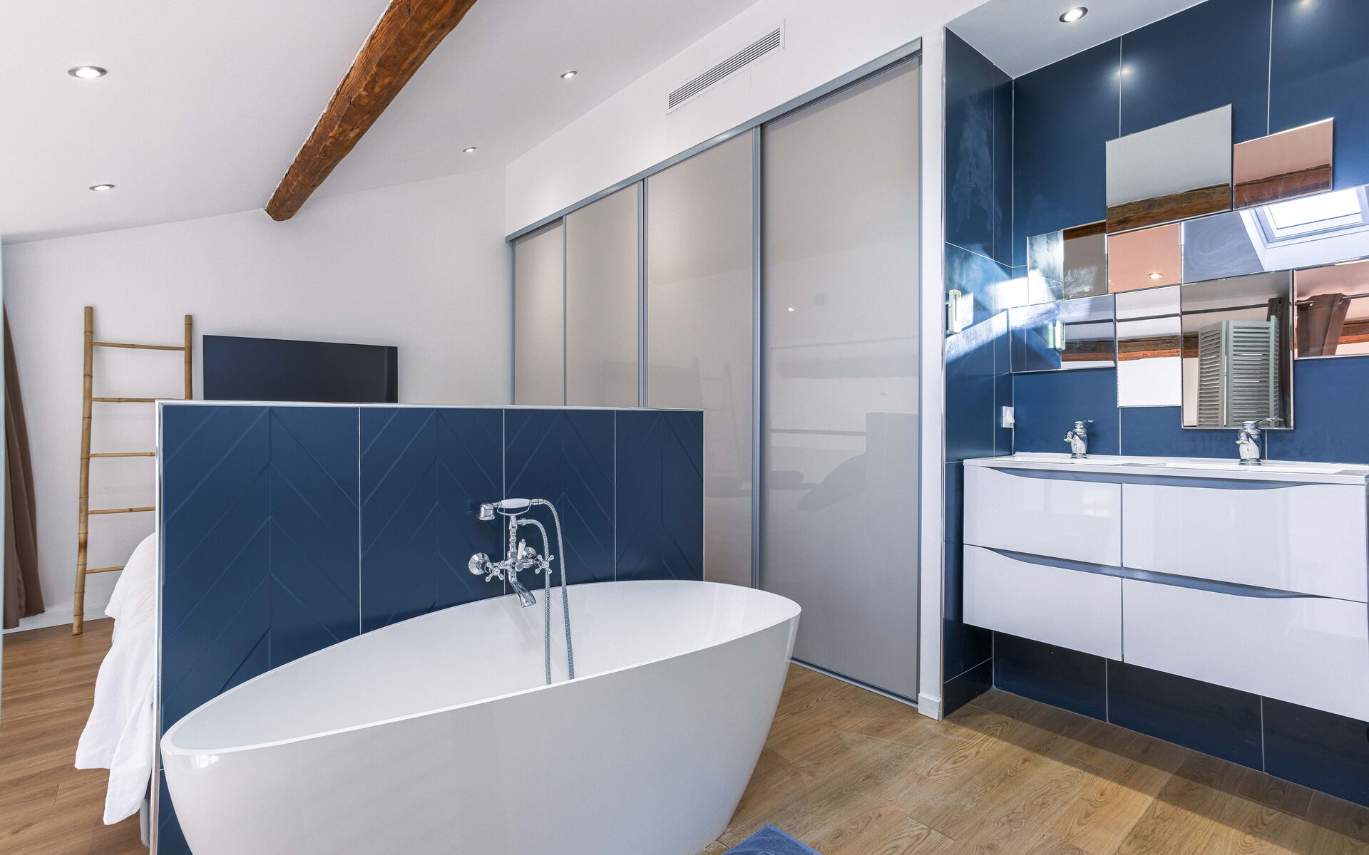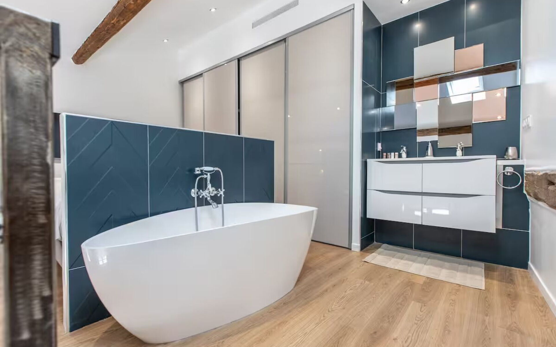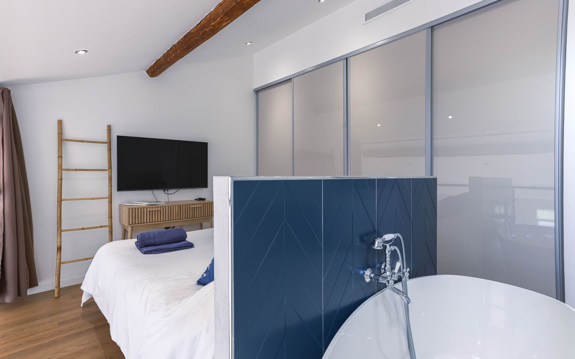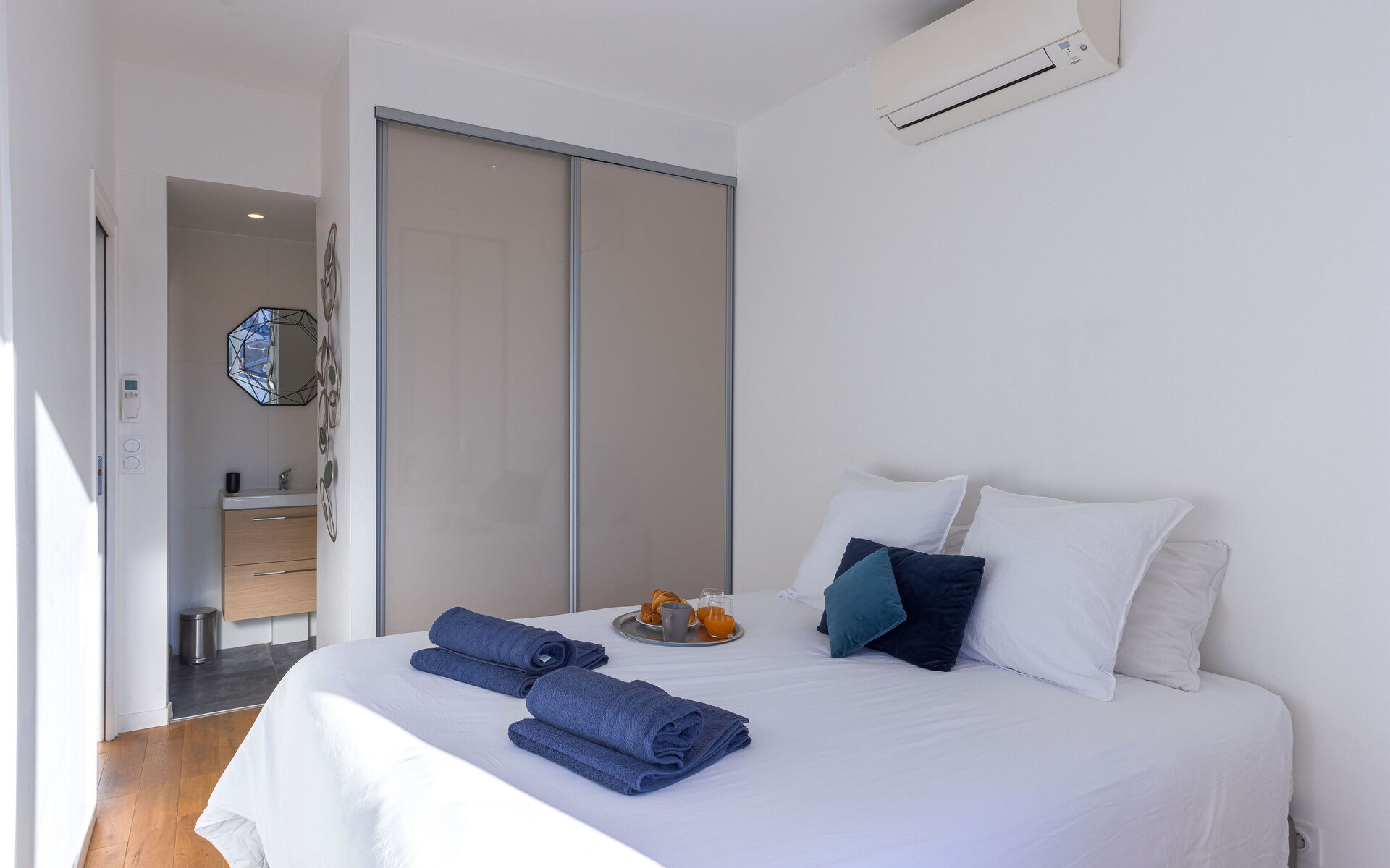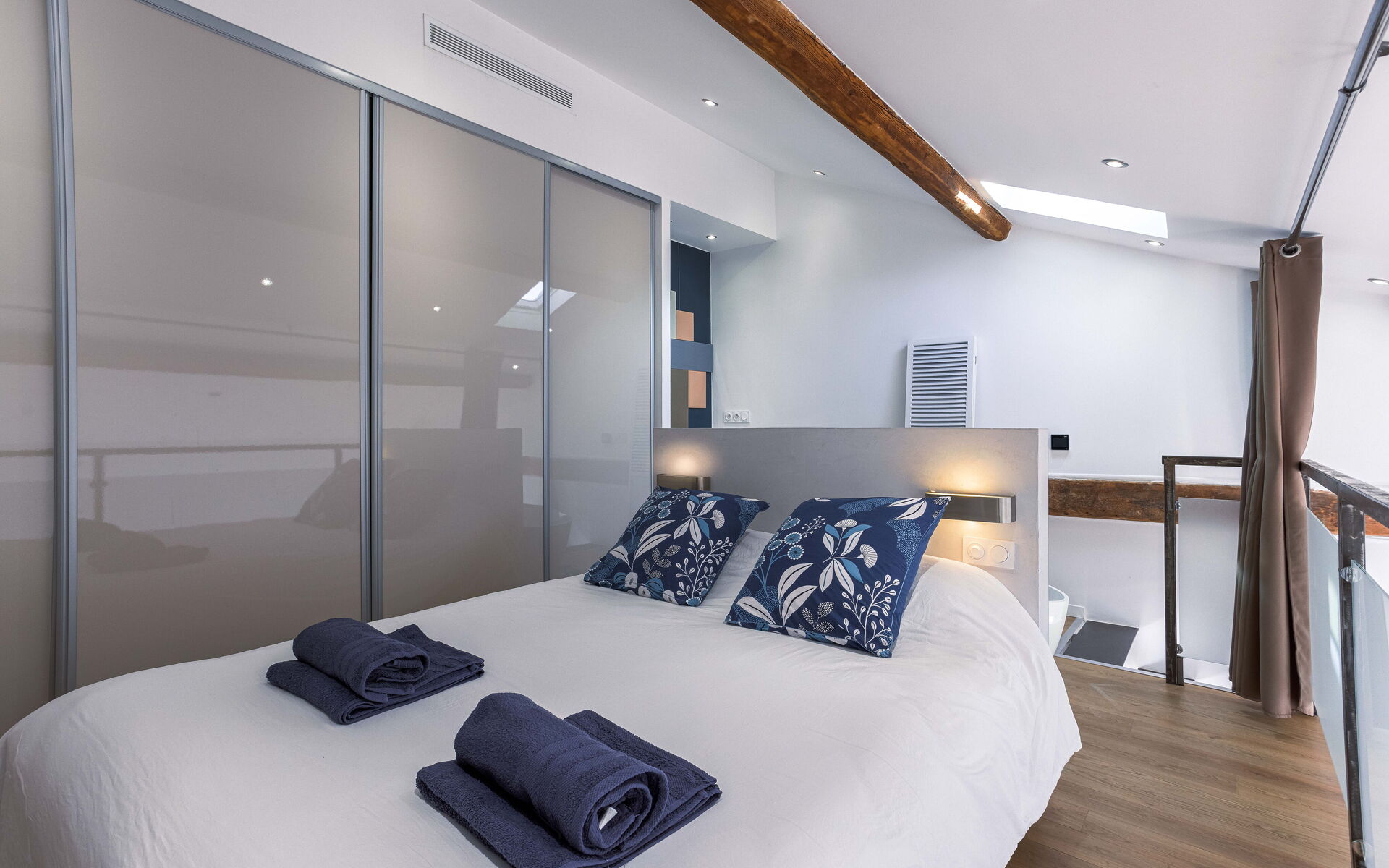 What's nearby: This stunning duplex is located in the center of beautiful Cannes. You won't need a car to visit the city, as both the train station and the bus station are close by. You'll be a quarter-mile stroll from the Palais des Festivals (the site of the Cannes Film Festival) and the port, half a mile northeast of Midi Beach, and three-quarters of a mile west of the beach, seaside promenade, and luxury boutiques of La Croisette. The neighboring Forville Market is open daily, and several excellent restaurants, including Bistrot Gourmand, are steps away.