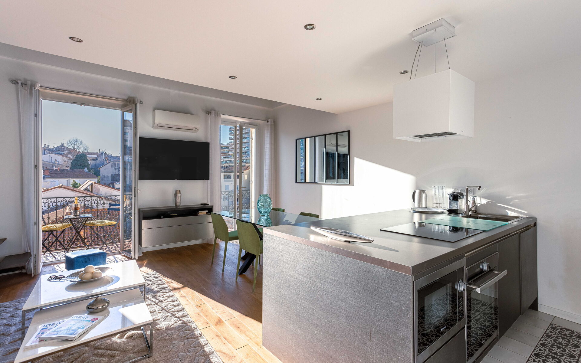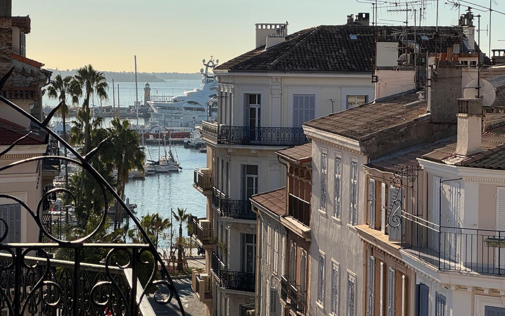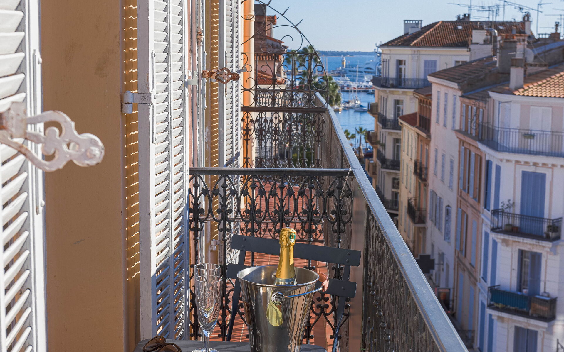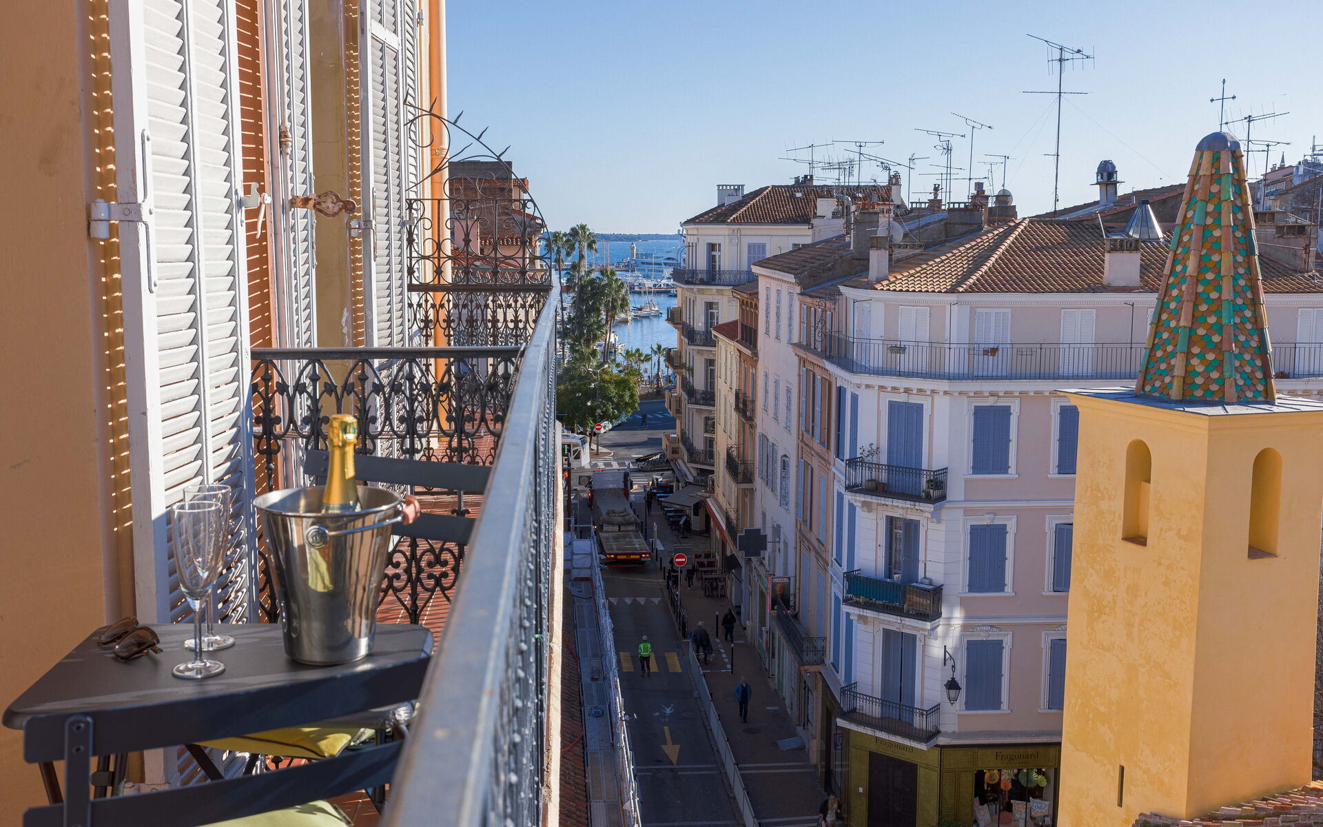 You'll be in awe of the gorgeous view from this duplex apartment in Cannes, light-filled, loft-like space with a commanding position overlooking the surrounding city. Step outside onto the balcony with your morning coffee or an evening glass of wine, come home each afternoon to such comforts as air conditioning and a washer/dryer and enjoy easy walking access to beaches, the port, and the Palais des Festivals.