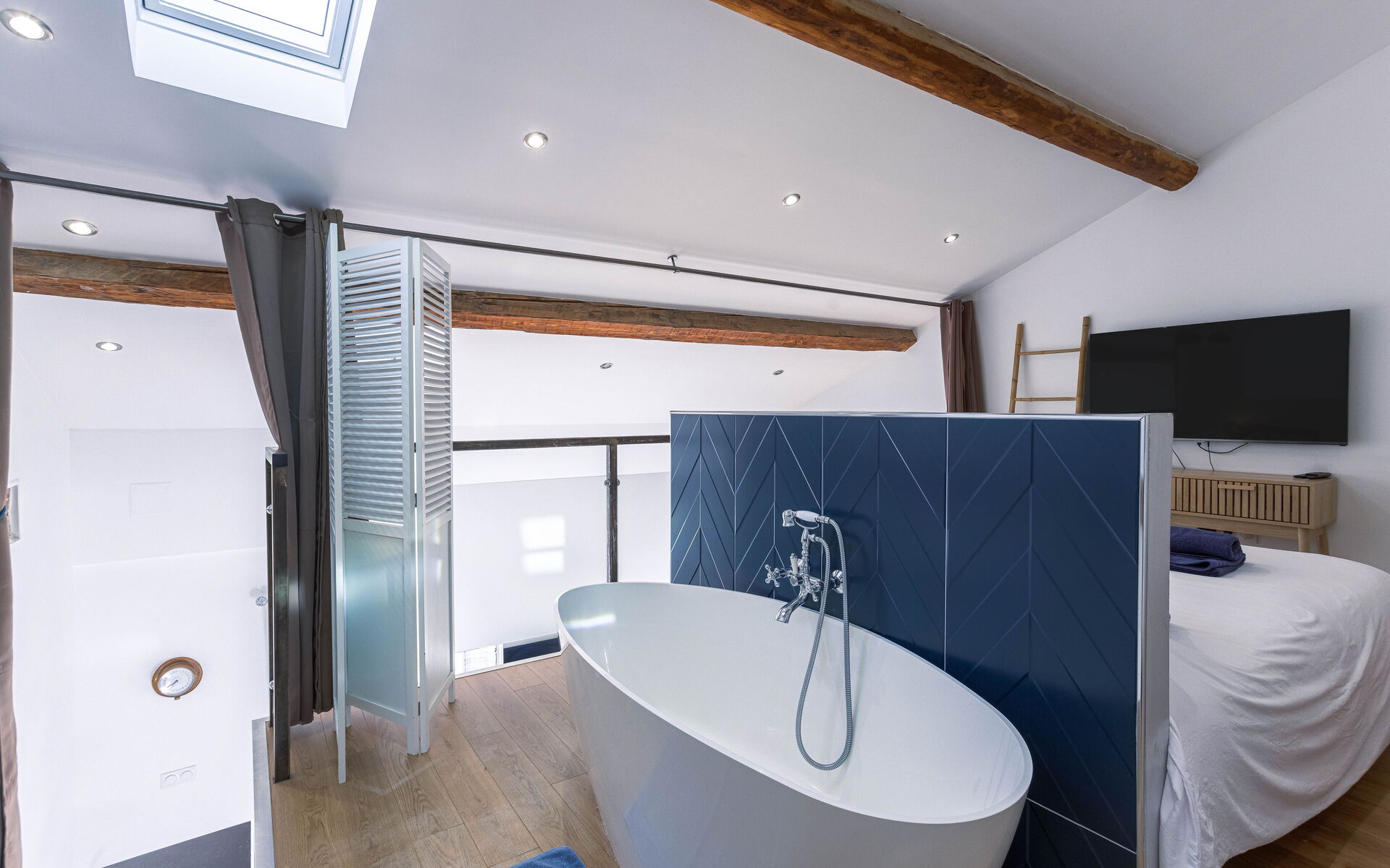 - Bedroom 2: Upstairs with Queen Size Bed (160x200) and large bathtube