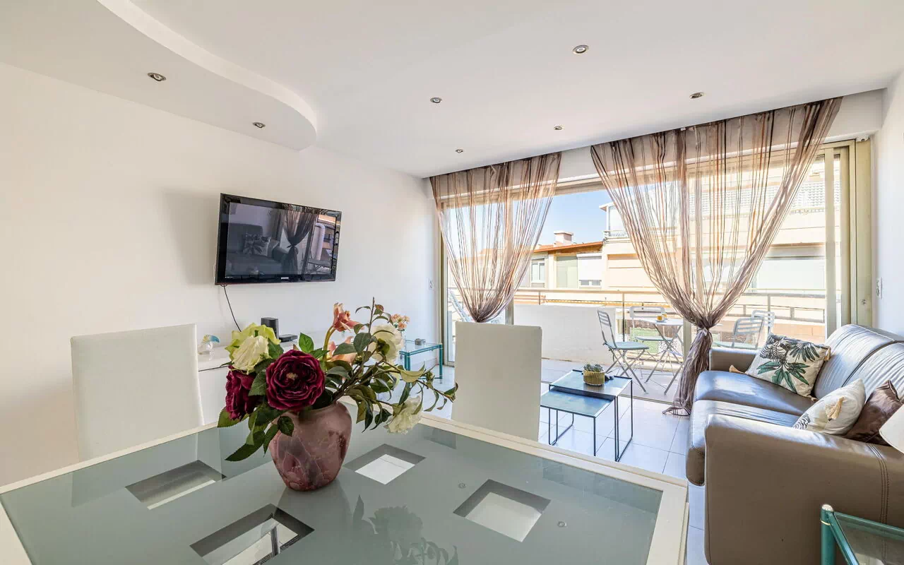 This stylish 1 bedroom apartment with air conditioning is located rue Latour Maubourg, 50 m away from the famous Martinez Hotel, a prime location in the very heart of Cannes.