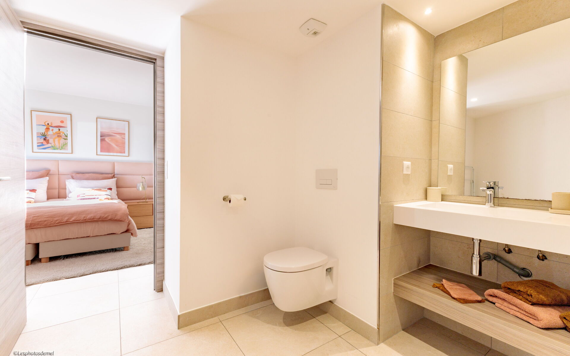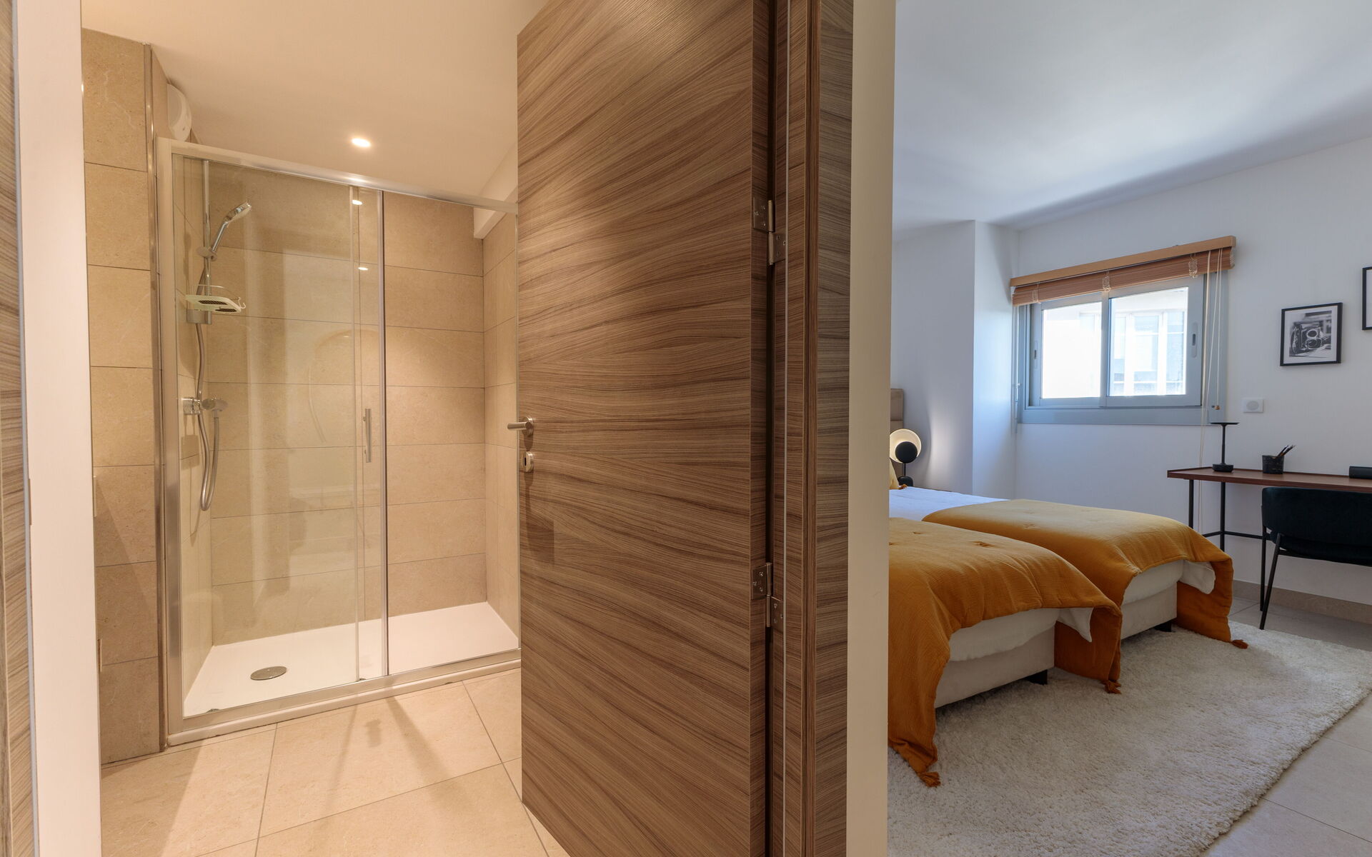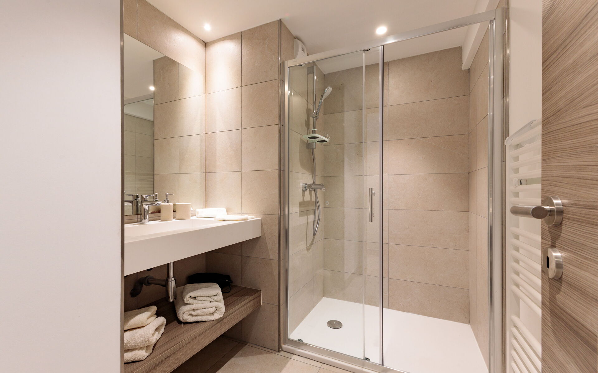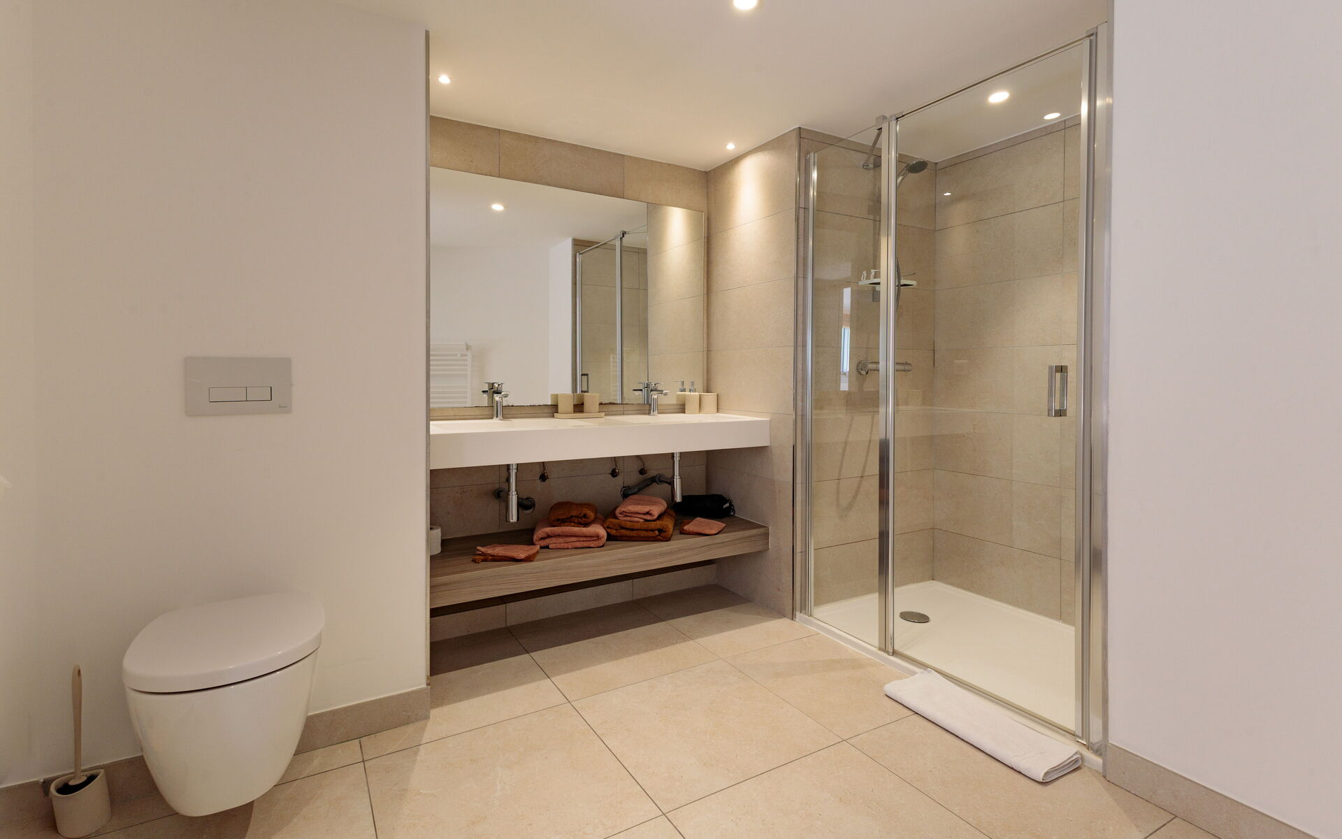 - Bedroom 2: 2 single beds (90x200) - can be joined - with private bathroom (shower)