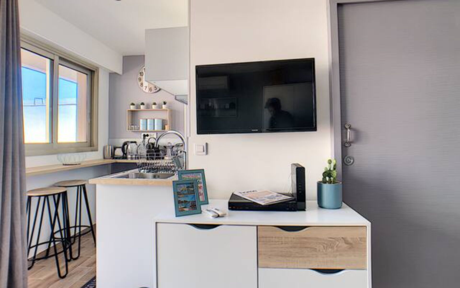 The appartement was nice, ideally located close to the beach, just minutes walking and close to restaurants. A nice parc with playing ground was also on its vicinity. The appartement was equipped with all necessary tools. The only drawback is that it does not have any view.