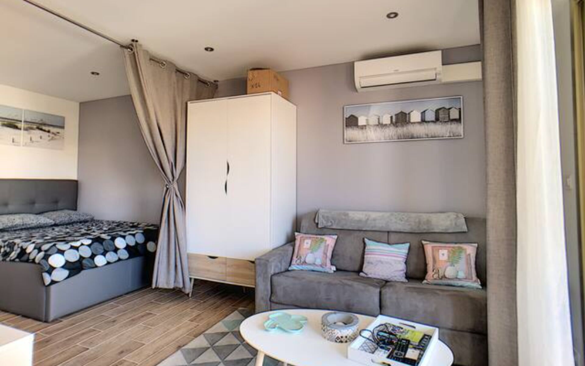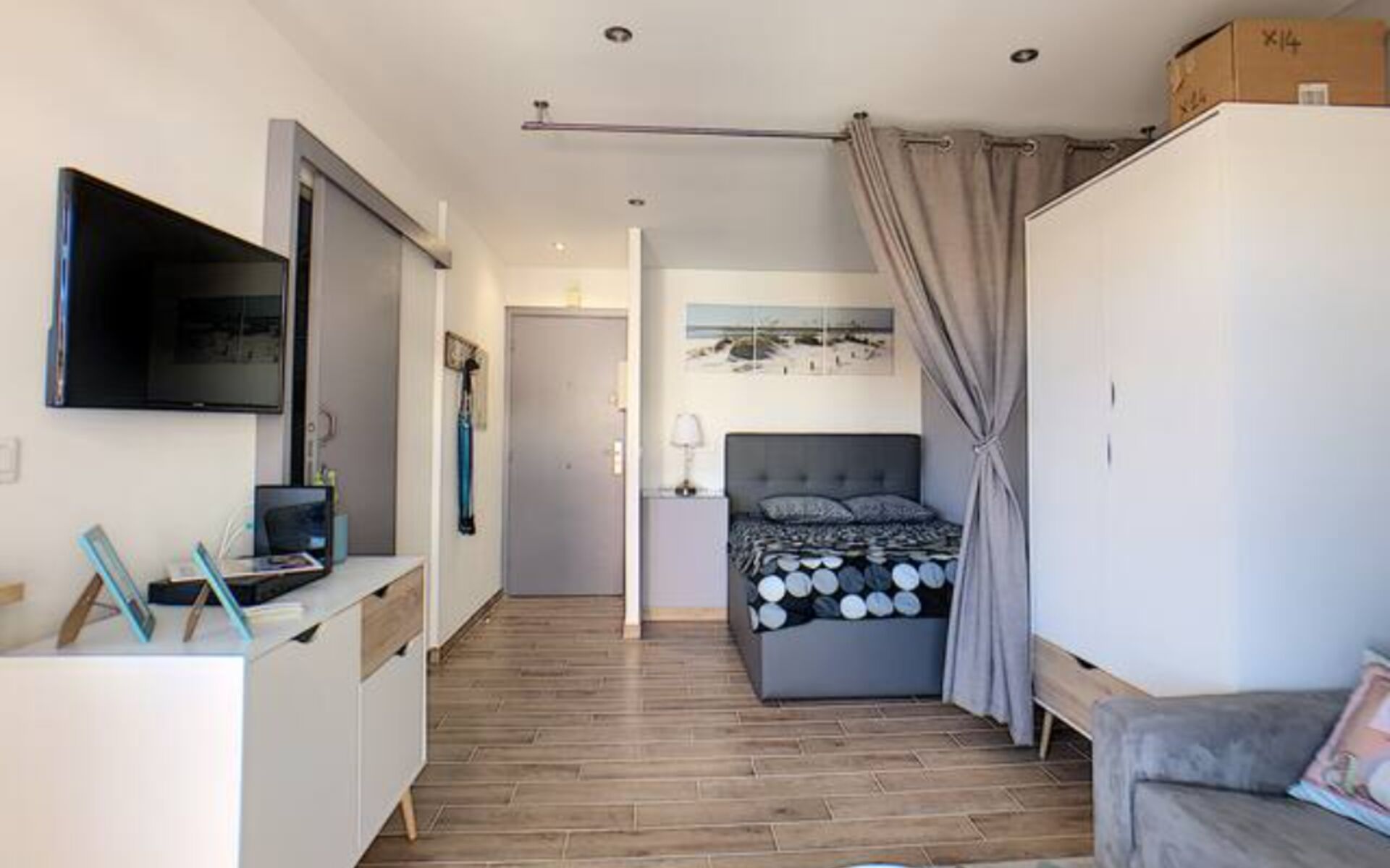 - Bedroom area separated by a curtain and bed 140*200