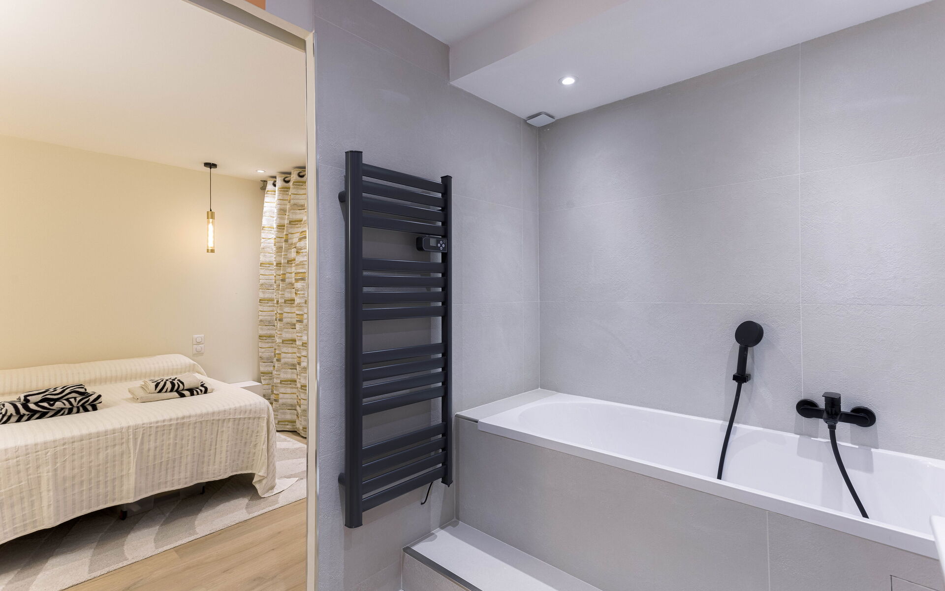 - Bedroom 1 with adjoining bathroom with bathtub