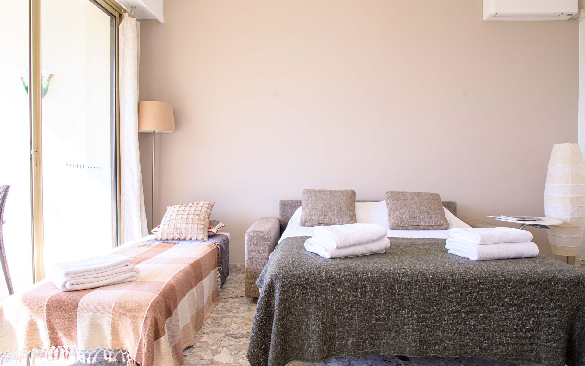 Living room : TV + double sofa bed (140x190) + single bed - direct access to terrace