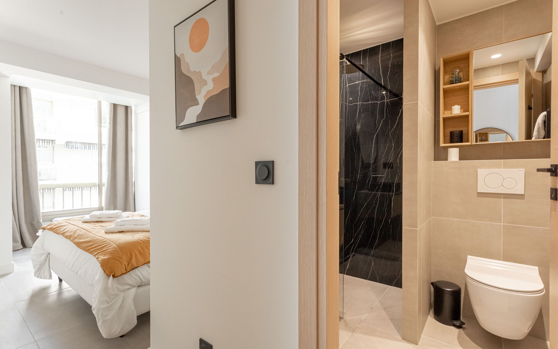 This stylish 2 bedrooms apartment with air conditioning is located rue du Général Férrié, a prime location in the very heart of Cannes.
