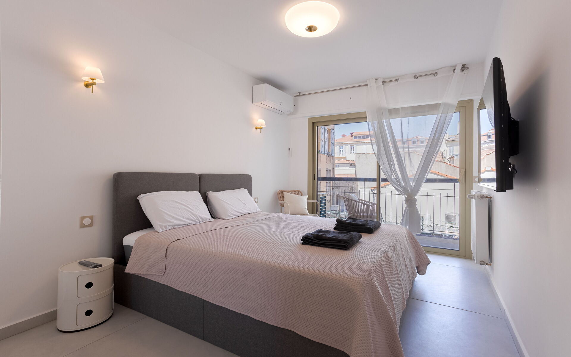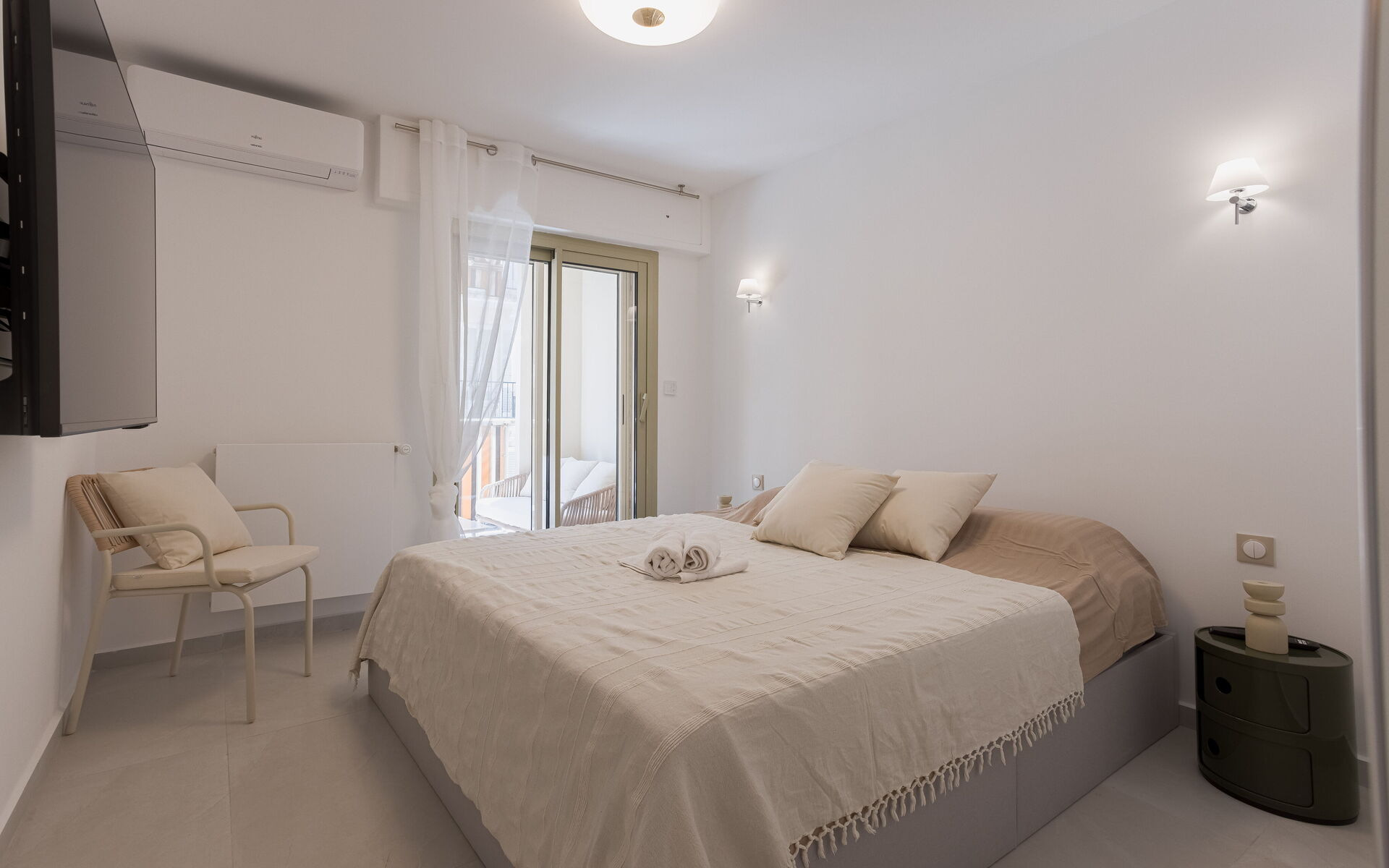 - Bedroom : King Size bed (180 x 200) + TV + balcony