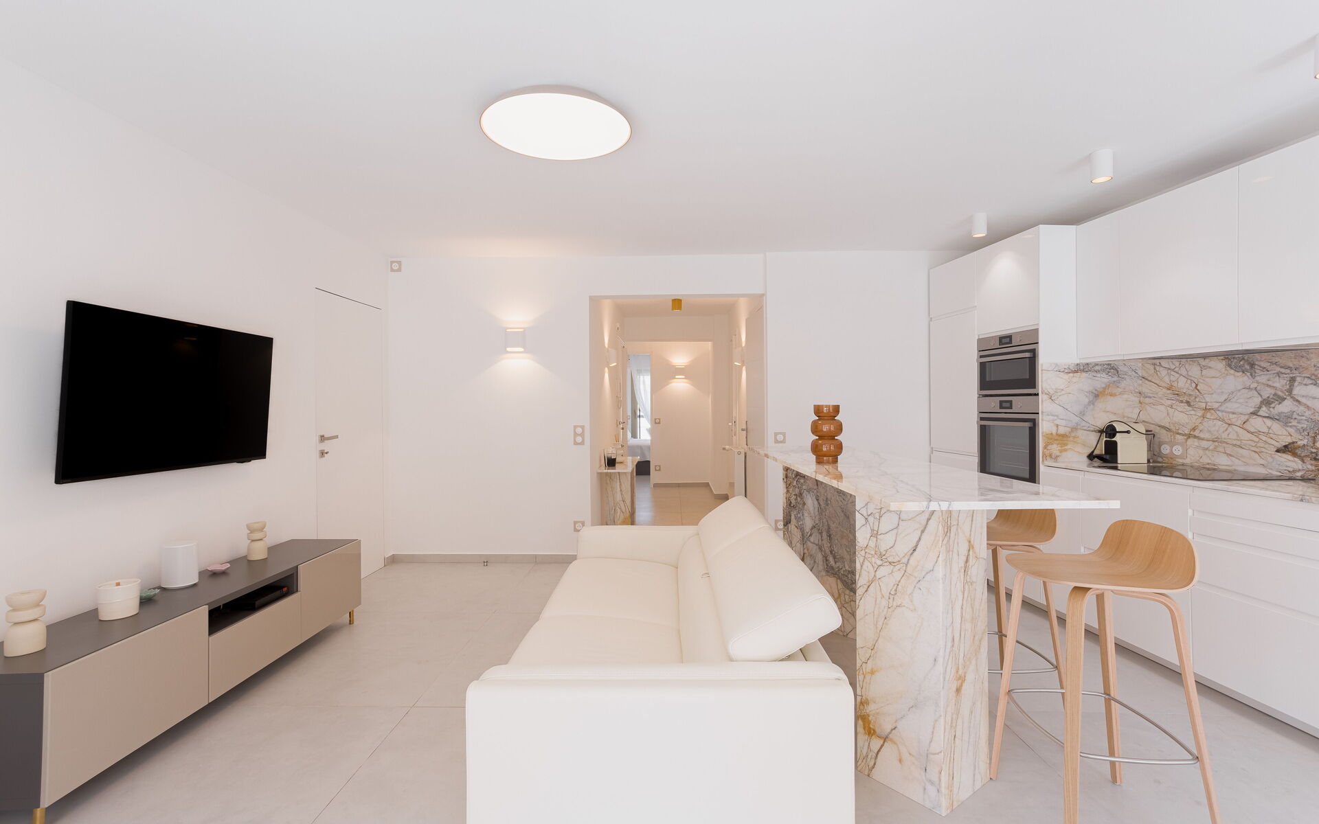 - Separate fully eqipped kitchen: fridge + freezer+ dishwasher + kettle + toaster + oven + microwave + Nespresso machine